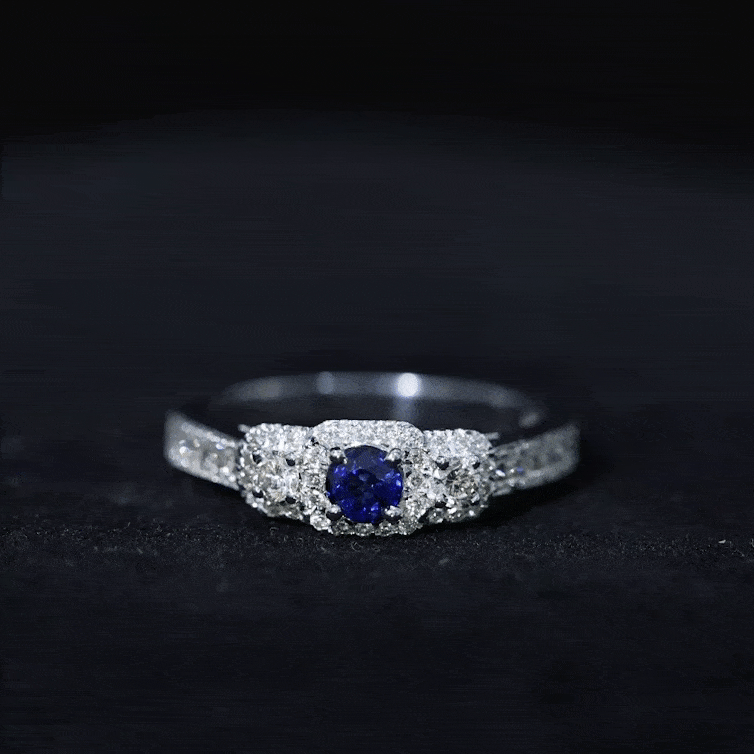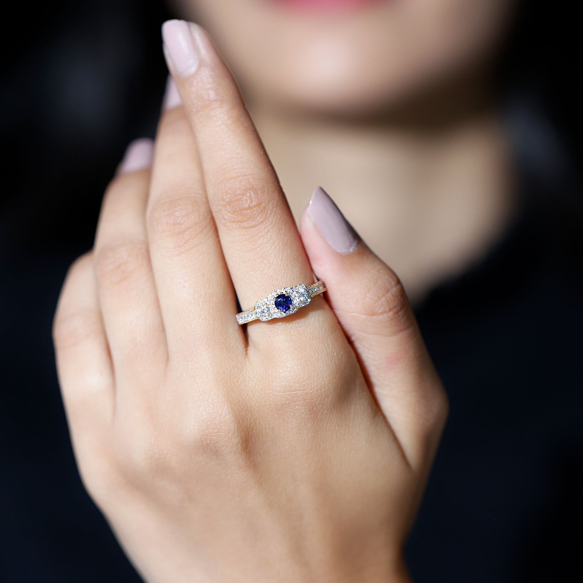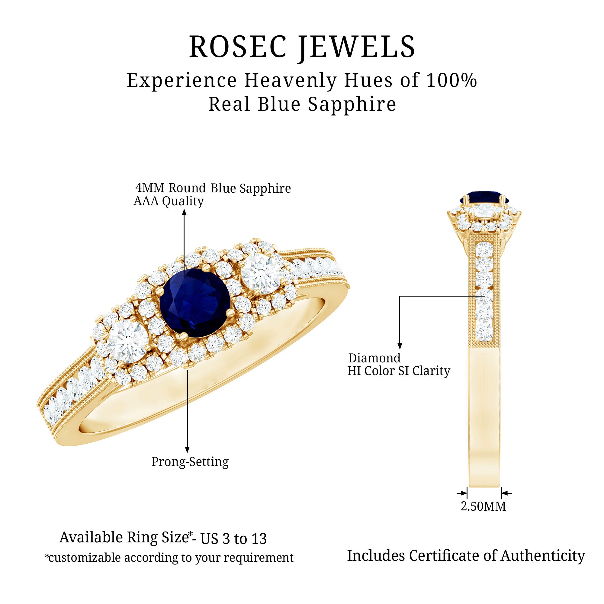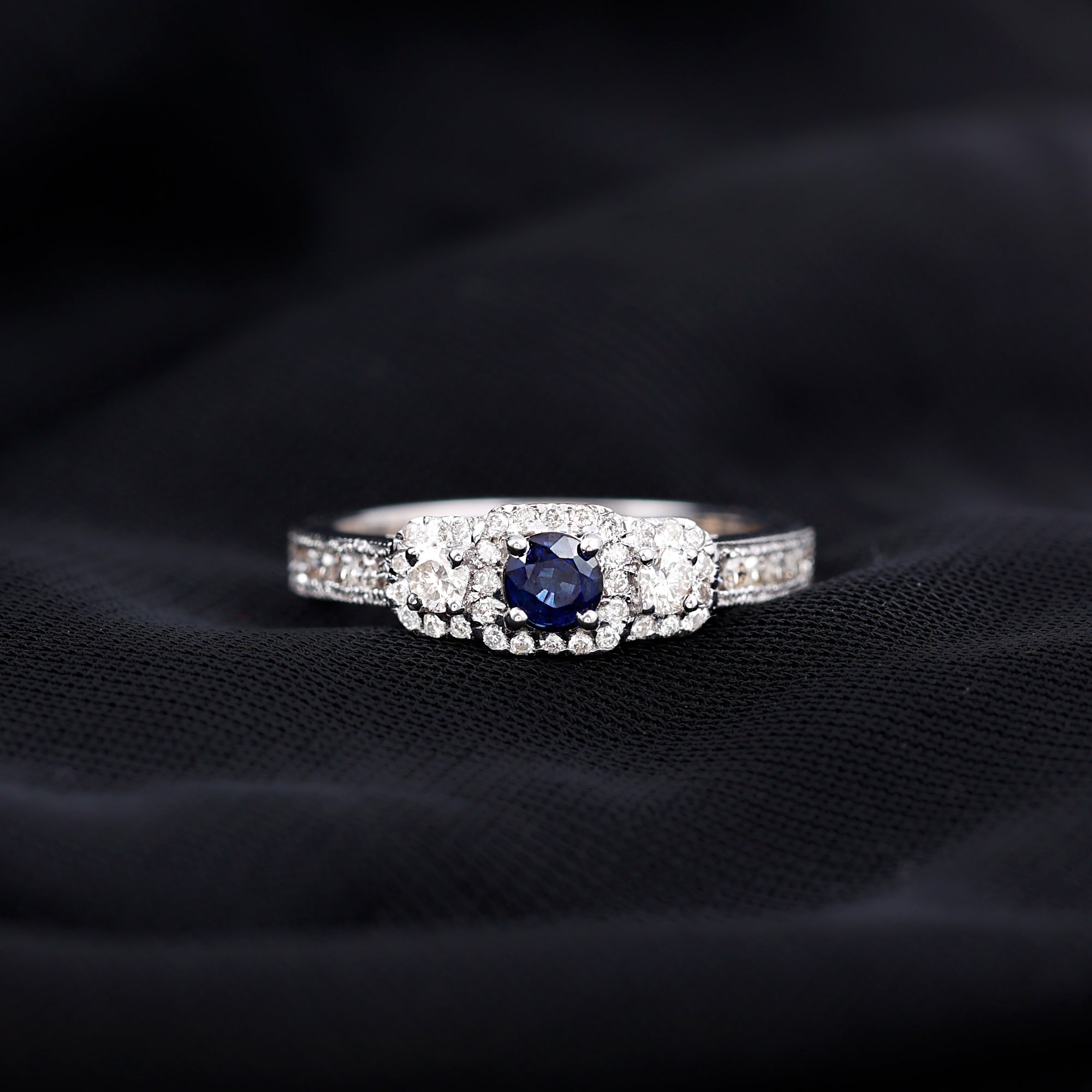 1 CT Vintage Inspired Blue Sapphire Engagement Ring with Diamond
