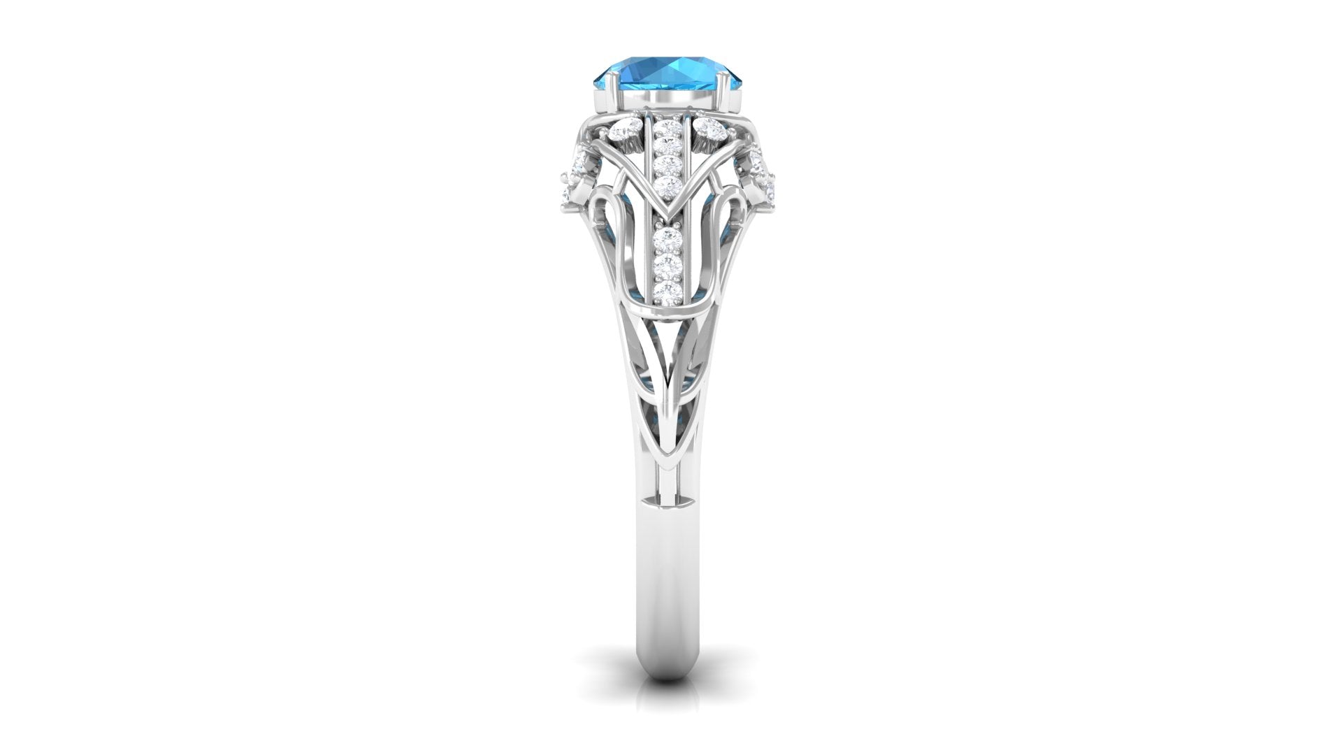 1 CT Vintage Inspired Swiss Blue Topaz Engagement Ring with Diamond