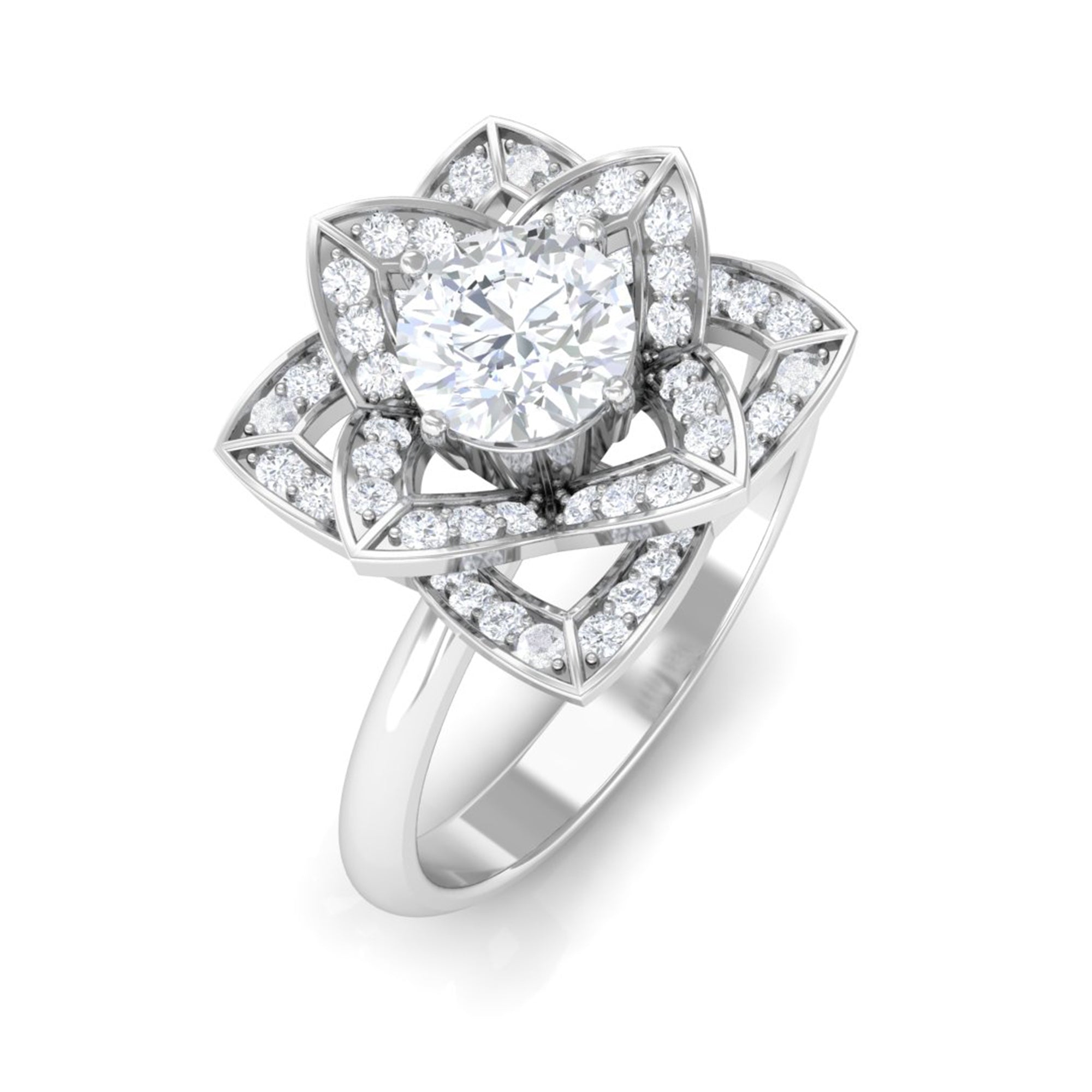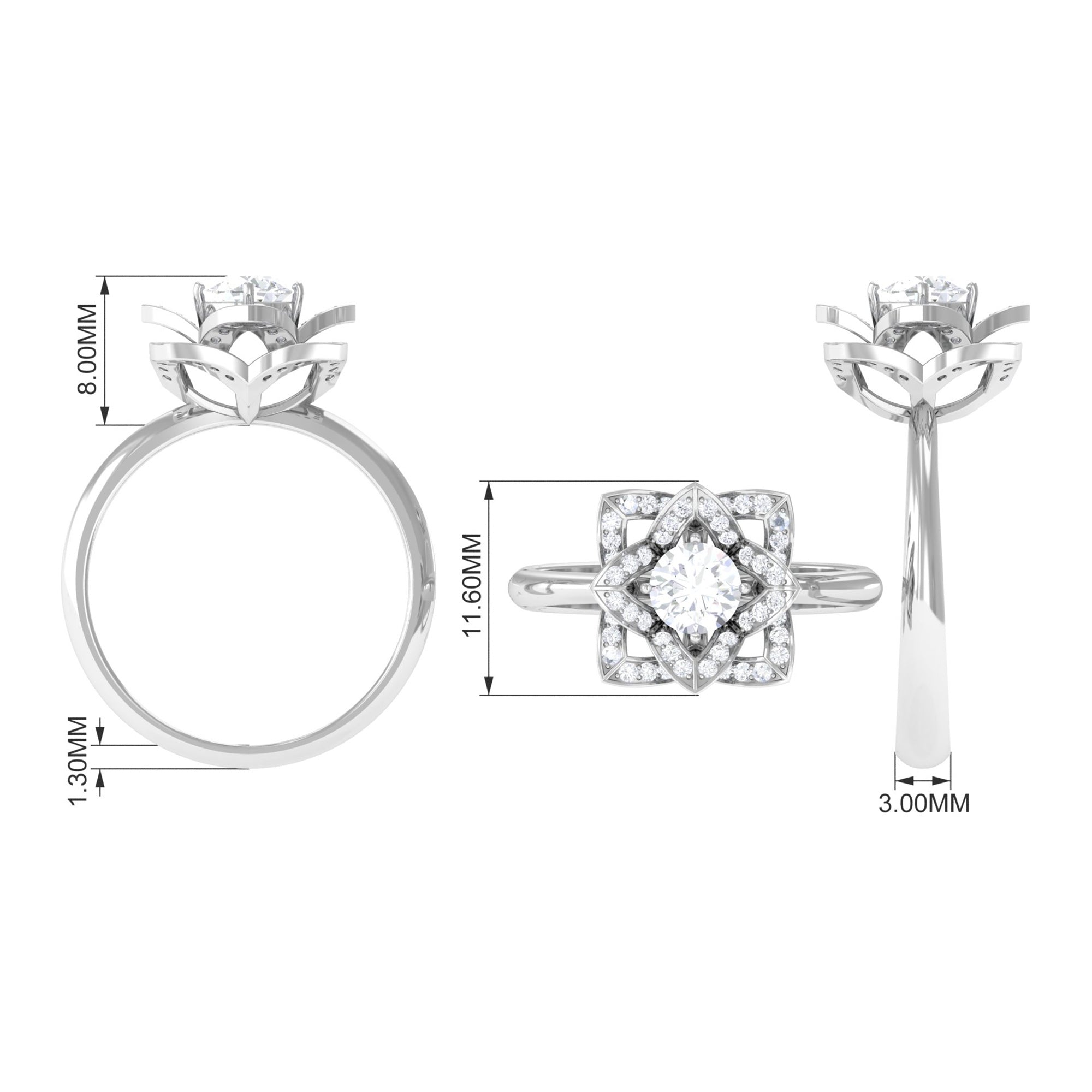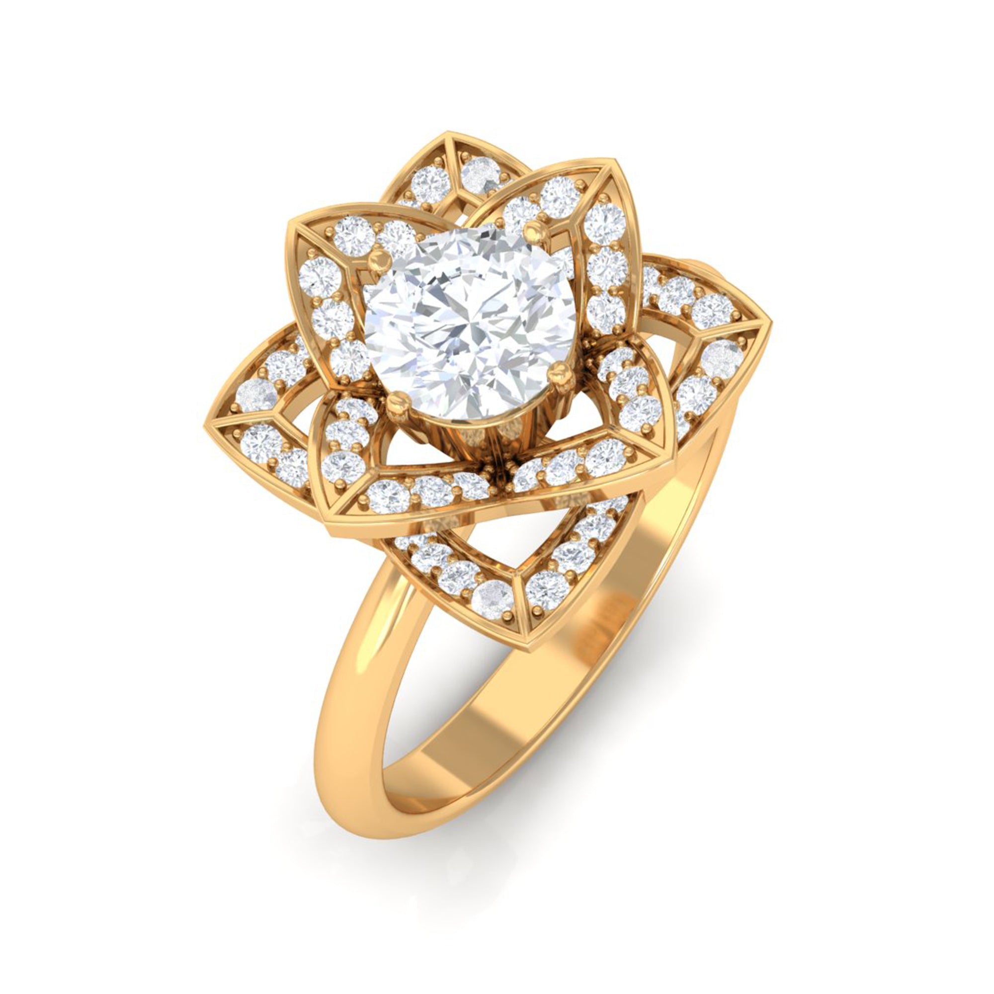 She will be grateful to see your love for her when you surprise her with this alluring Vintage Floral Engagement Ring on the big day. Features Round Cut Zircon in the center in Prong Setting along with Zircon Side Stones. Crafted with Solid Gold, this Zircon Vintage Engagement Ring will make her stunned.