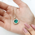 10 MM Classic Solitaire Created Emerald and Moissanite Halo Pendant Necklace