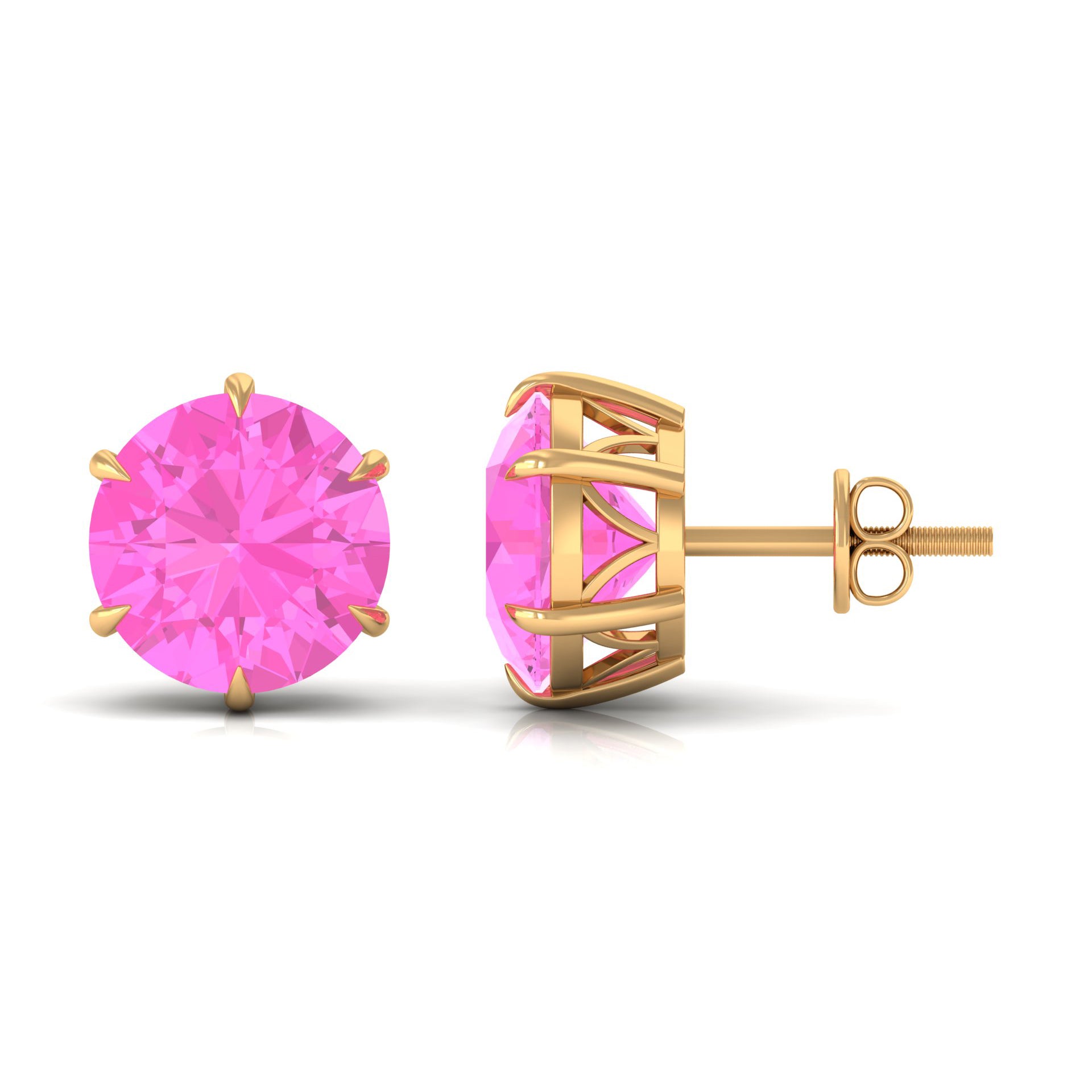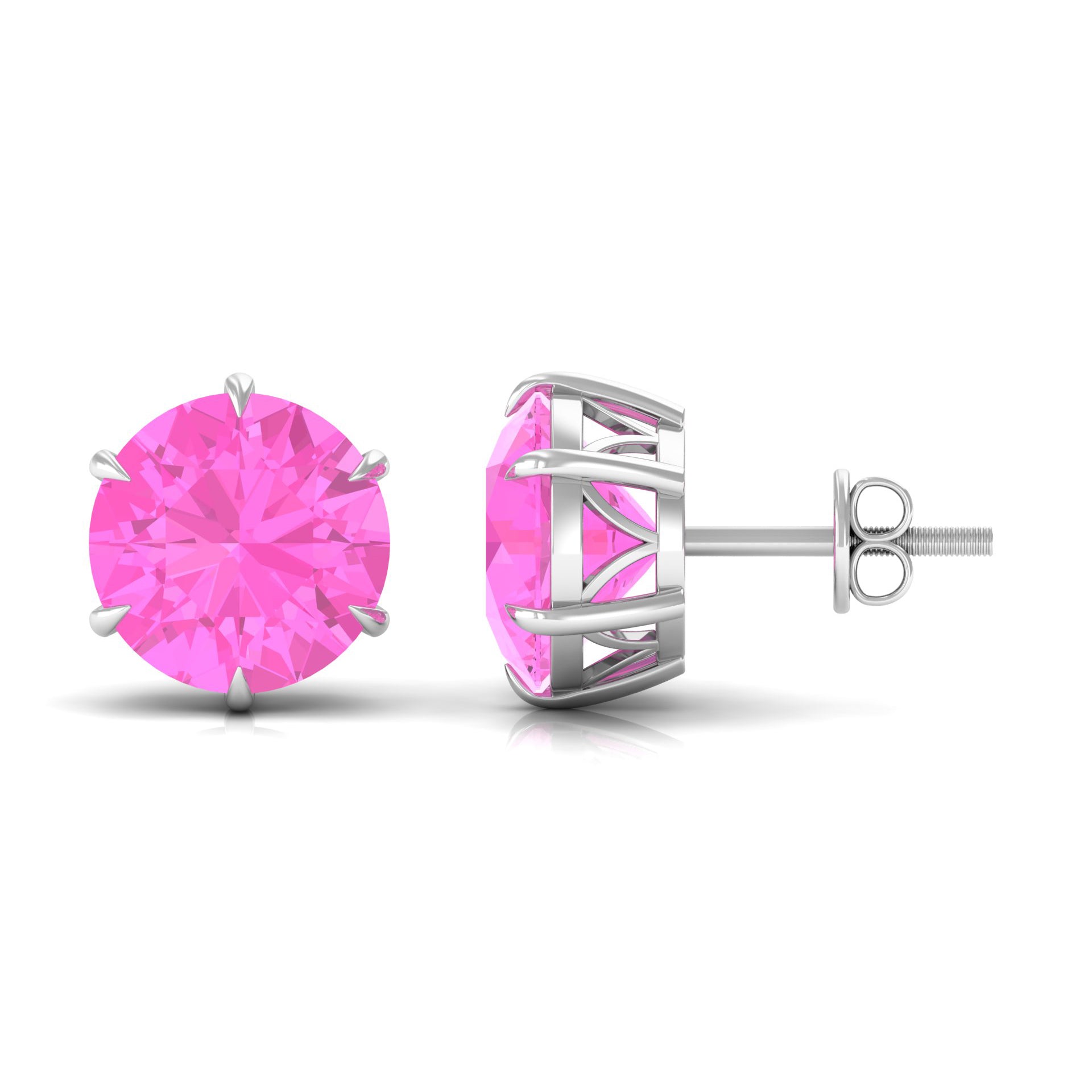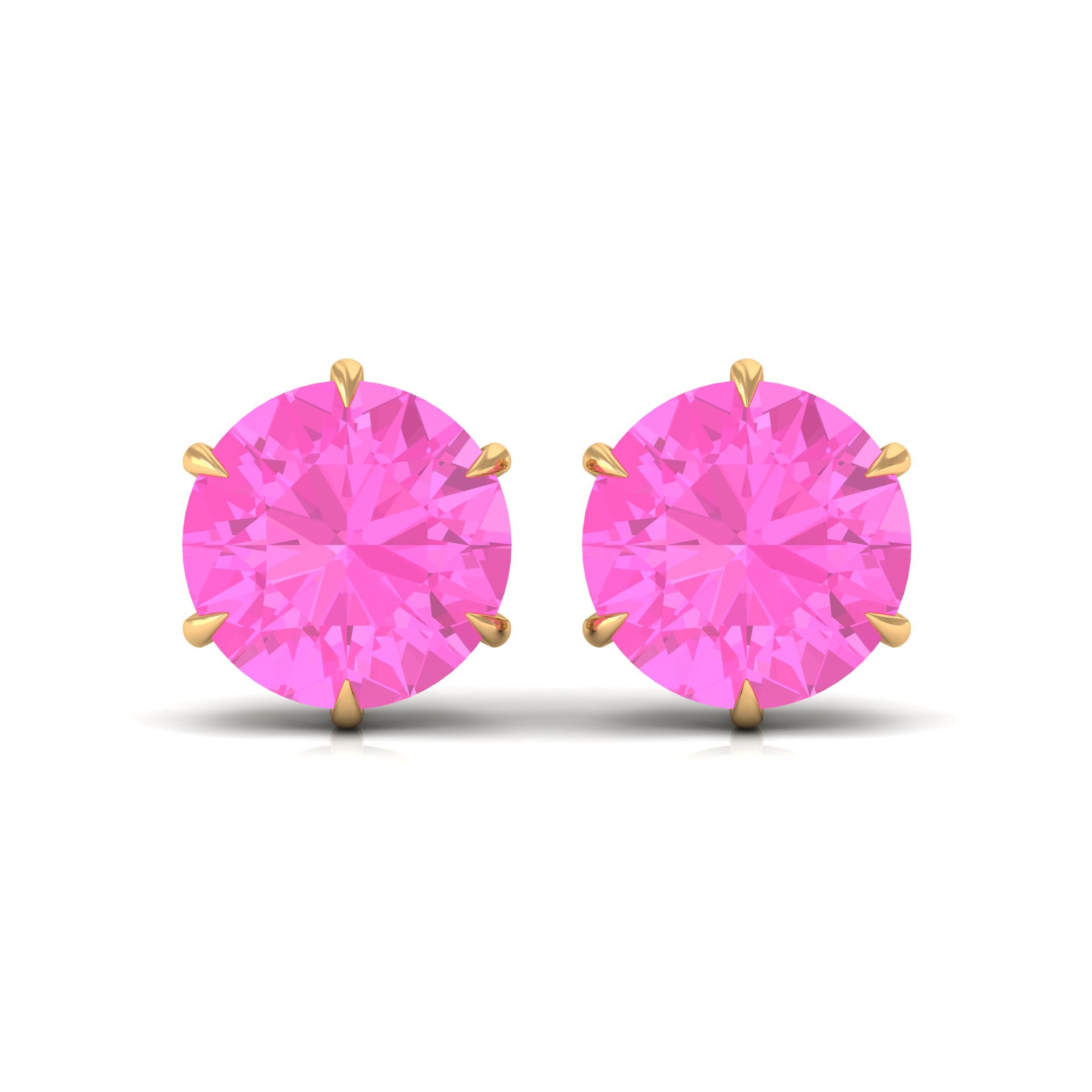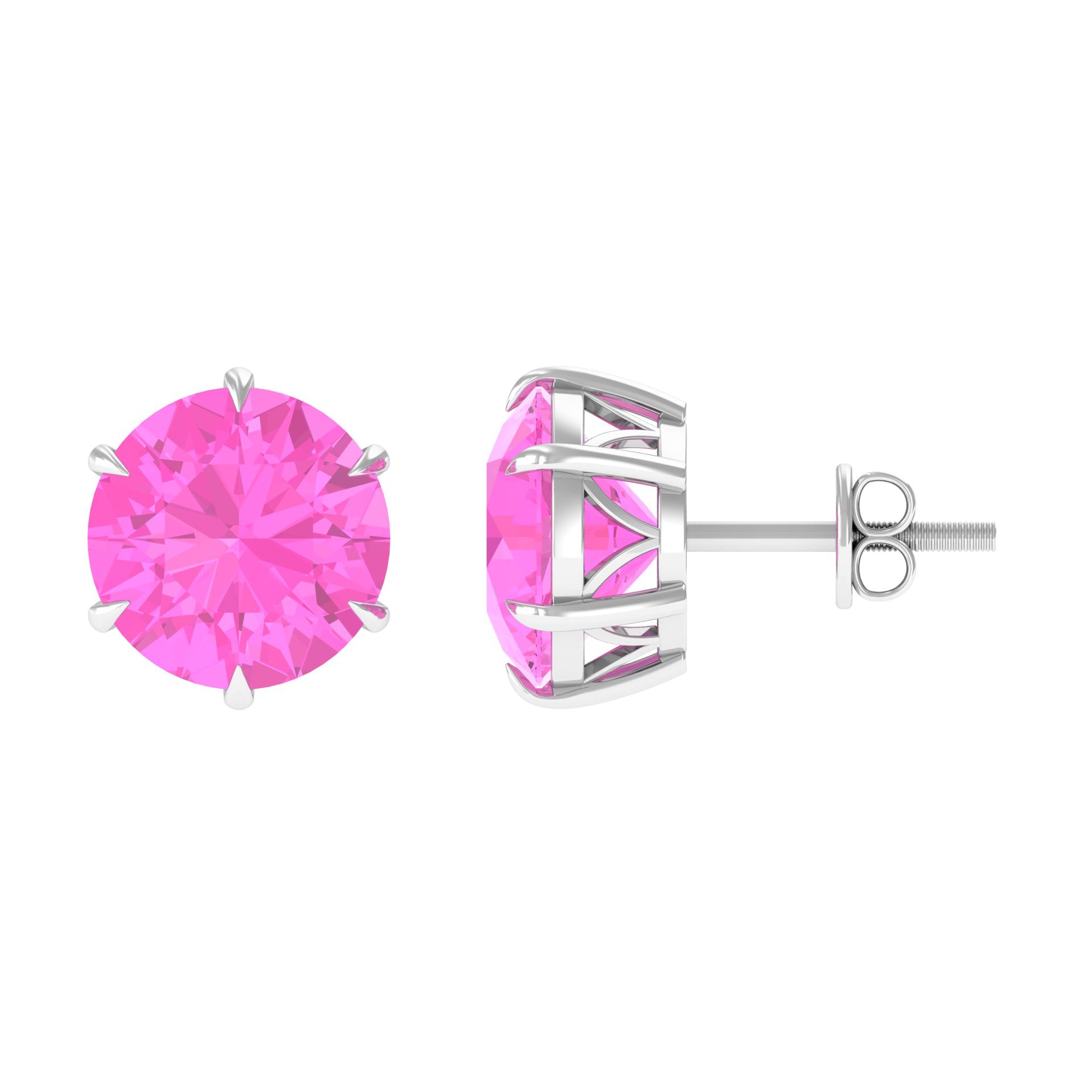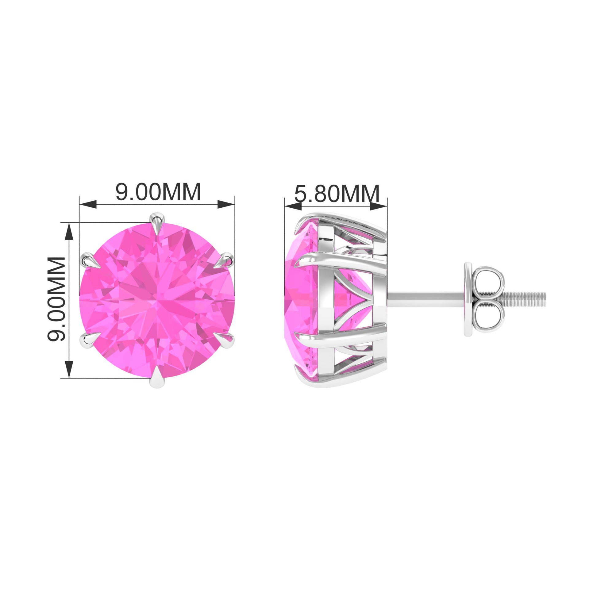 Indulge in the refined beauty of these Lab Grown Pink Sapphire Stud Earrings. They feature dazzling 8 MM Round Cut Lab Grown Pink Sapphire delicately nestled in a captivating Claw Setting. The vibrant pink hue of the AAAA Quality Lab created sapphire gemstones adds a touch of allure and timelessness to any ensemble. These Solitaire Stud Earrings have a timeless design that glams up every outfit. Whether its a formal event or a casual outing, these exquisite Pink Sapphire Solitaire earrings are sure to elevate your style and make a lasting impression with their exquisite design and impeccable craftsmanship.