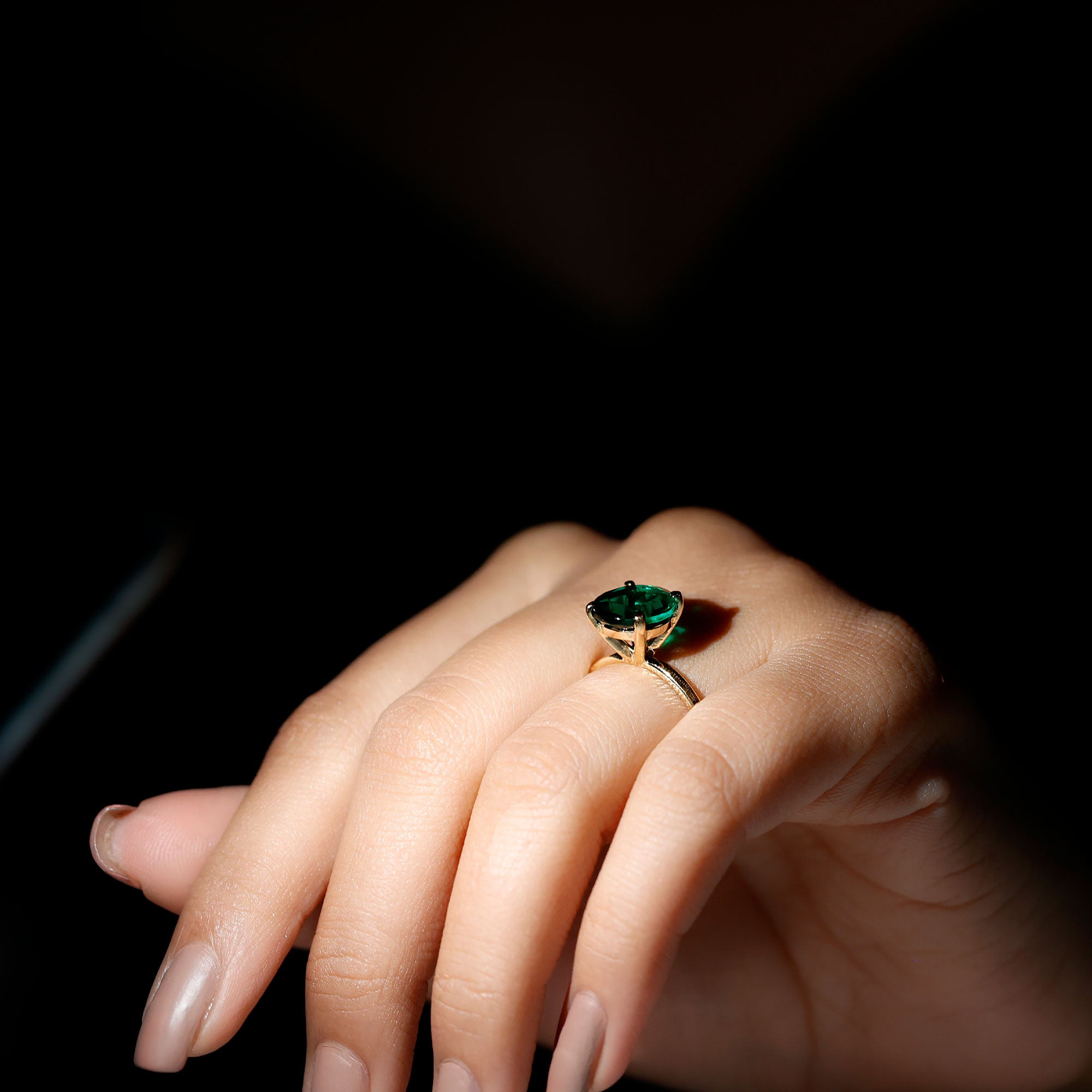 Effortlessly elegant and timelessly refined, this Solitaire Engagement Ring proves that true beauty lies in simplicity. At its center, an 10 MM round cut lab created emerald shines with breathtaking brilliance, securely held in a peg head setting. Subtle surprise stones tucked beneath the center gem add an unexpected touch of sparkle, making this Round Engagement Ring feel even more special and unique. Designed with a smooth, simple band, this Engagement Ring captures a delicate balance between modern sophistication and timeless charm. Crafted with care, this piece is perfect for anyone who values both beauty and meaning. This 3 Carat Emerald Ring arrives in a thoughtfully crafted jewelry box, ready to gift or keep safe as a treasured keepsake. Available in multiple sizes to ensure a flawless fit, this Round Emerald Ring is a bold yet understated symbol of love, never too flashy, never too simple, but just right. Let it be the piece that captures your forever with grace, brilliance, and meaningful elegance.