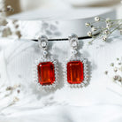 10X14 mm Lab Grown Orange Sapphire Statement Earrings in Silver