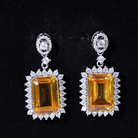 10X14 MM Lab Grown Yellow Sapphire Emerald Cut Earrings in Silver