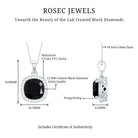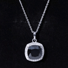12 MM Cushion Cut Lab Grown Black Diamond Halo Necklace With Silver Chain
