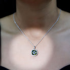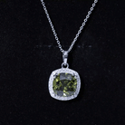 12MM Cushion Cut Lab Grown Green Sapphire Moissanite Halo Pendant Necklace