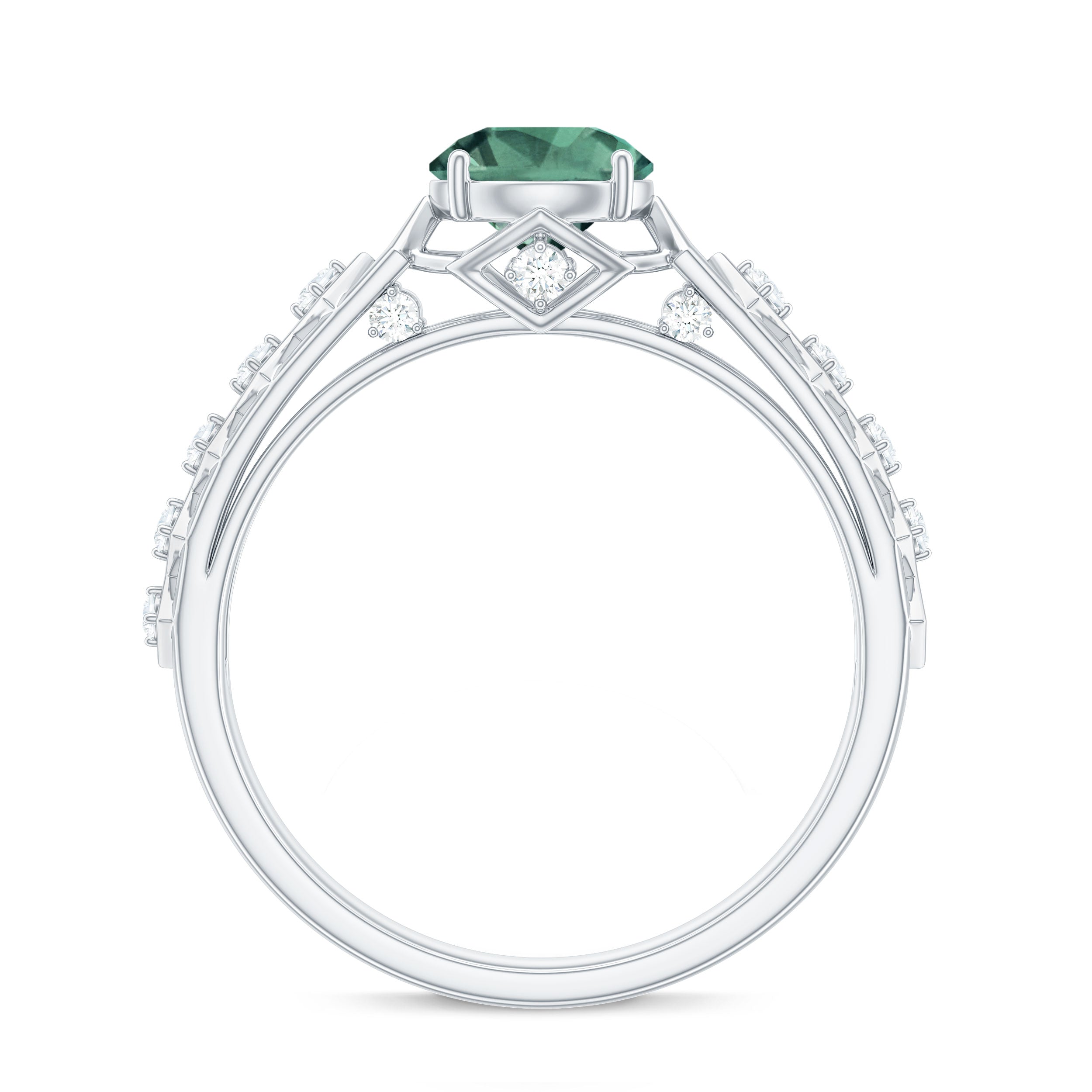 2.25 Carat Lab Created Green Sapphire Art Deco Engagement Ring with Diamond