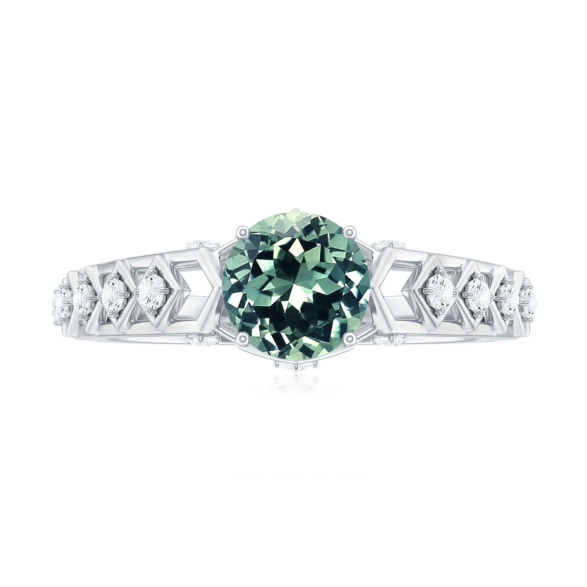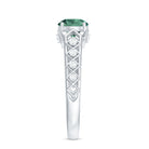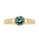 Geometric patterns and vintage charm come together beautifully in this Art Deco Inspired Solitaire Engagement Ring, creating a design that feels both unique and timeless. The detailed band and carefully placed stones give the piece a character, making it a meaningful choice for marking a special moment in life. Embellished with an 8 MM round shape lab created green sapphire, securely held in prong setting. Along the band, intricate geometric details inspired by the Art Deco era add visual interest. Small diamonds are carefully set within these patterns, offering subtle brilliance that complements the center stone. Crafted with hallmarked metal, the Lab Grown Green Sapphire Engagement Ring reflects quality workmanship and durability. The combination of the AAAA quality lab grown green sapphire and HI-SI quality diamonds creates a design that feels truly special. Every element in this Sapphire Art Deco Ring works together to form a graceful and memorable piece that can symbolize love, commitment, and meaningful celebrations for years to come.