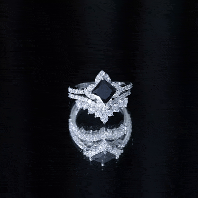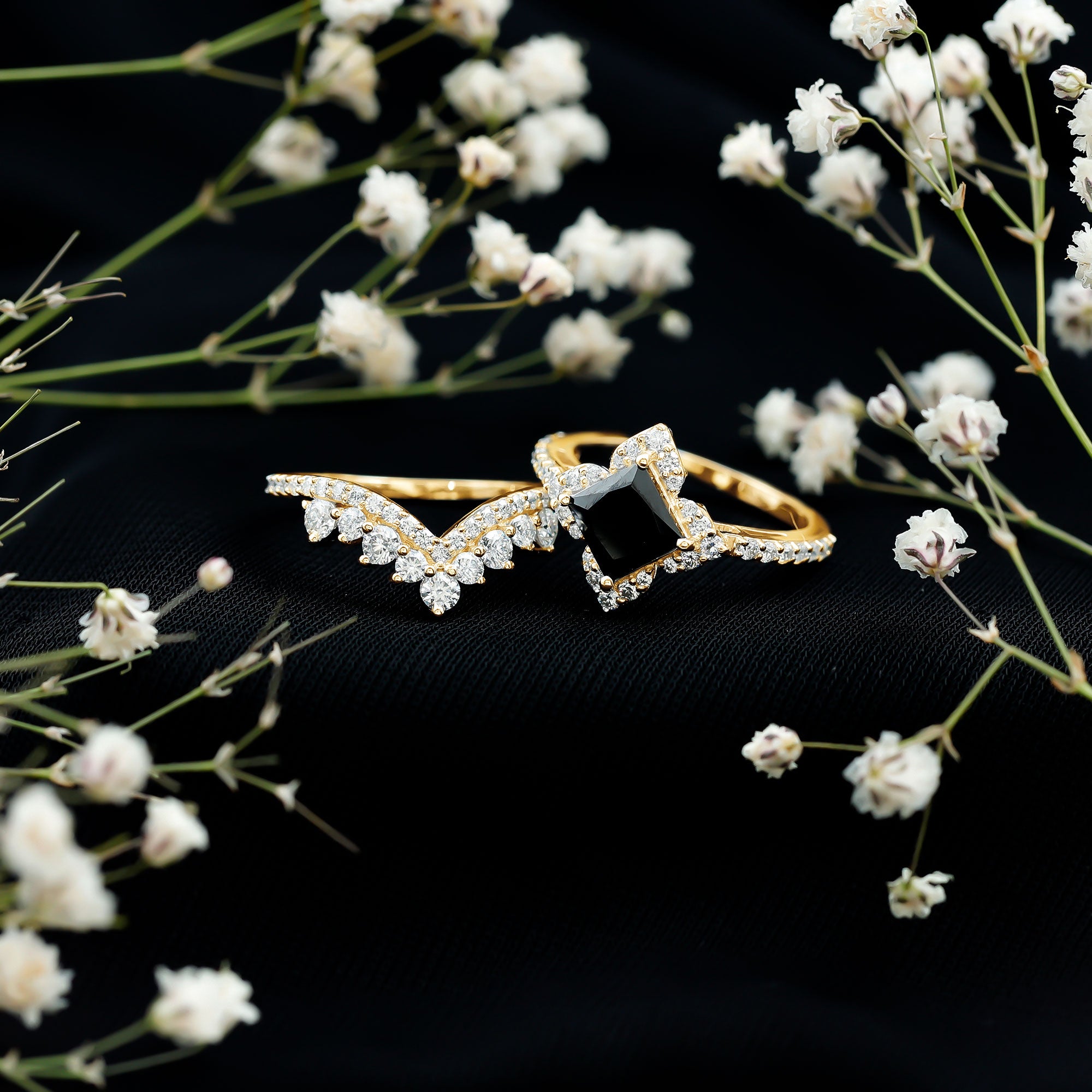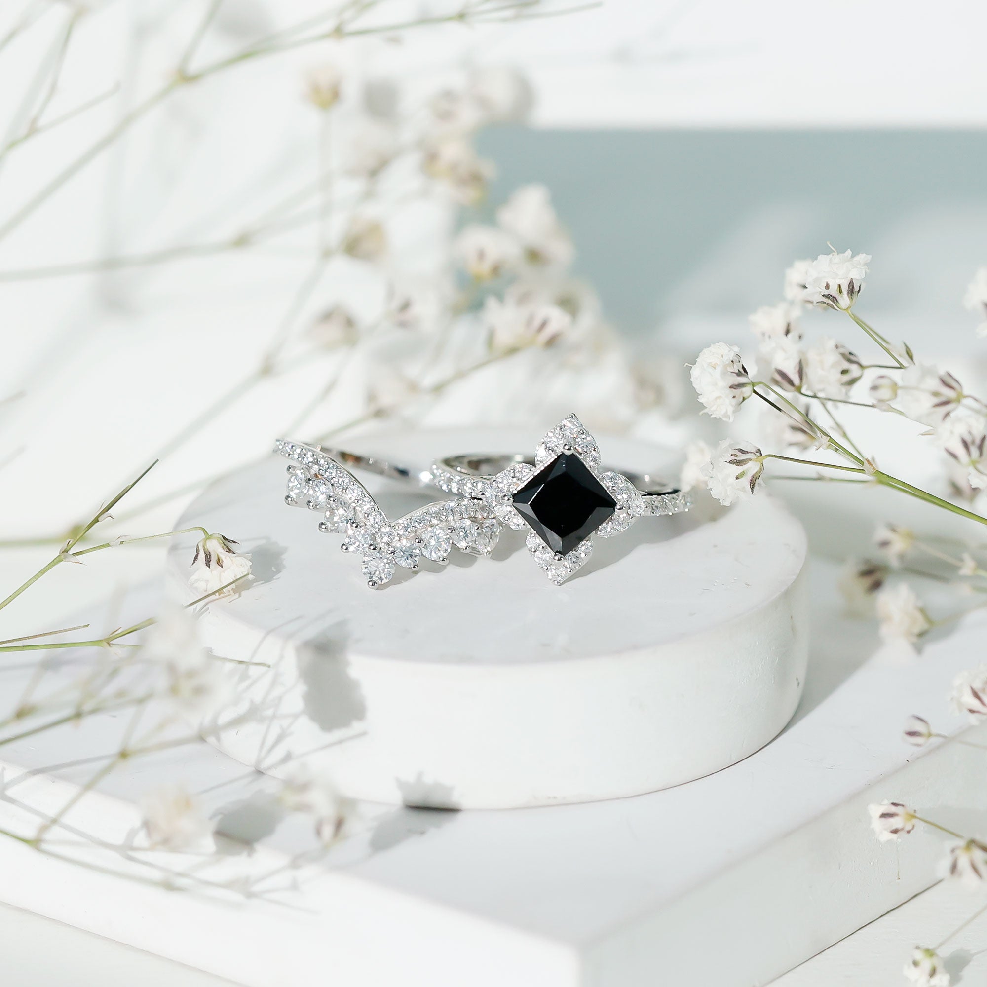 2.25 CT Black Onyx and Moissanite Statement Wedding Ring Set