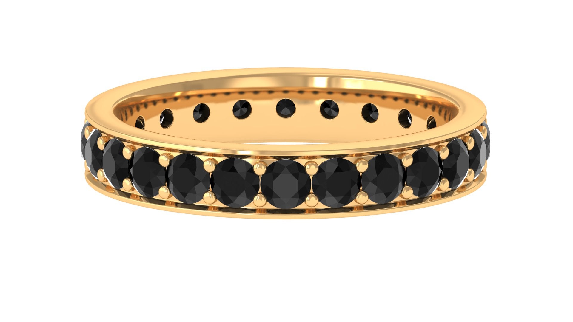 Woman who want something unique this enchanting Black Spinel Eternity Ring is the superb pick. Stunning Round Black Spinel are engraved amazingly in the pave setting looks gorgeous in Gold. Stackable Wedding Ring can be worn with other rings and can style your daily look gracefully.