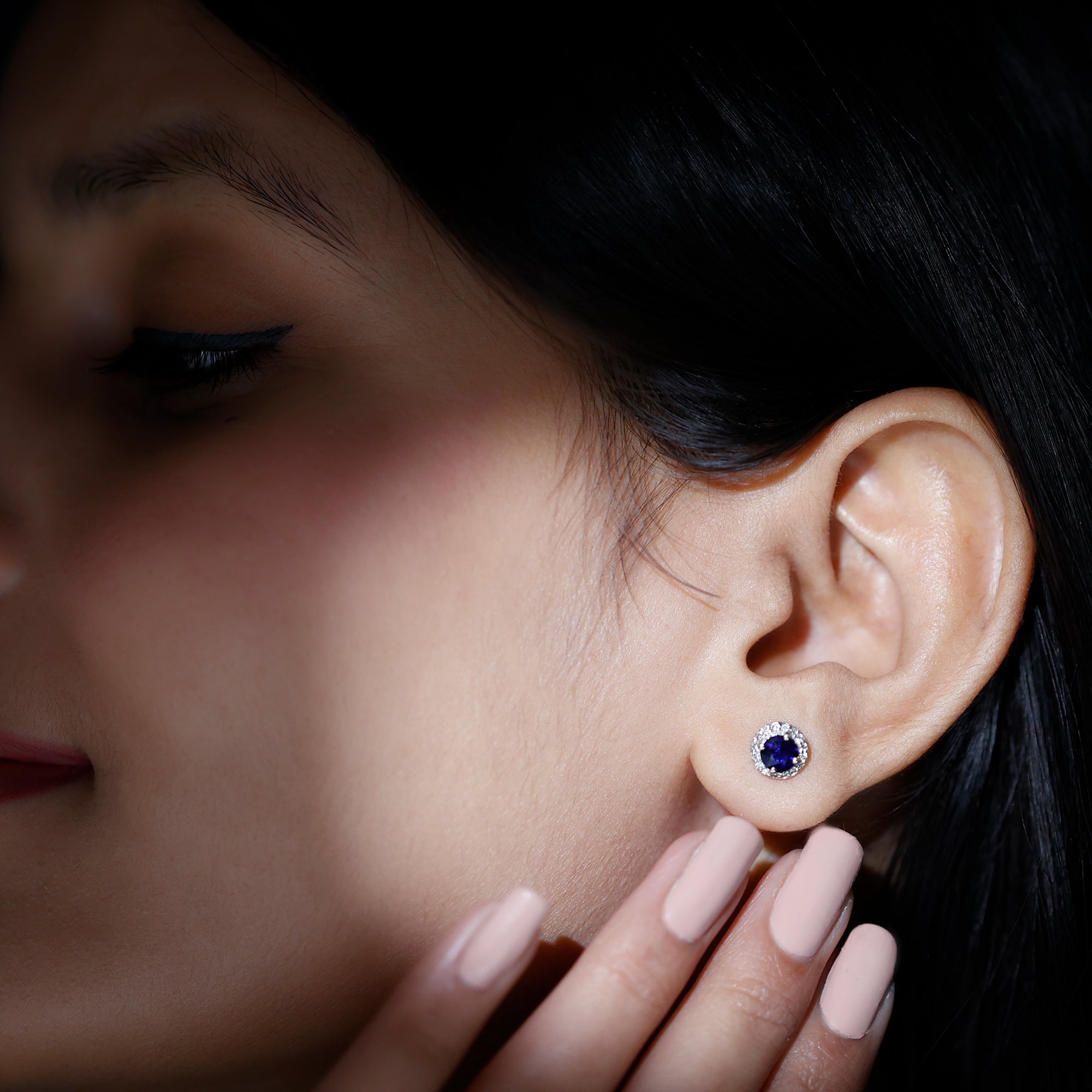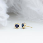 2.25 CT Blue Sapphire and Diamond Halo Stud Earrings