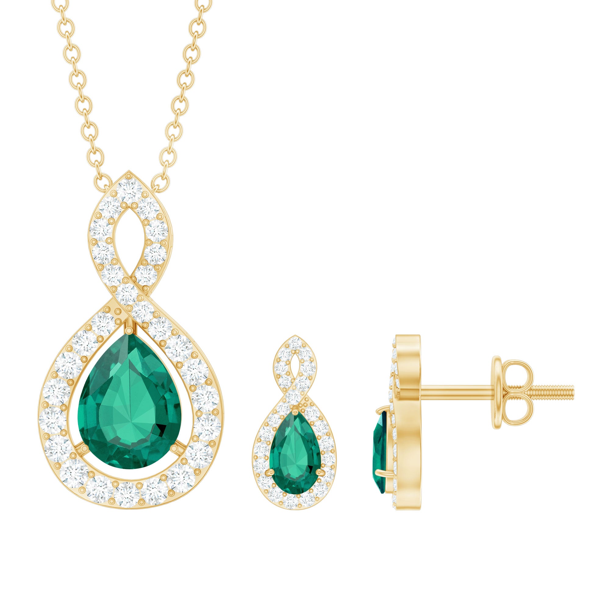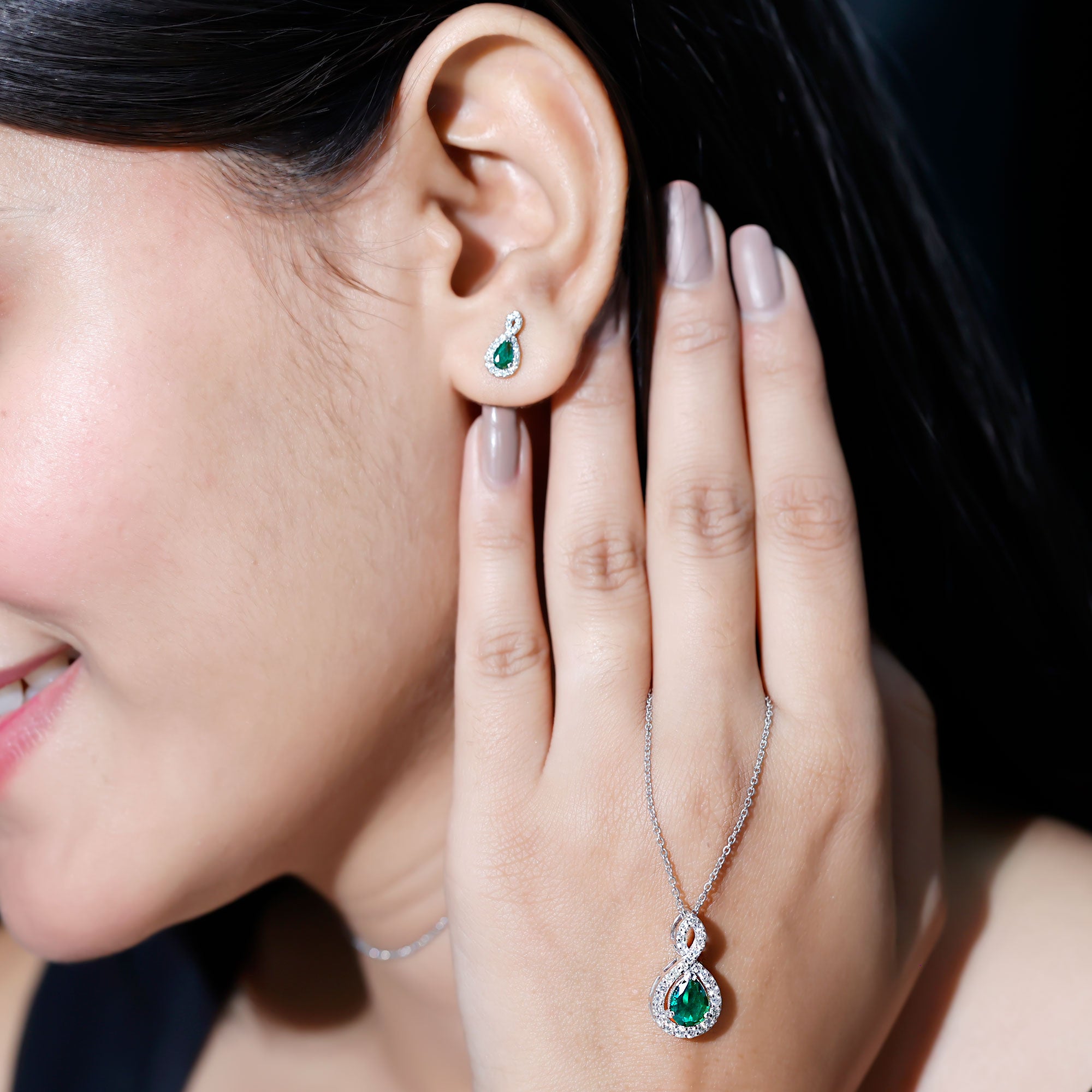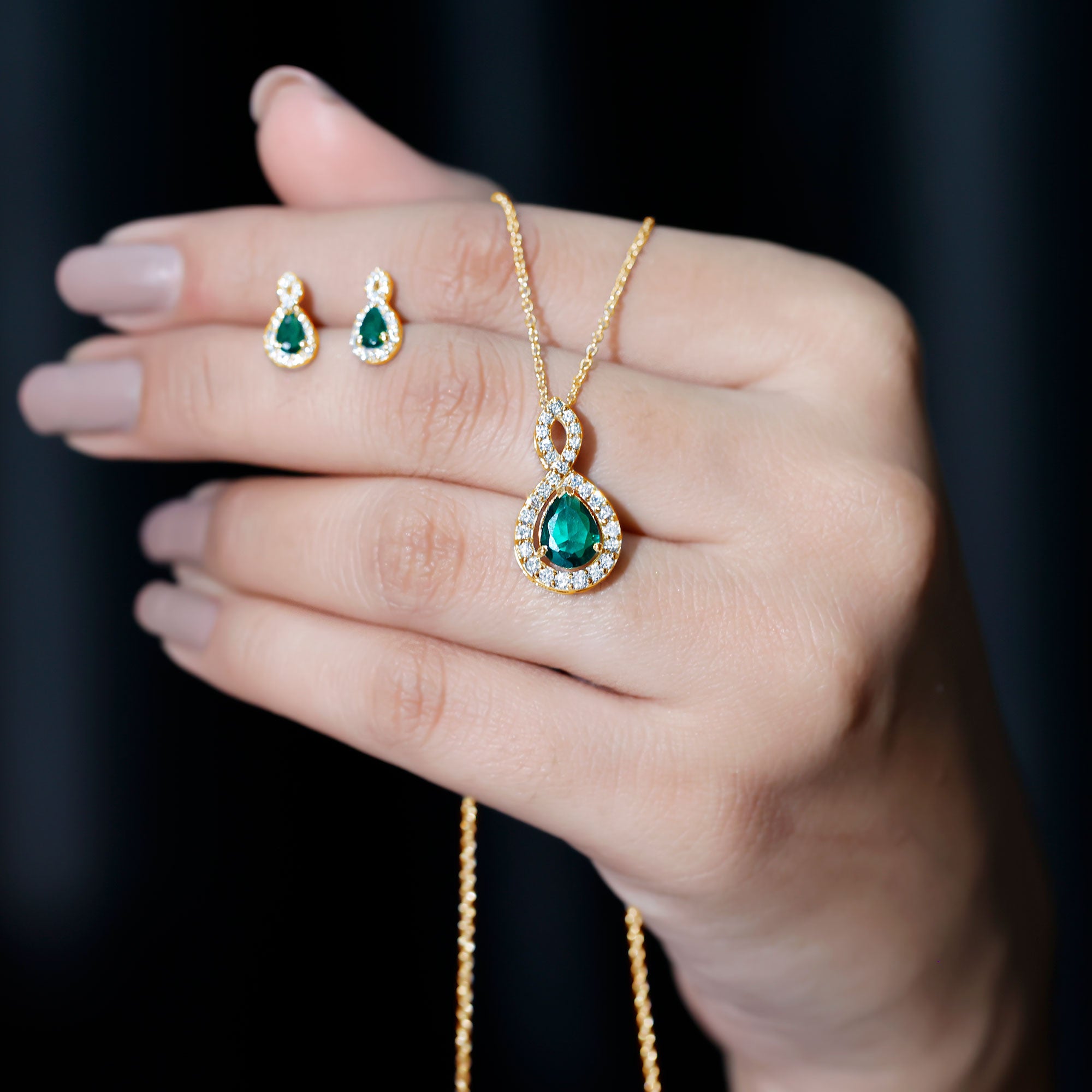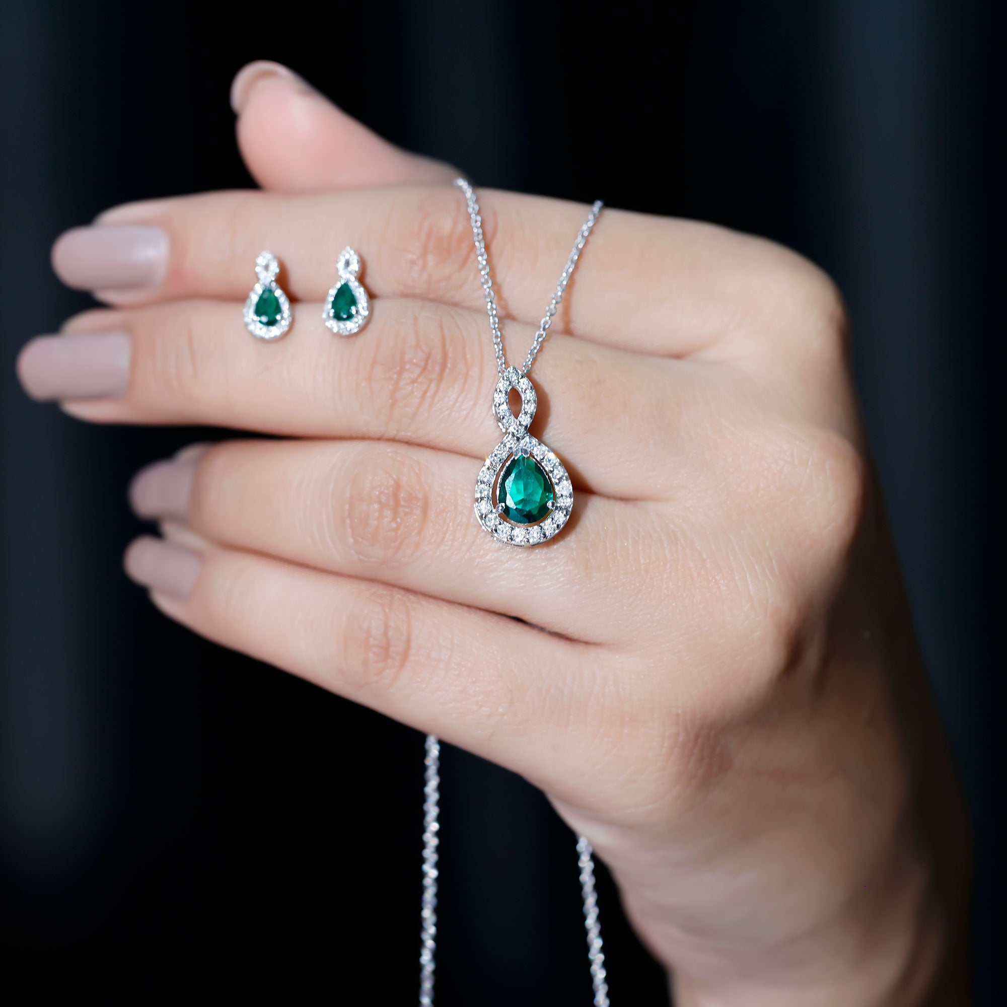 2.25 CT Certified Created Emerald Teardrop Infinity jewelry Set with Diamond Accent