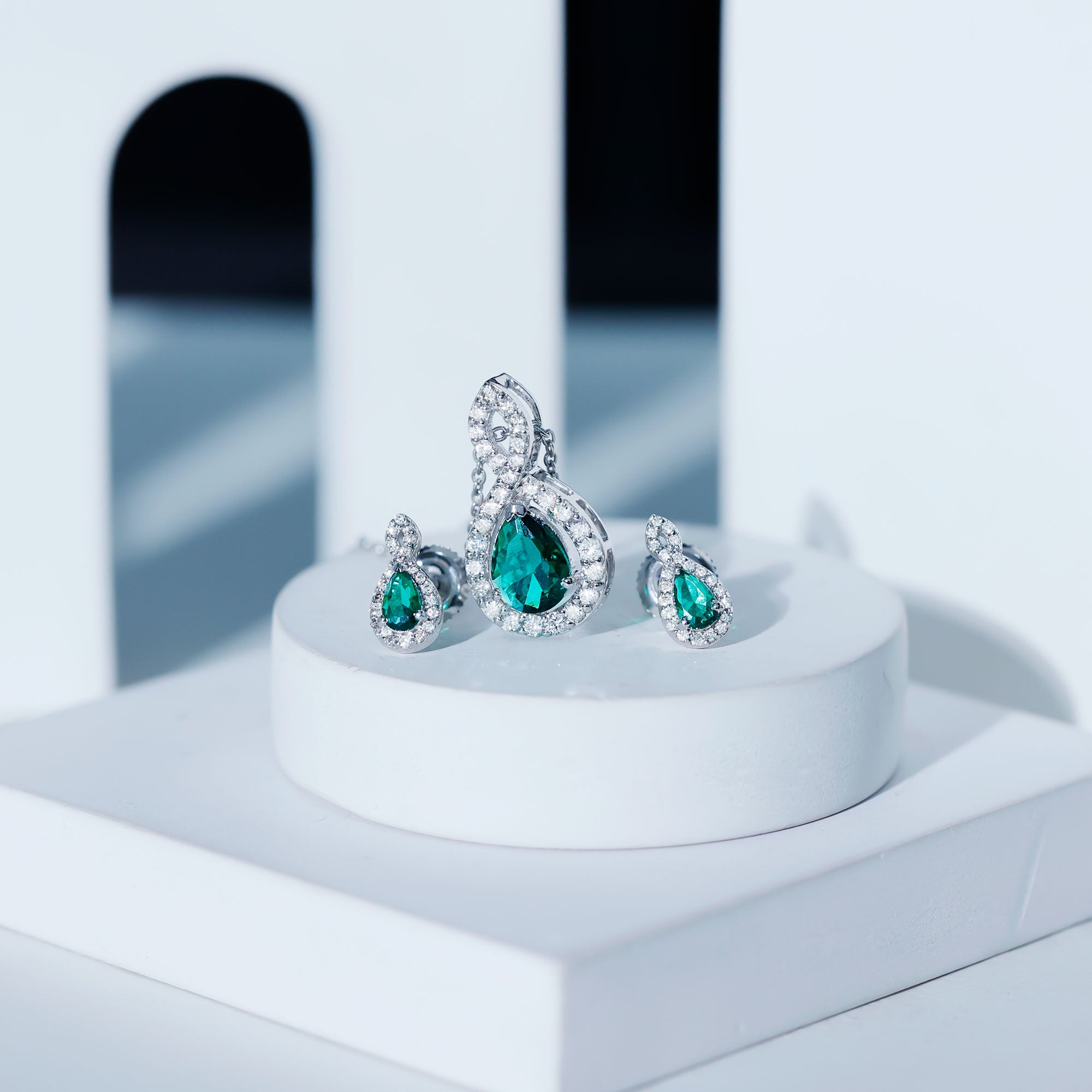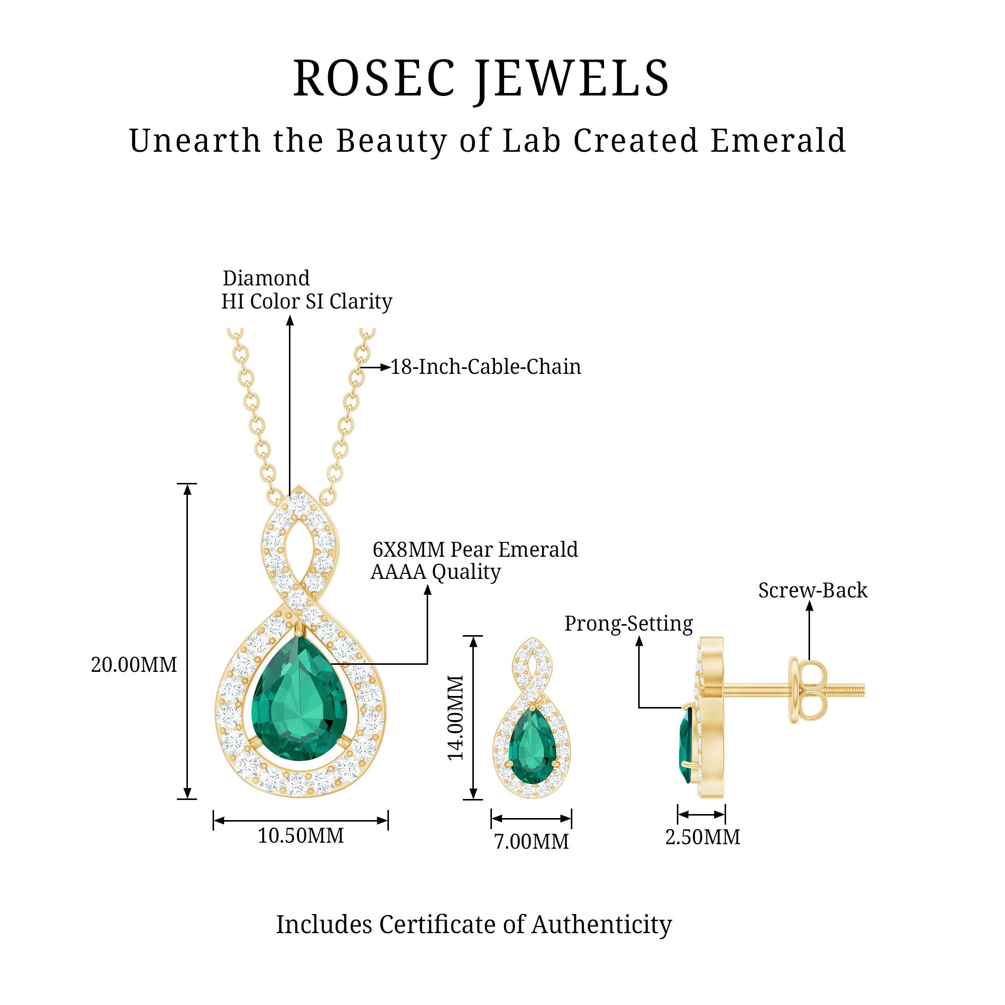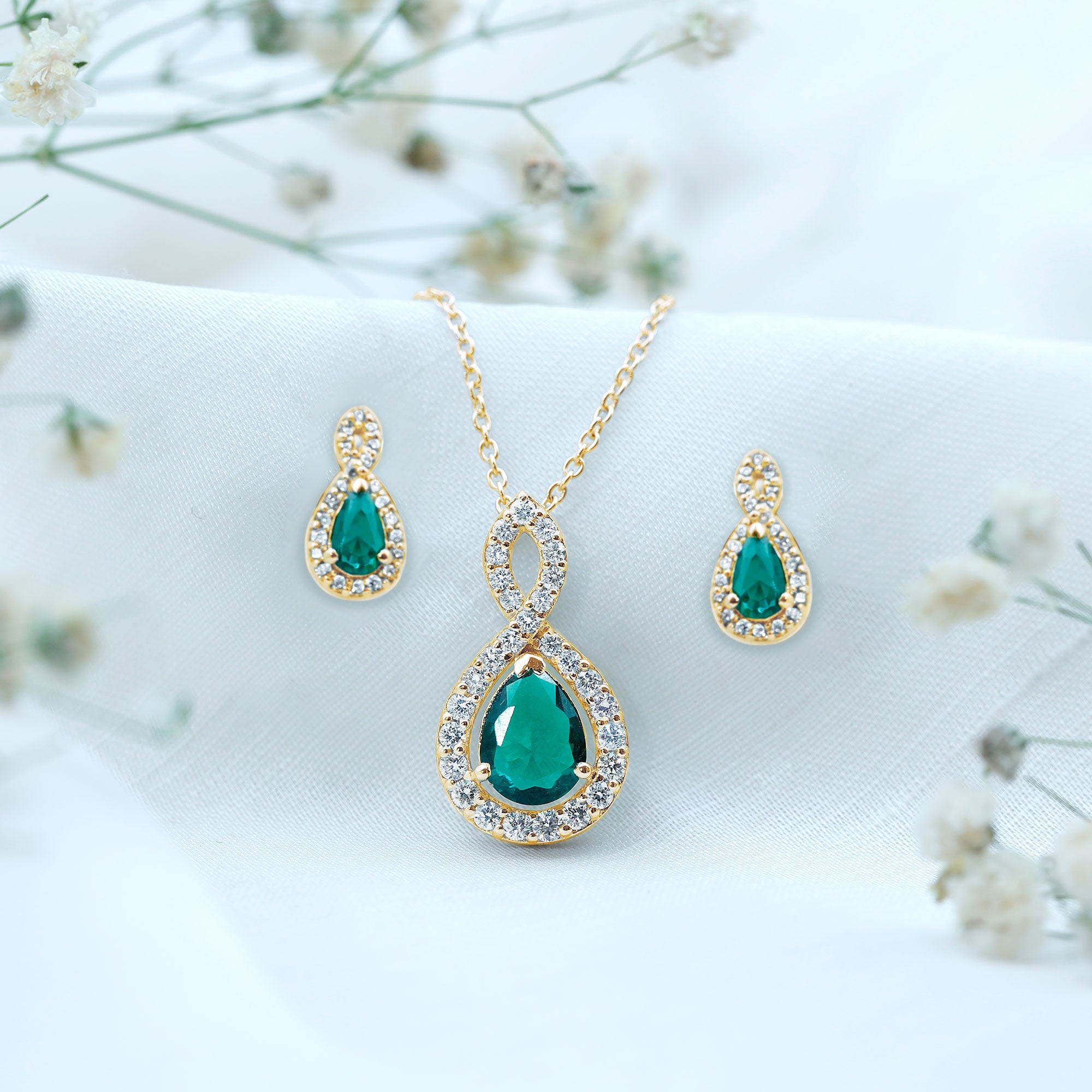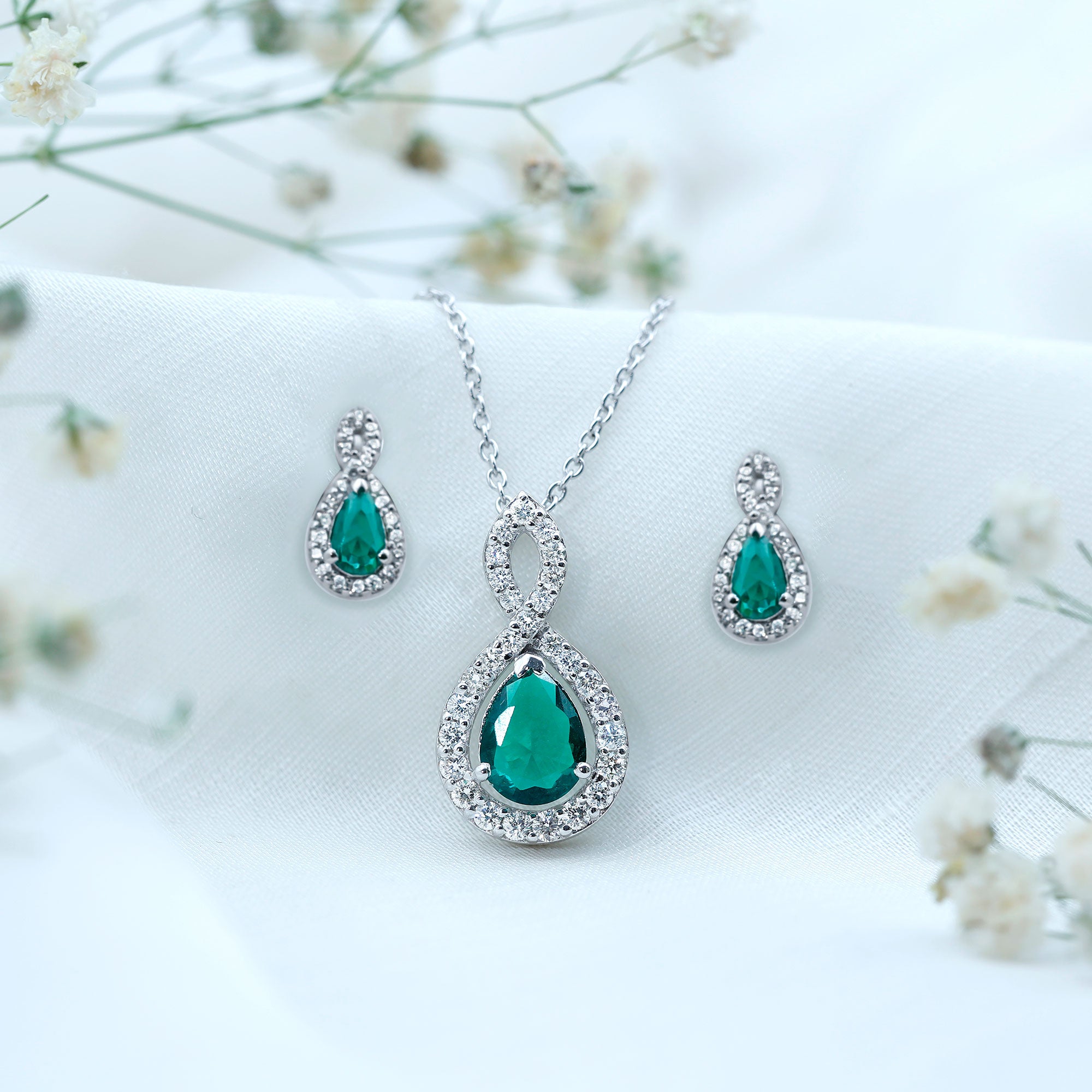 2.25 CT Certified Created Emerald Teardrop Infinity jewelry Set with Diamond Accent