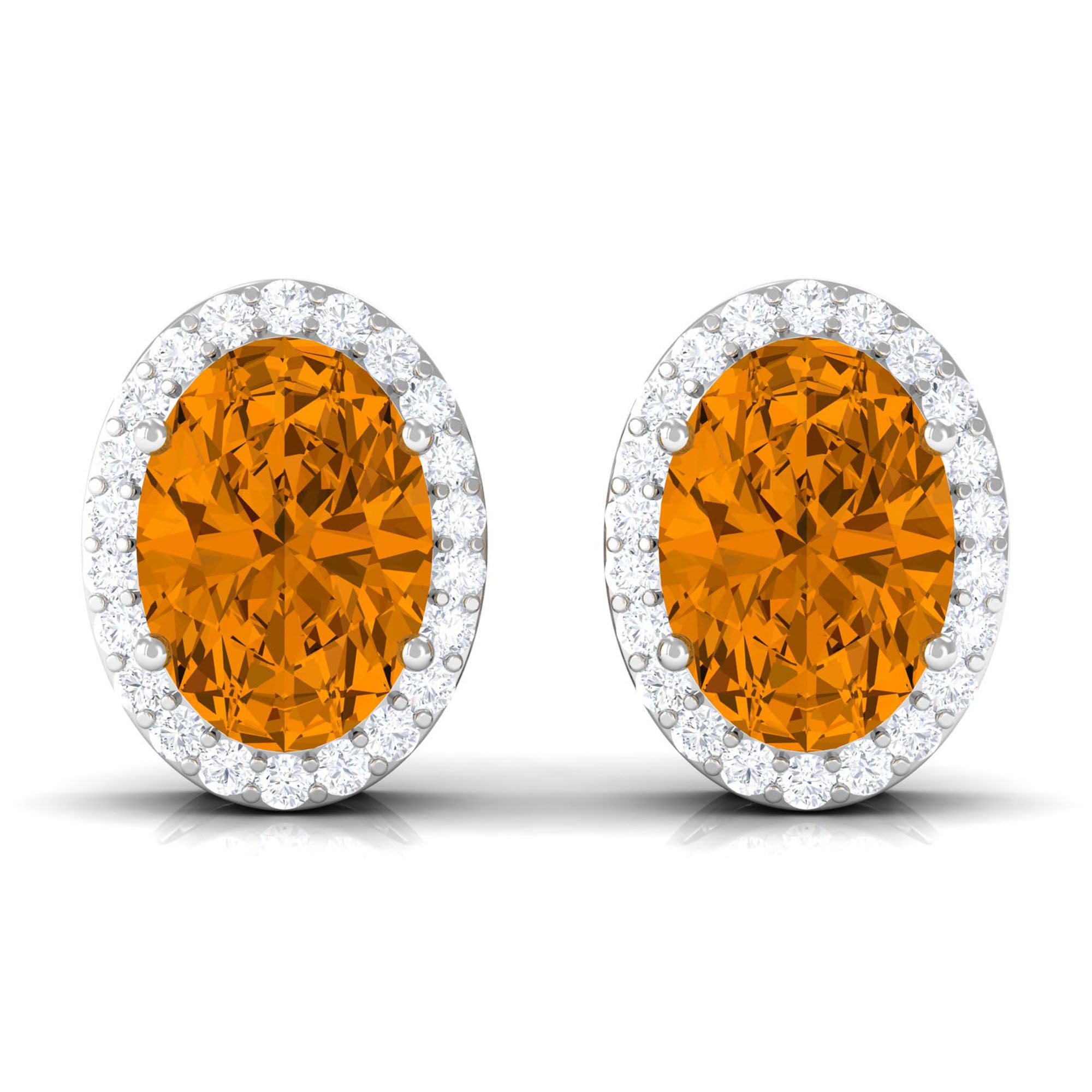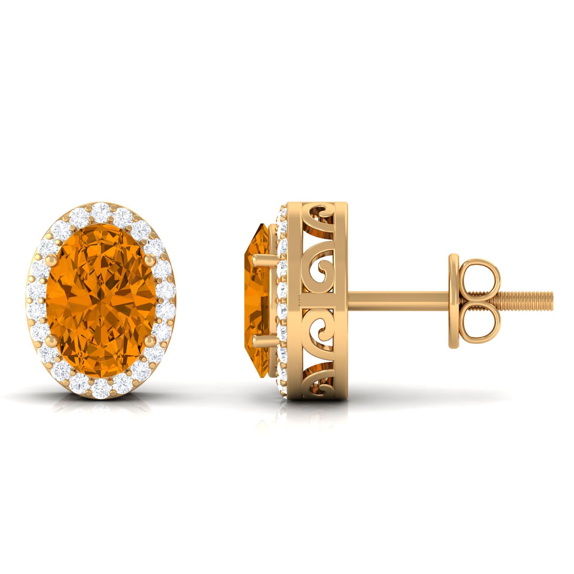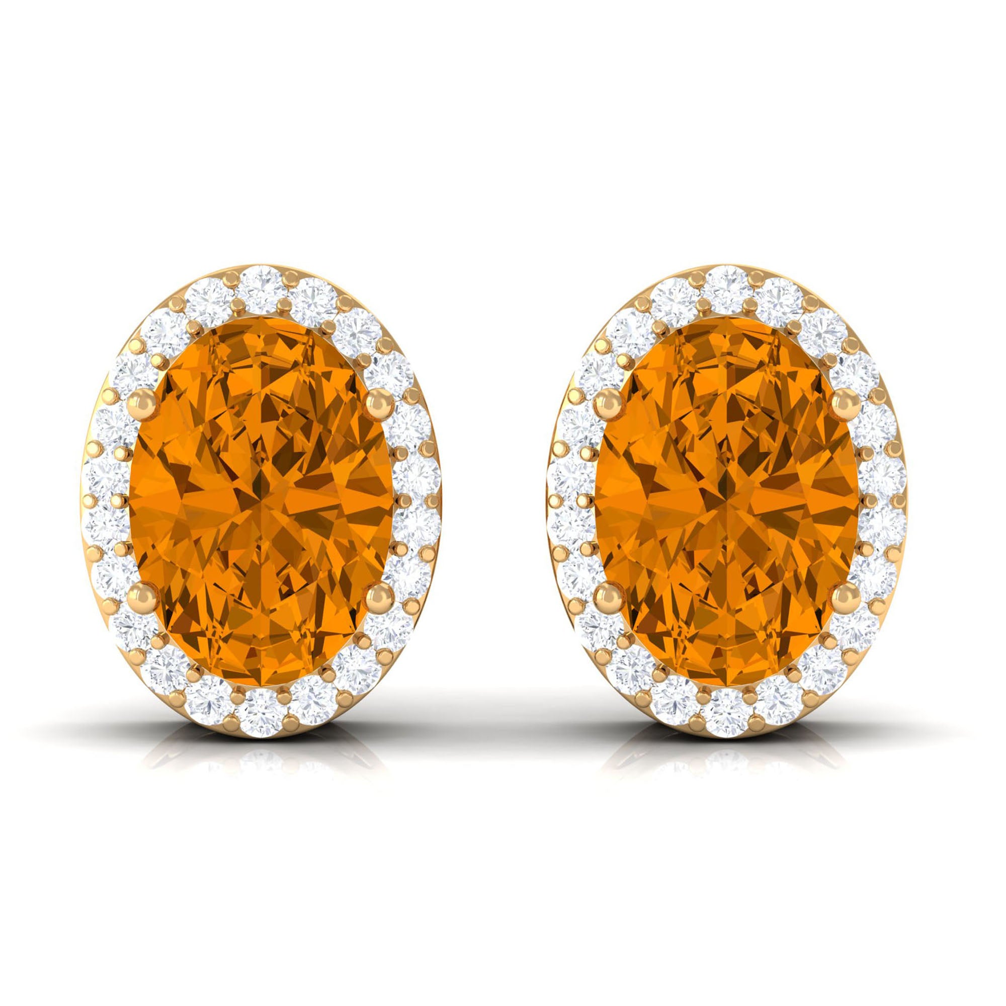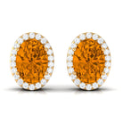 Adorn yourself in these Stud Earrings featuring 6X8 MM Oval Cut Citrine Solitaire adorned by a Round Brilliant Diamond Halo adding to the look of these Halo Stud Earrings.