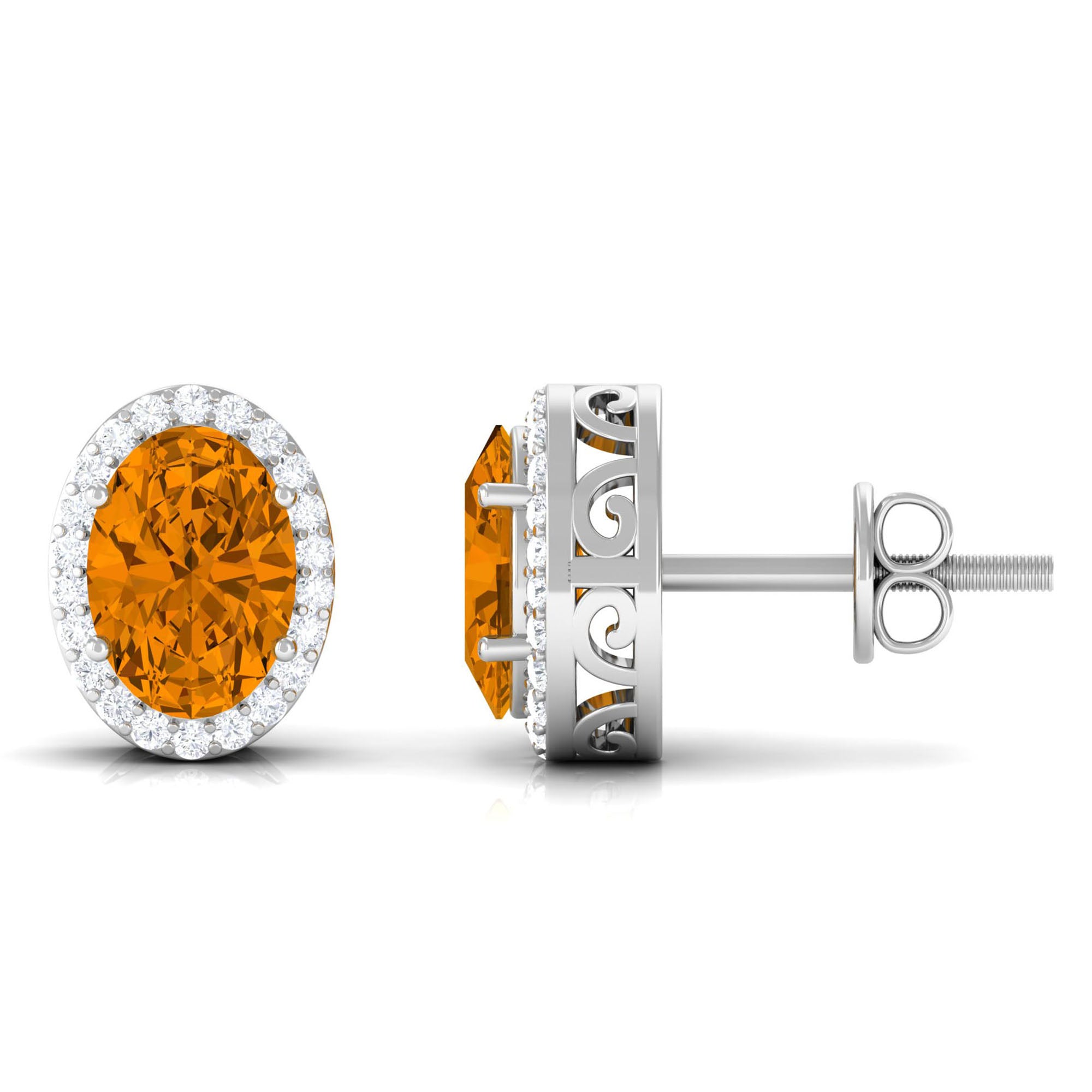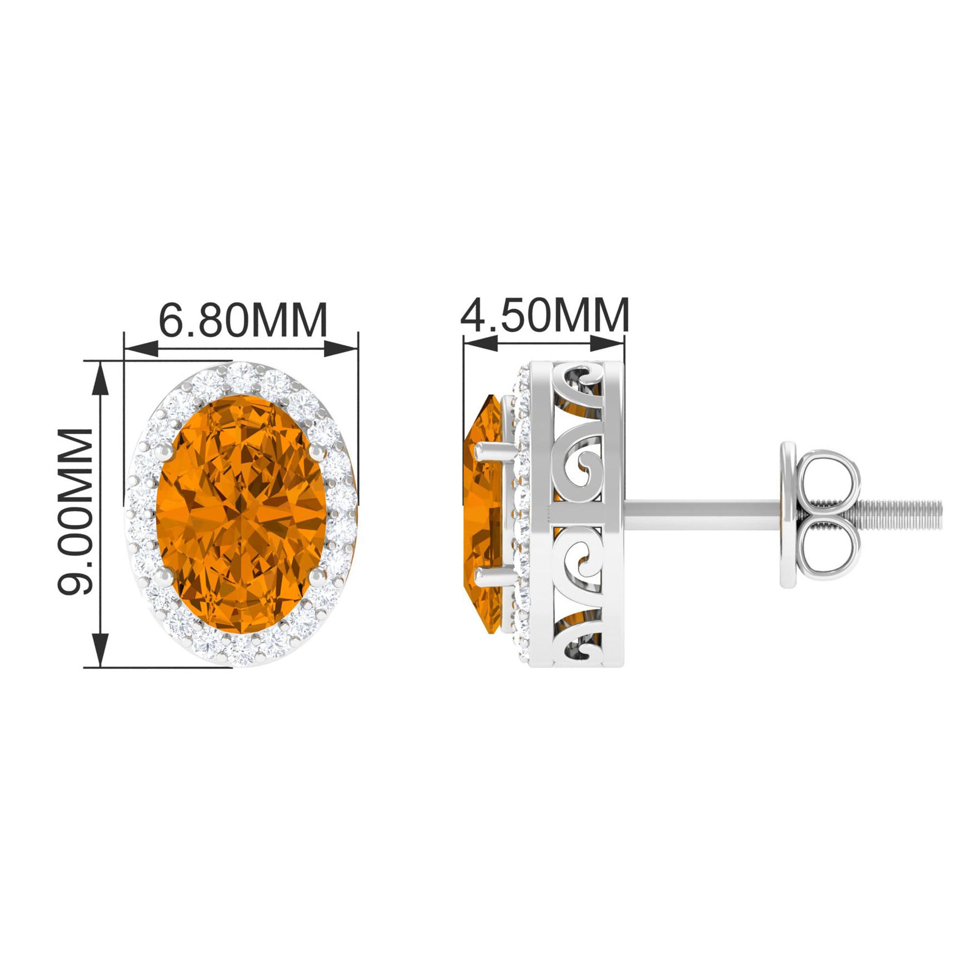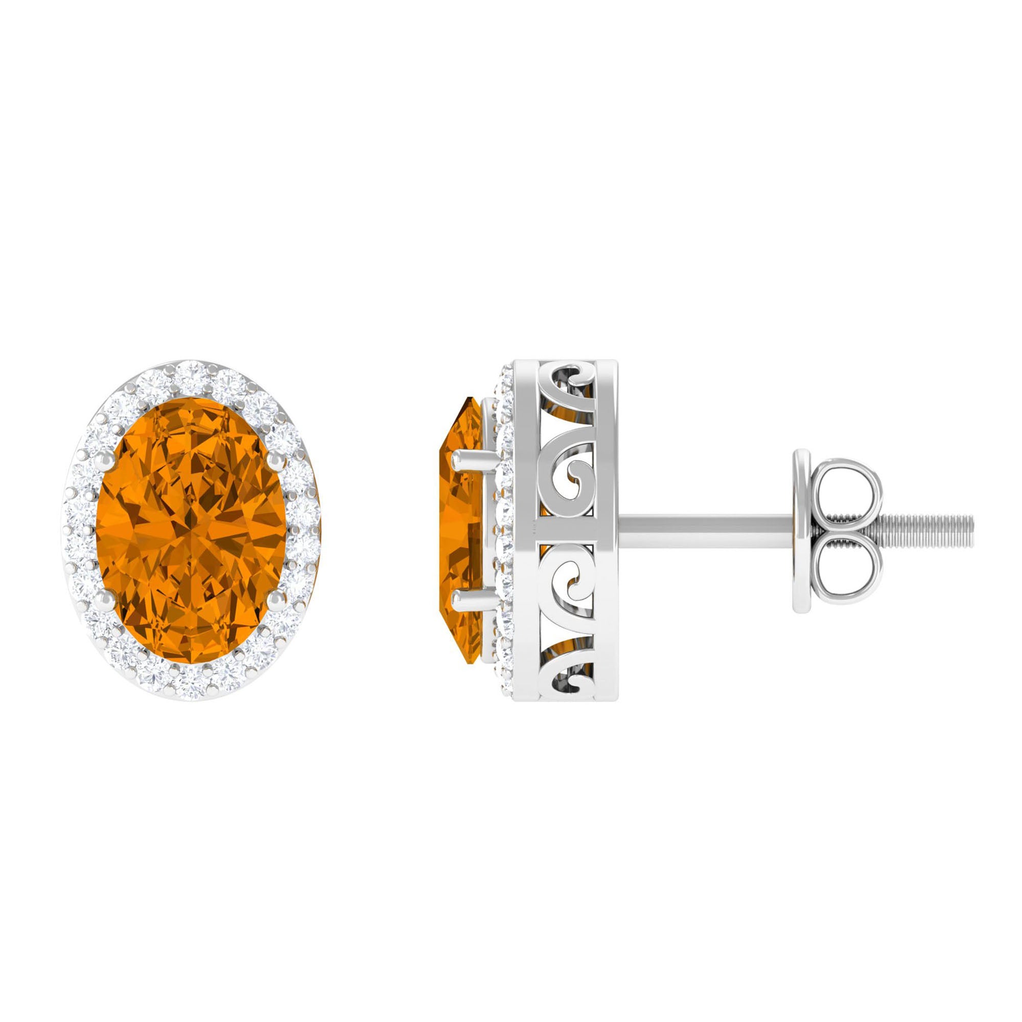 Adorn yourself in these Stud Earrings featuring 6X8 MM Oval Cut Citrine Solitaire adorned by a Round Brilliant Diamond Halo adding to the look of these Halo Stud Earrings.