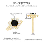 Add glamour to your outfit when you wear this Created Black Diamond Ring. Being adorned with 7 MM Round Shape Created Black Diamond in 6 Prong Setting with Diamond on Flower Ring. This Created Black Diamond Floral Ring is a perfect present for your loved ones. The ring carries a total weight of 2.25 Carat with AAA Quality. All our gemstones are certified and undergoes strict quality check.