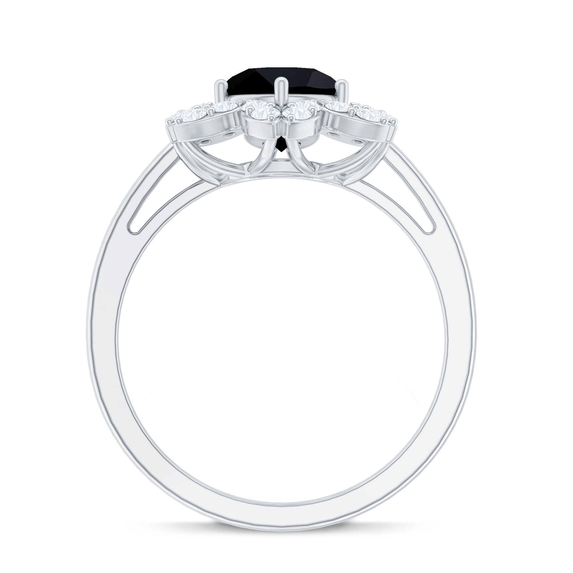 Add glamour to your outfit when you wear this Created Black Diamond Ring. Being adorned with 7 MM Round Shape Created Black Diamond in 6 Prong Setting with Diamond on Flower Ring. This Created Black Diamond Floral Ring is a perfect present for your loved ones. The ring carries a total weight of 2.25 Carat with AAA Quality. All our gemstones are certified and undergoes strict quality check.