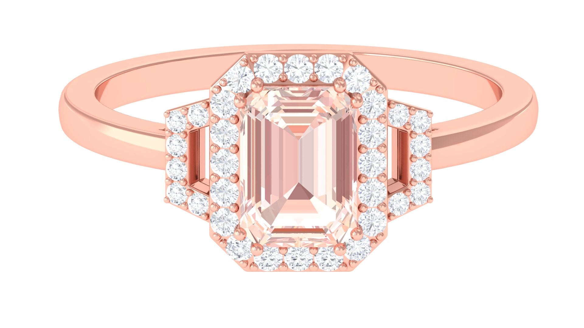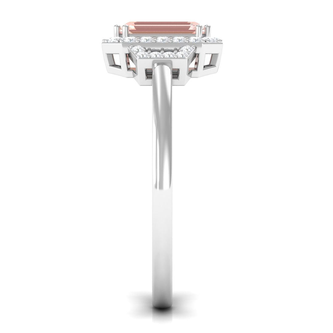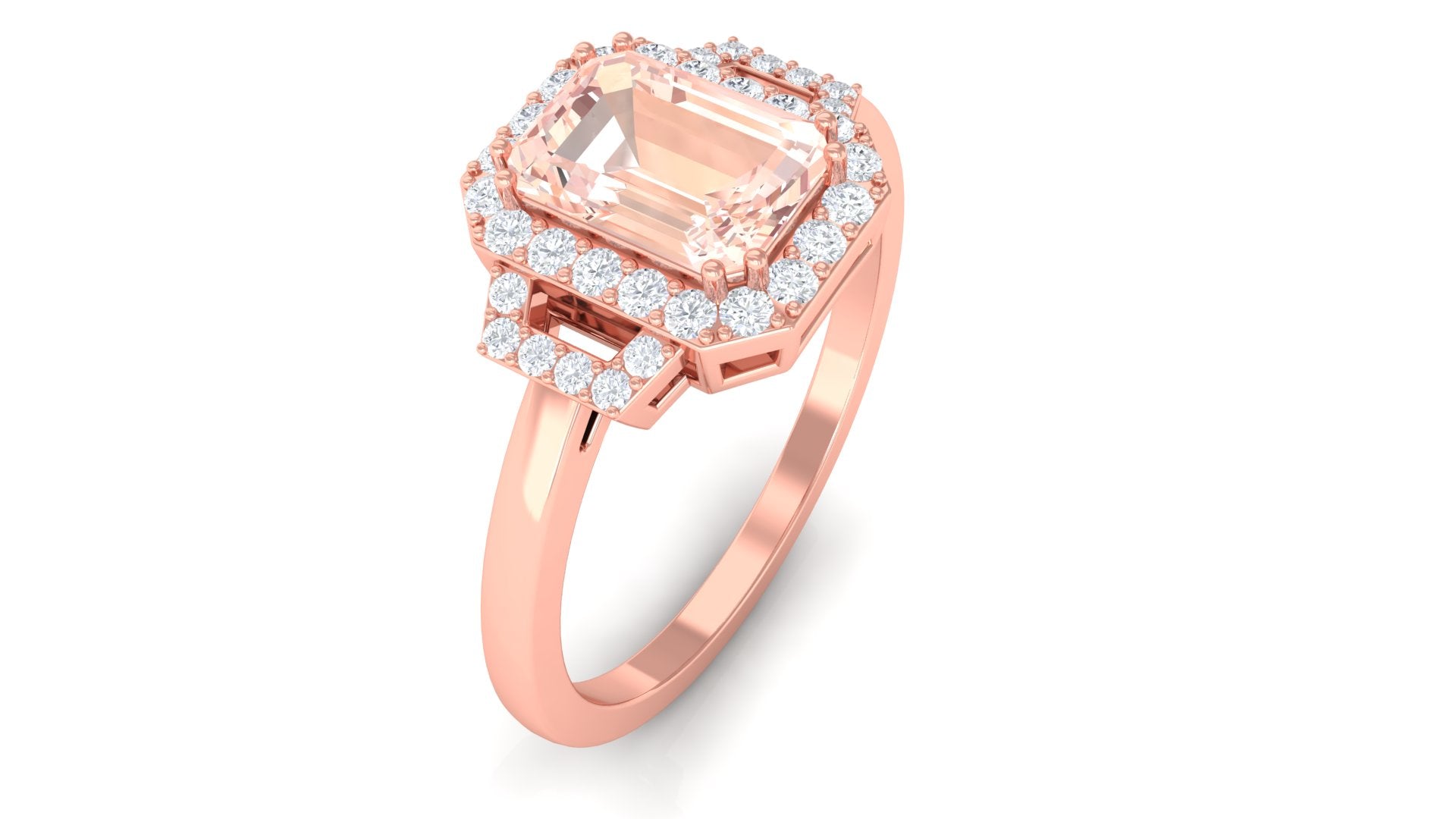 2.25 CT Emerald Cut Morganite Cocktail Engagement Ring with Diamond