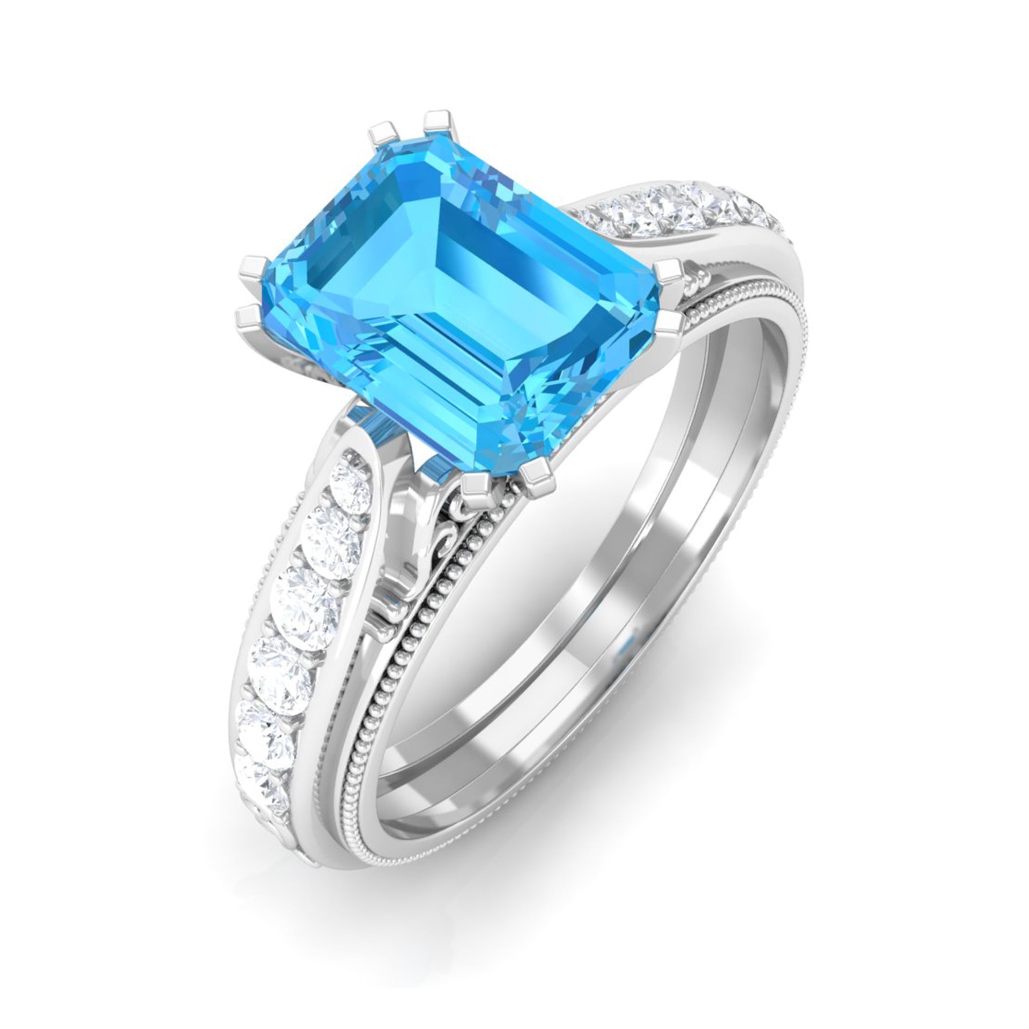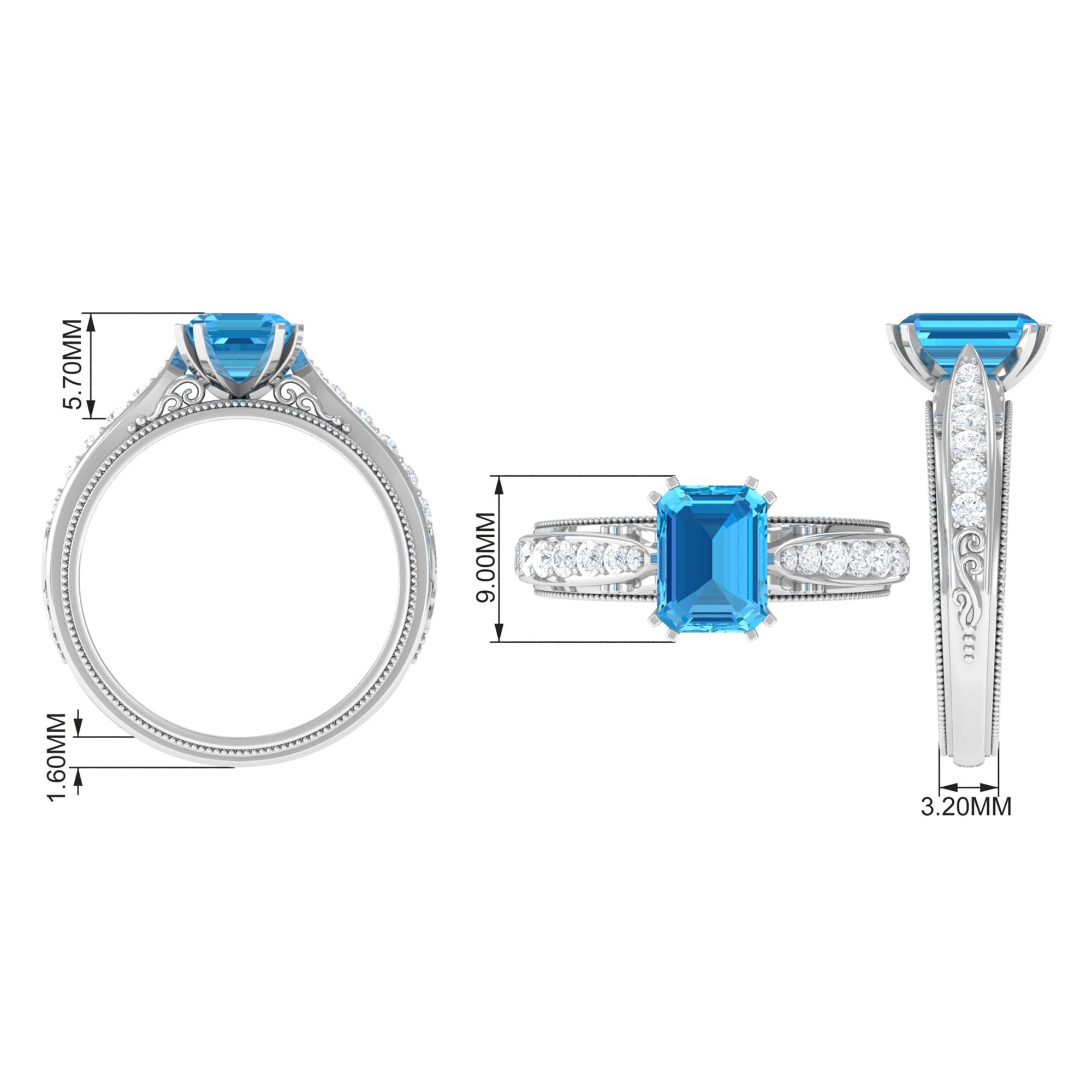 2.25 CT Emerald Cut Swiss Blue Topaz Solitaire Ring with Diamond Side Stones