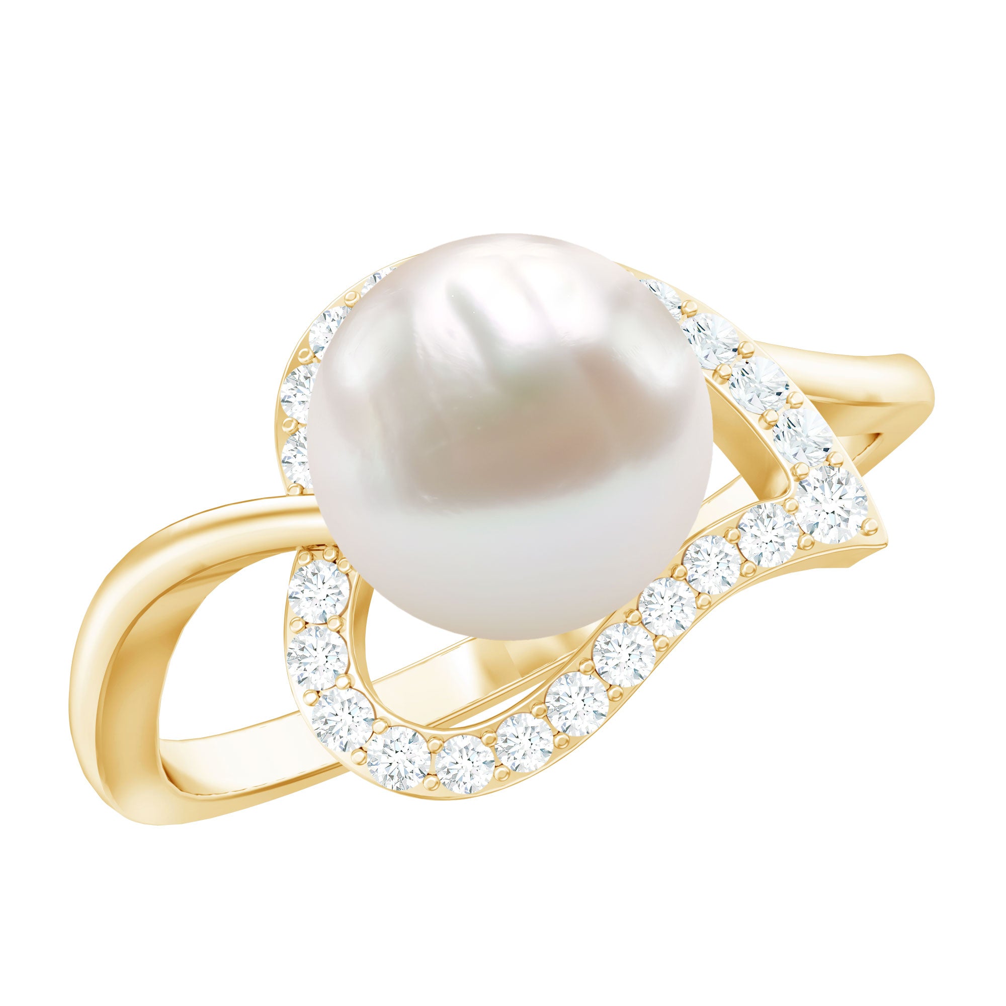 2.25 CT Freshwater Pearl and Diamond Heart Bypass Engagement Ring