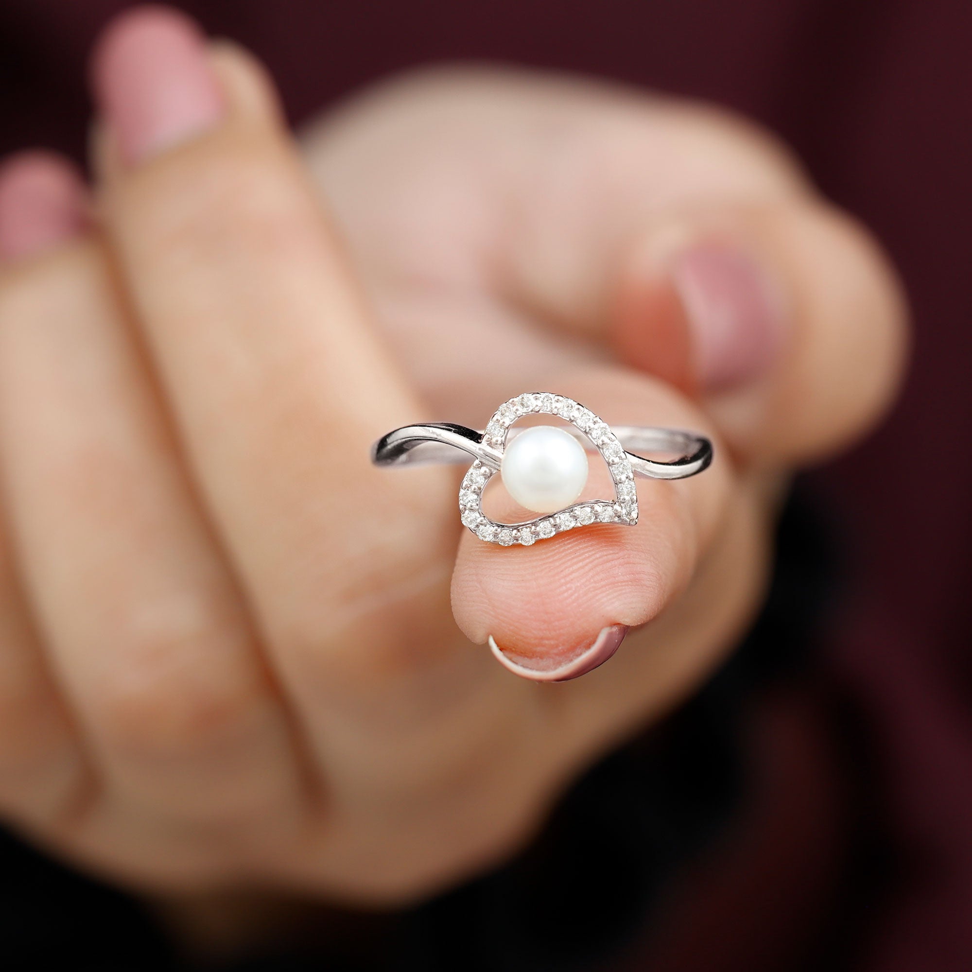 Express your love in the most exquisite way with our Pearl Heart Engagement Ring, featuring a dazzling pearl center stone and a bypass shank. The heart ring is accented with a shimmering Diamond, adding a touch of radiance and glamour to this already stunning piece. Perfect for showing your love and appreciation to that special person in your life, this ring is sure to become a treasured symbol of your eternal and never-ending love. So why wait? Grab this Freshwater Pear Ring with Diamond today and make her feel truly cherished and adored.