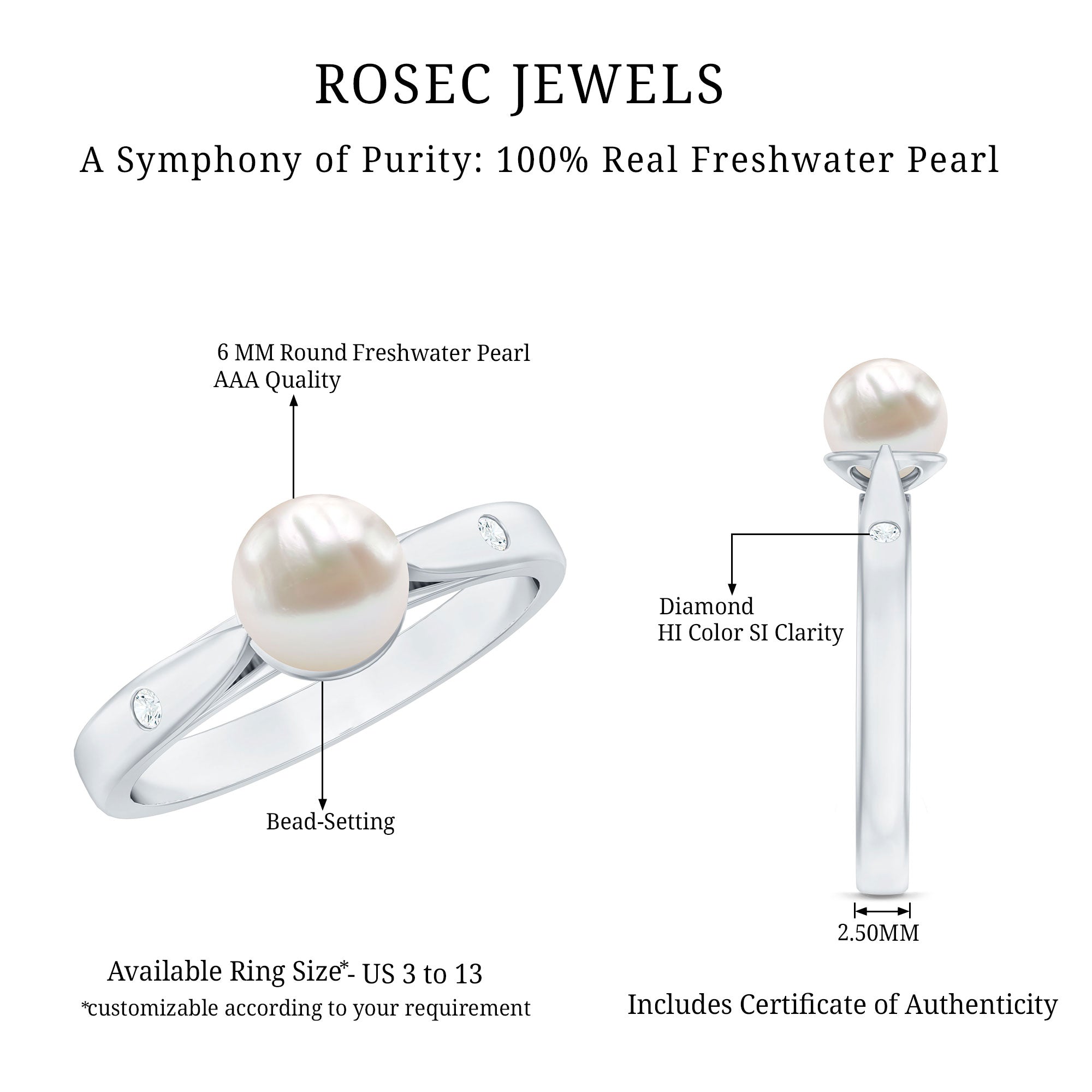 Here is a perfect combo of Dazzle, Style and Simplicity this Freshwater Pearl Engagement Ring embellished with round shape Freshwater Pearl set as solitaire in the center with a Diamond on the both side of the shank make the look more desirable, this engagement ring is ideal for women looking for something minimalistic yet attractive.