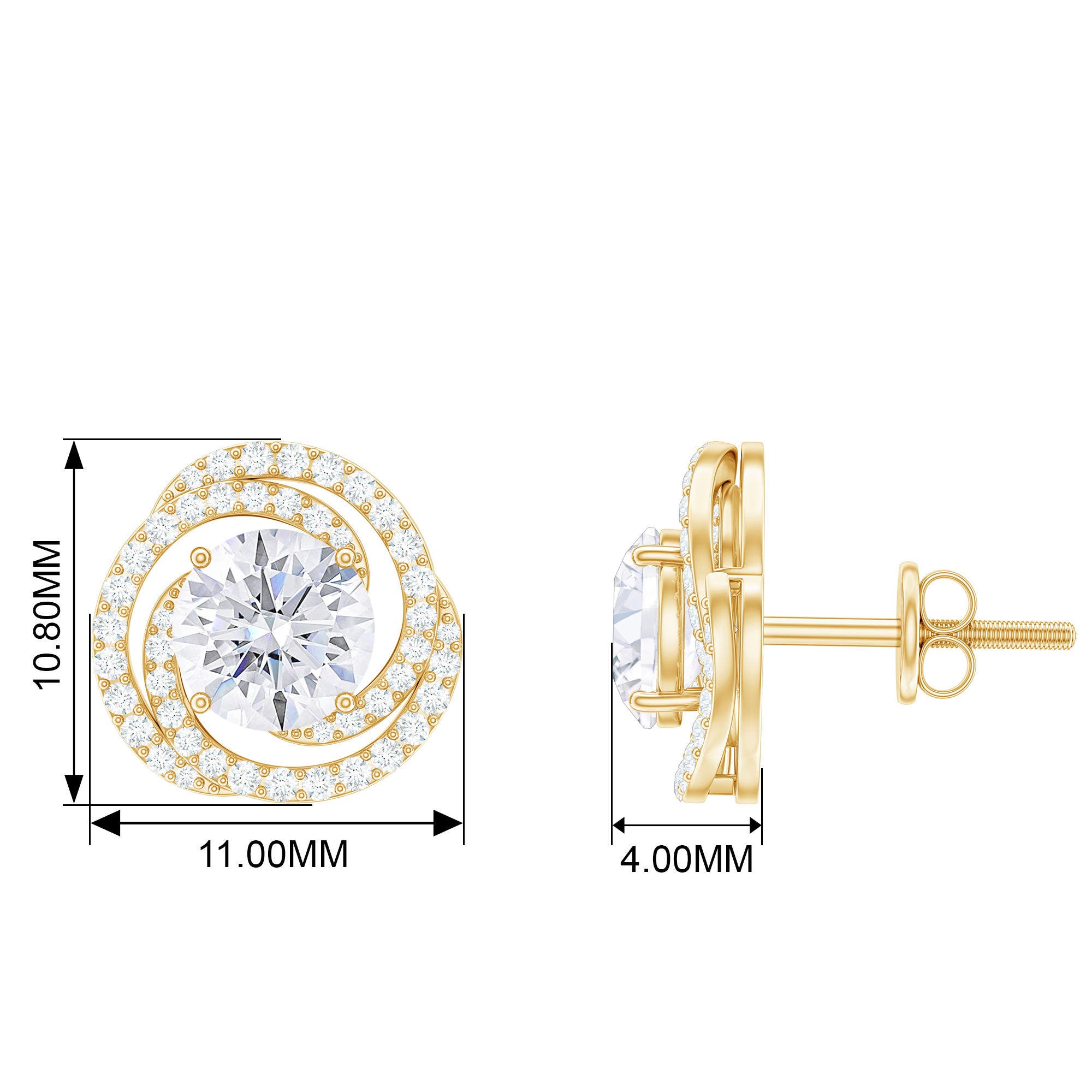 These attractive Braided Stud Earrings are adorned with Round Cut Moissanite over Solid Gold build with Halo to make for a charming Gift for your beloved.