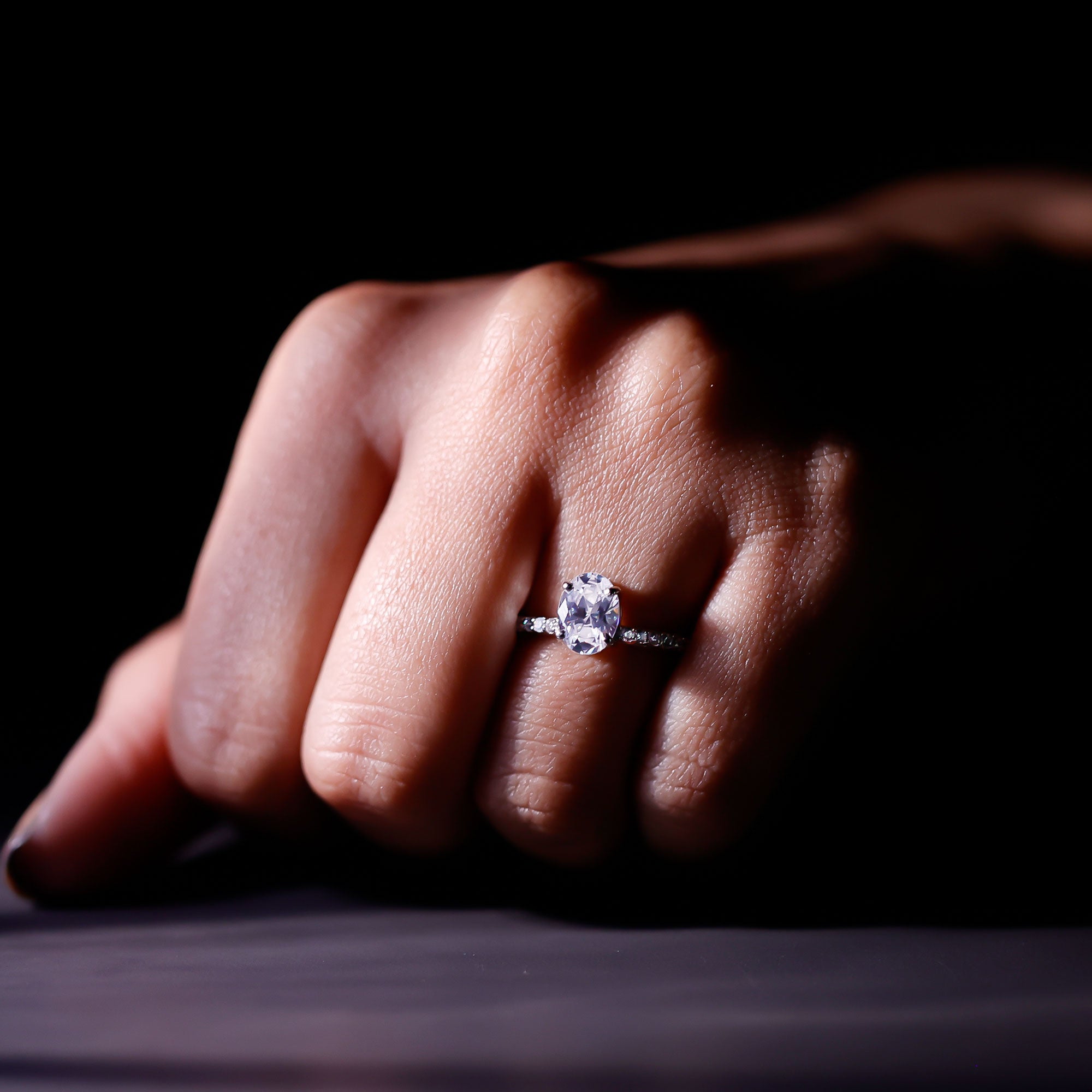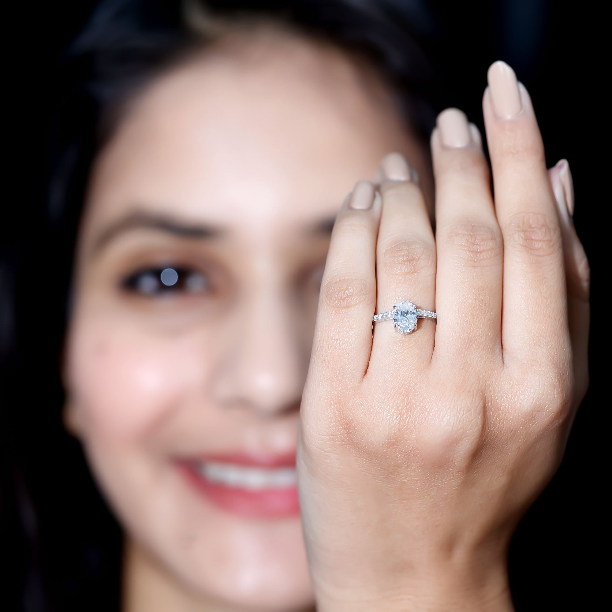 2.25 CT Oval Cut Solitaire Zircon Engagement Ring with Side Stones