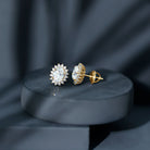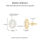 Make a bold statement with these stunning oval Moissanite stud earrings. The center stone is surrounded by a bright halo of round Moissanite, composed in gold. The screw-back design ensures a secure fit, so you can sparkle with confidence. Add these earrings to your collection and turn heads wherever you go.