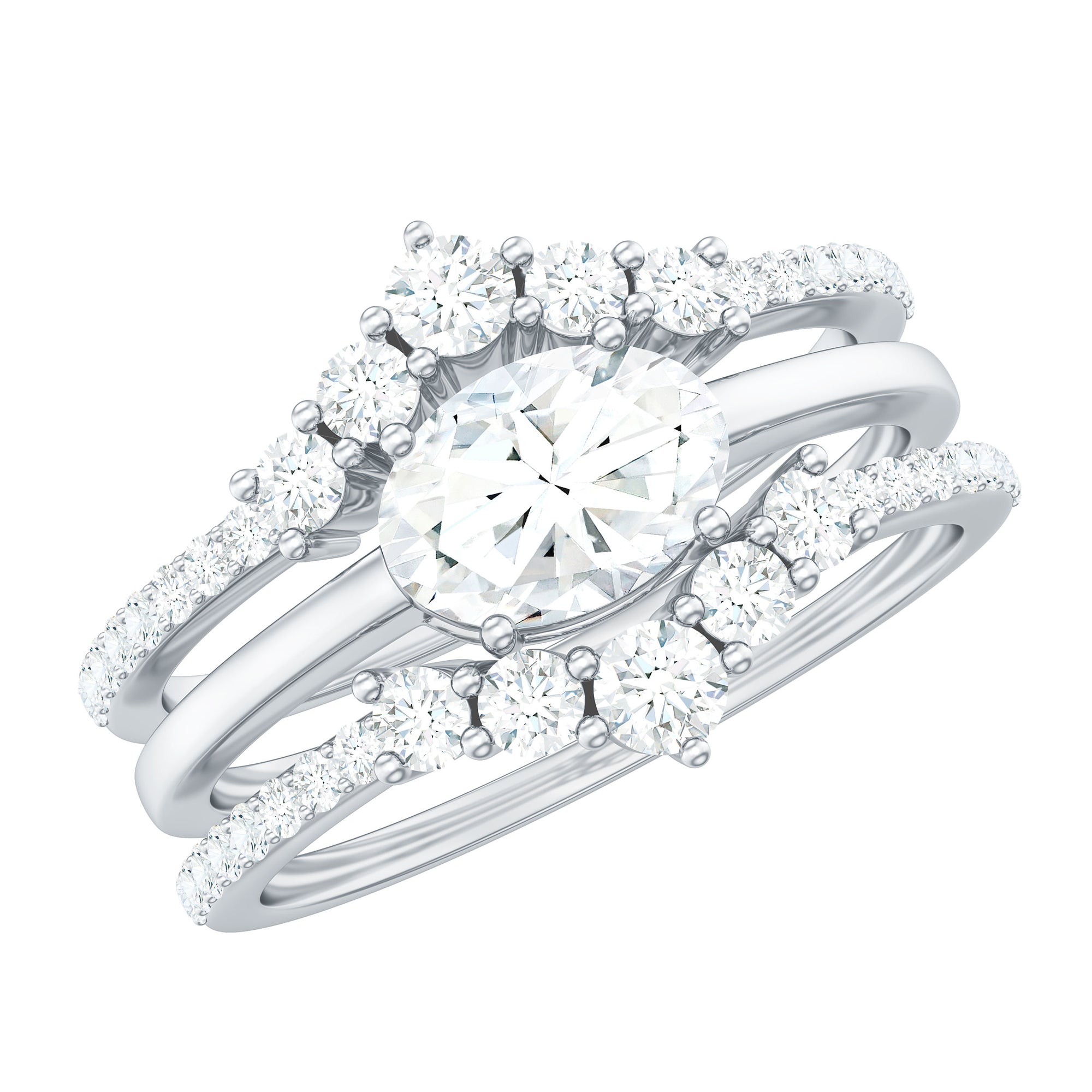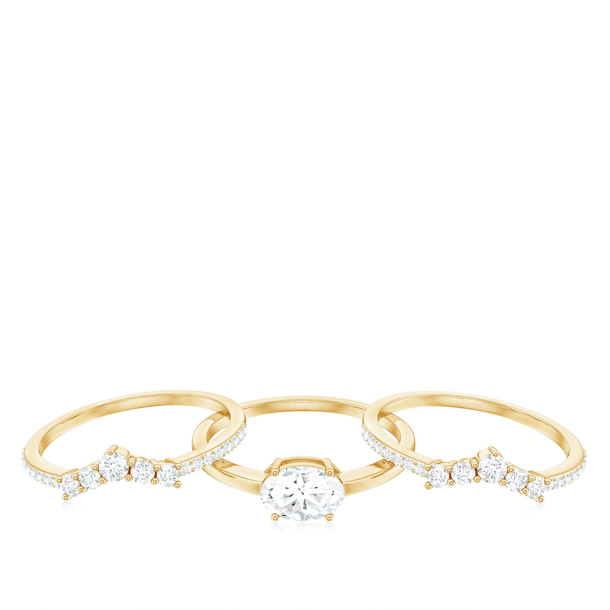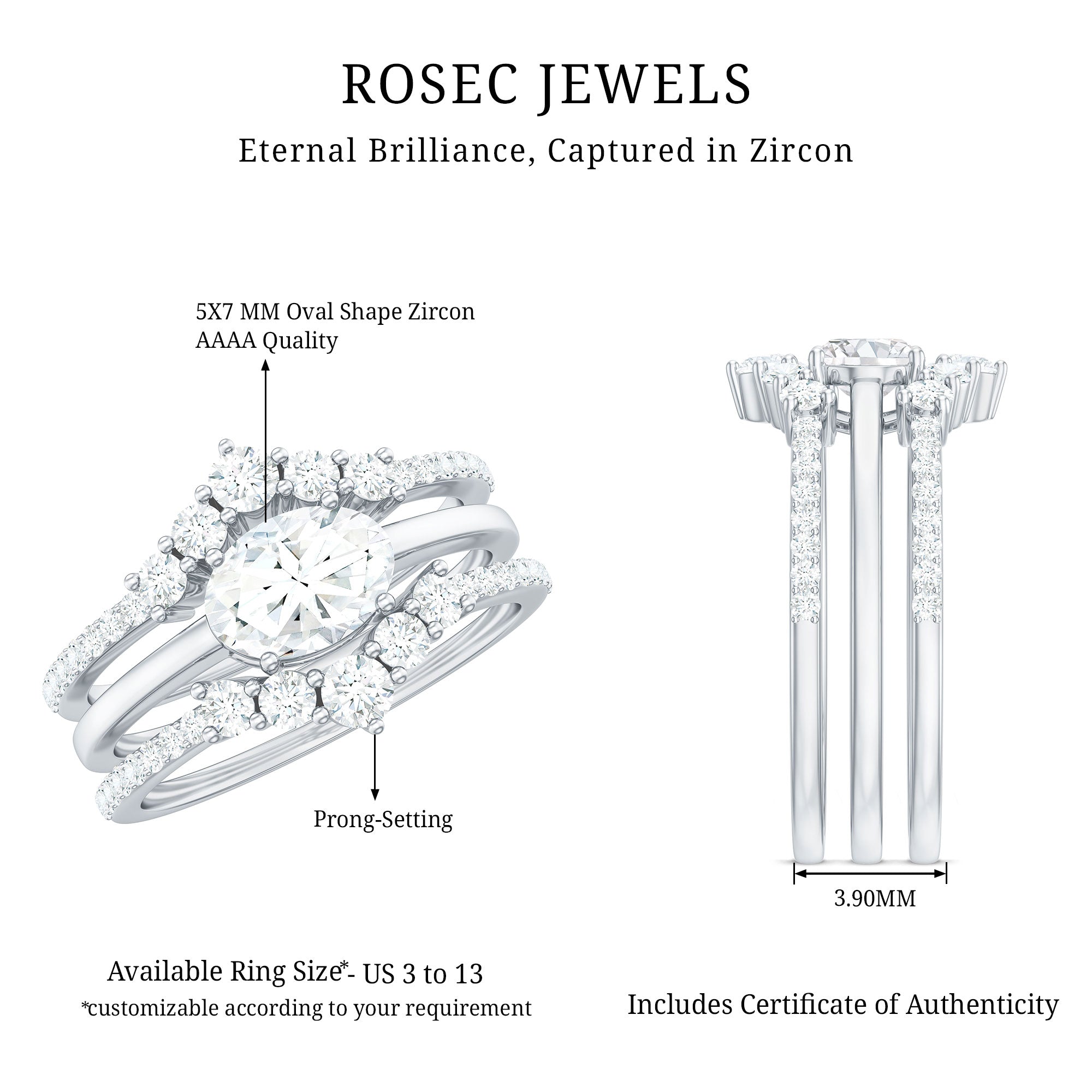 2.25 CT Oval Zircon Trio Wedding Ring Set in Gold