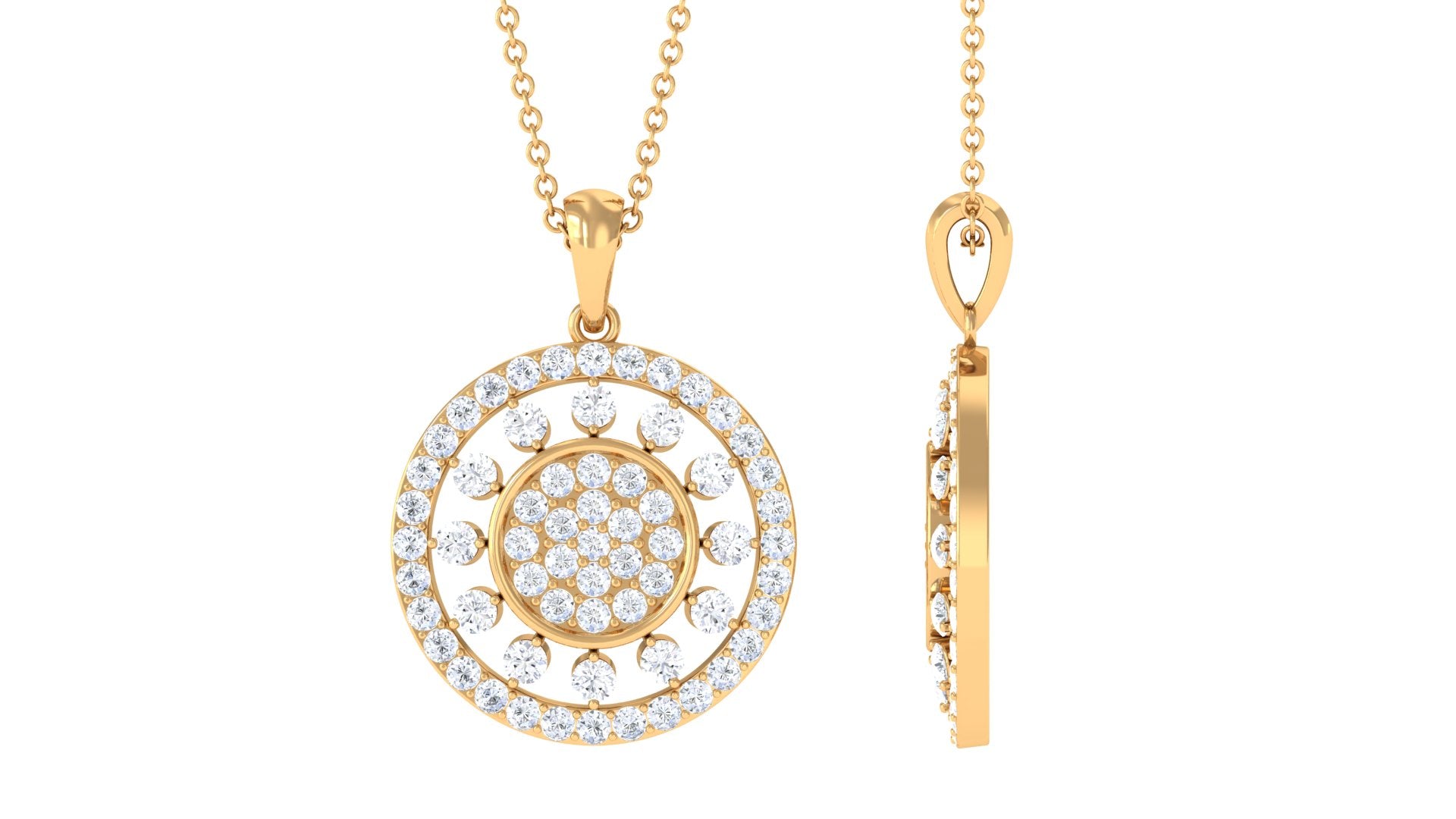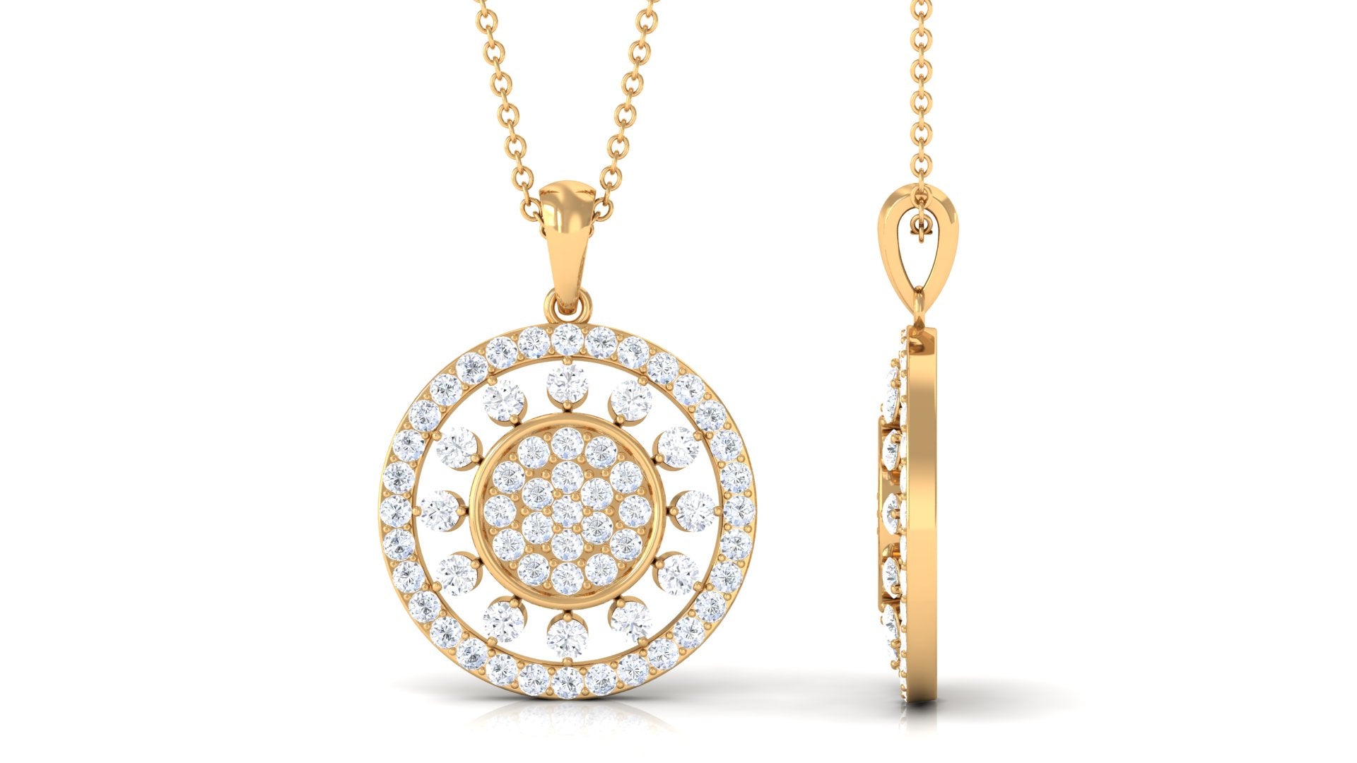 This glamorous Moissanite Cluster Pendant features round shaped Moissanite gemstone encased in a pave setting. The vintage style eternity anniversary pendant is crafted from solid gold, adding to its overall elegance.