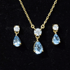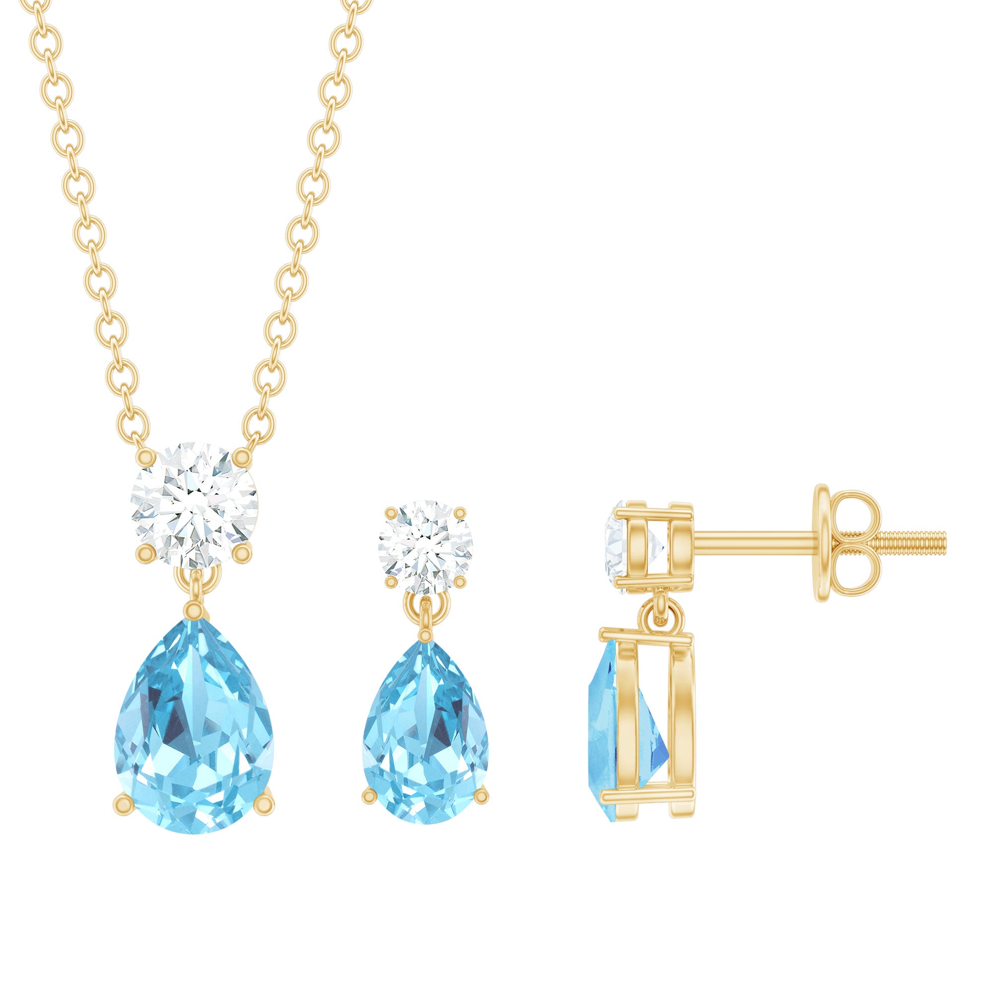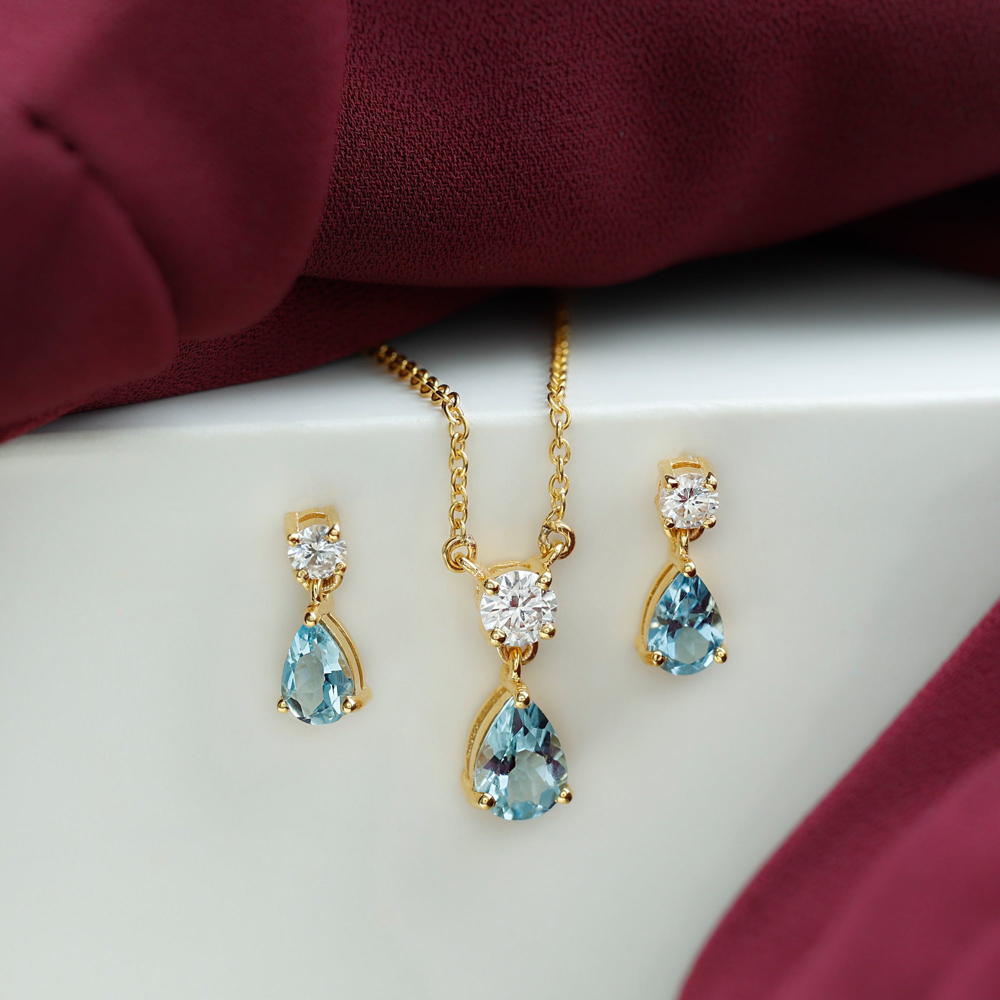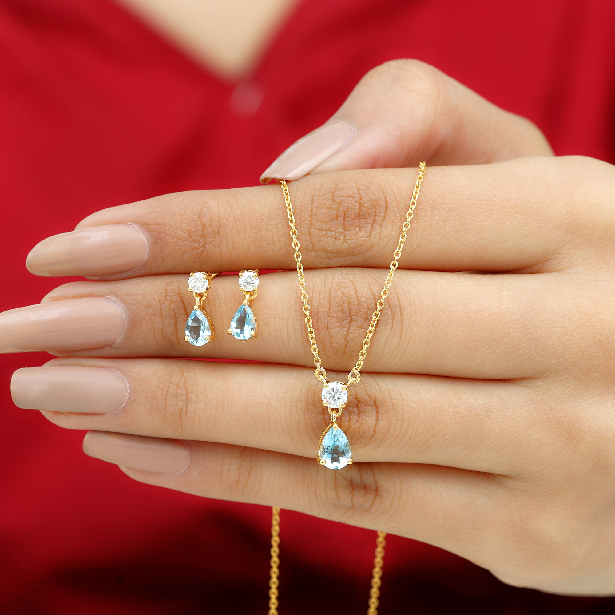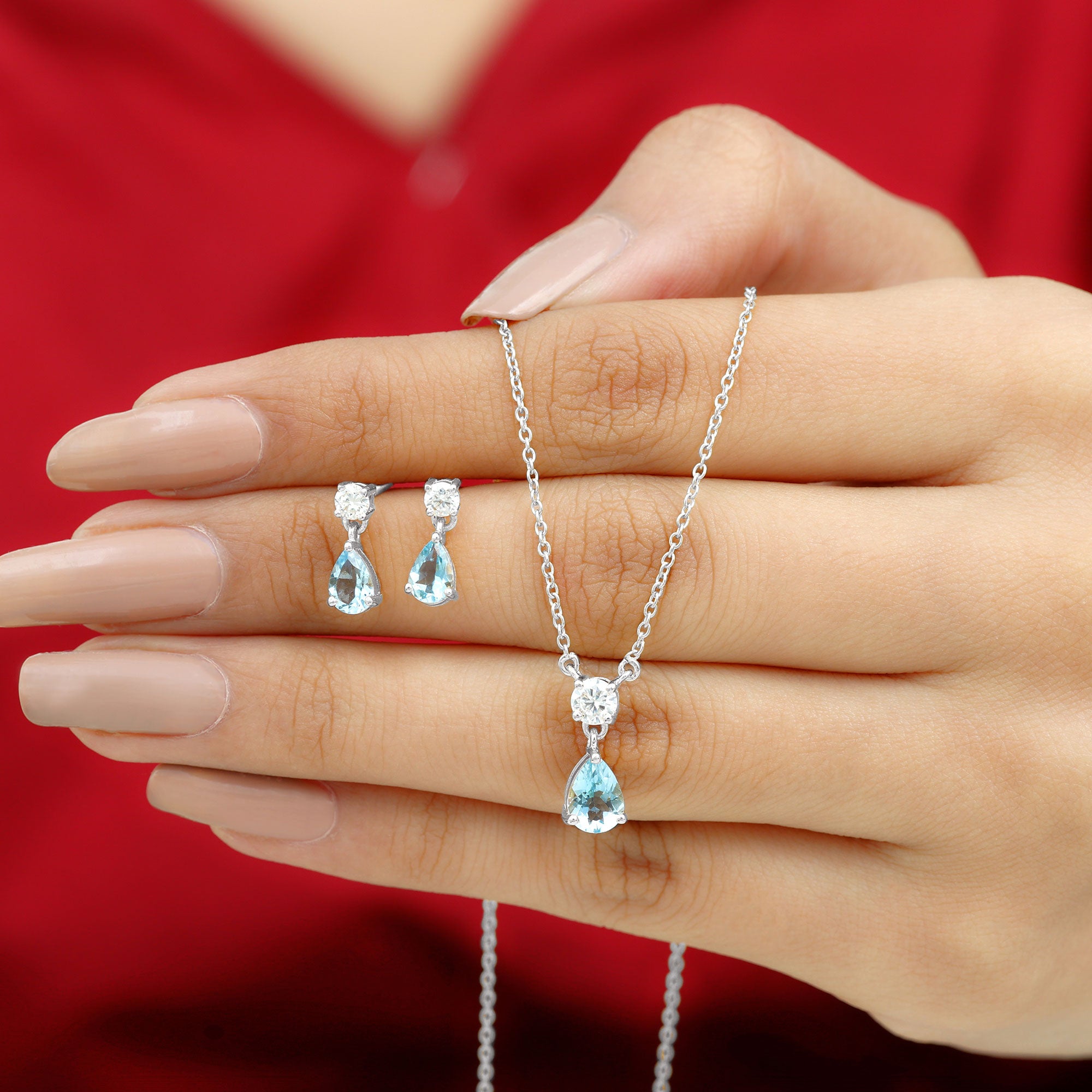 2.25 CT Pear Cut Aquamarine Tear Drop Jewelry Set with Moissanite