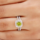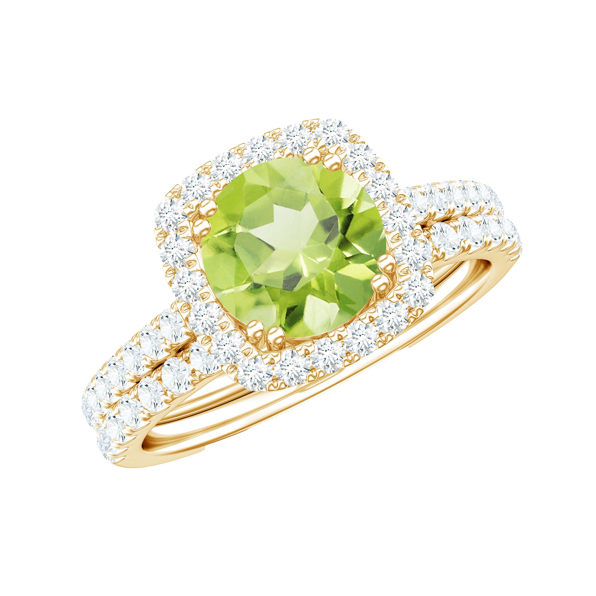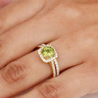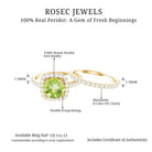 Embrace beautiful memories of your wedding with this lovely Bridal Ring Set designed with a round shape Peridot Engagement Ring and Moissanite Wedding Band.