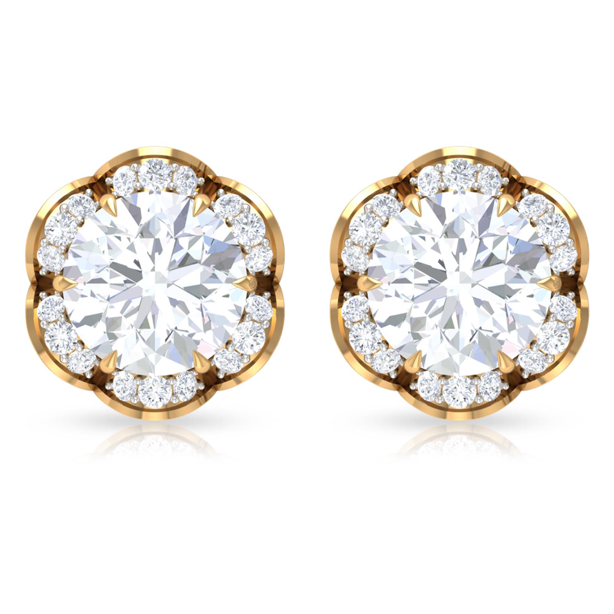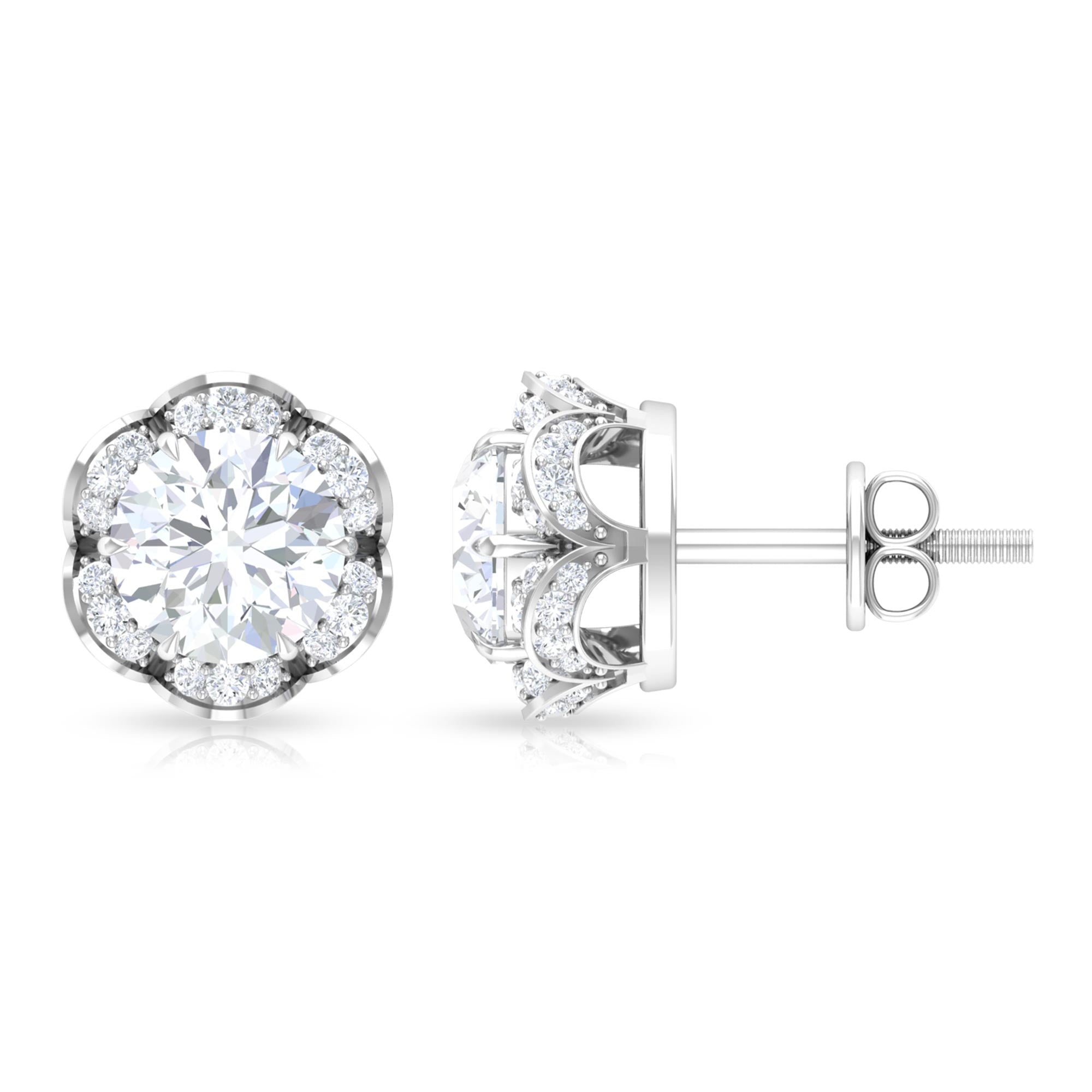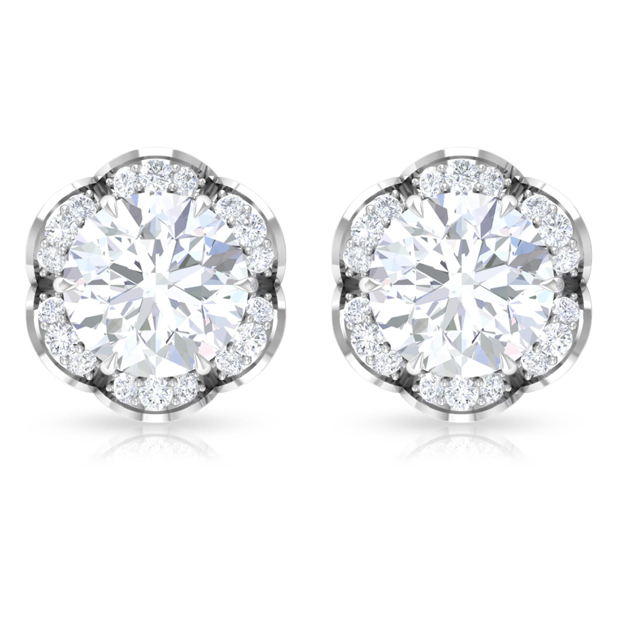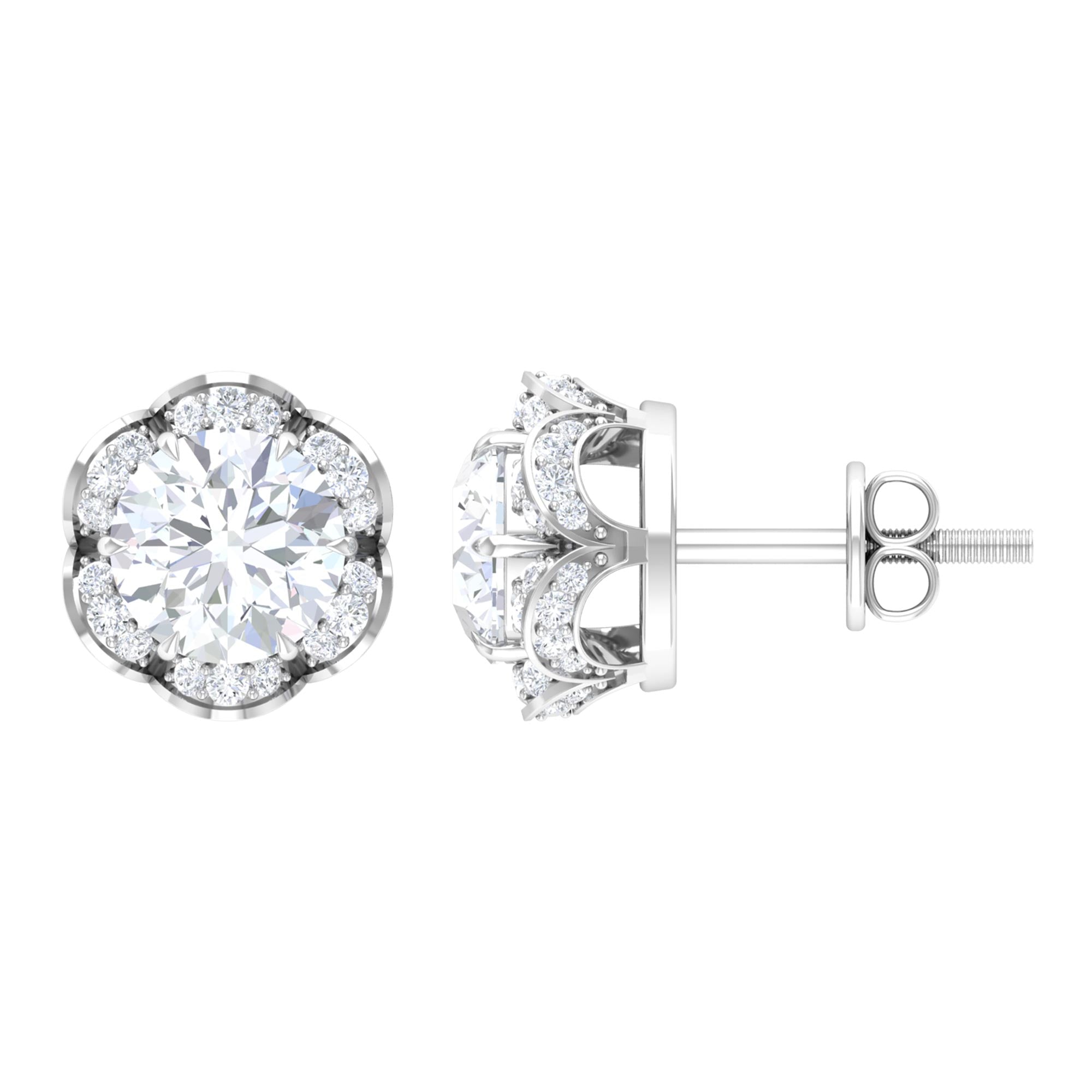 2.25 CT Round Shape Moissanite Floral Stud Earrings