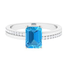 Make a Fashionable Statement when you flaunt this Solitaire Ring studded with an Emerald Cut Swiss Blue Topaz Solitaire accentuated by Round Diamond Accents, in a unique Two Tone Pattern which adds to the look of this ring.