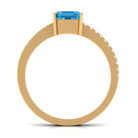 2.25 CT Two Tone Swiss Blue Topaz Solitaire with Diamond Side Stone Ring