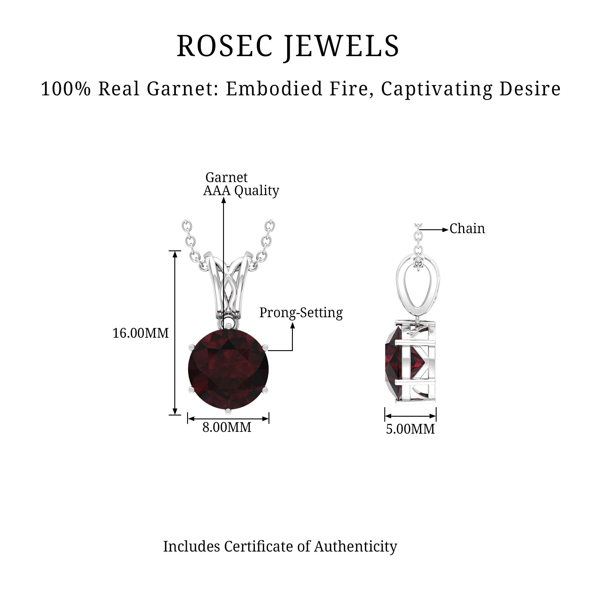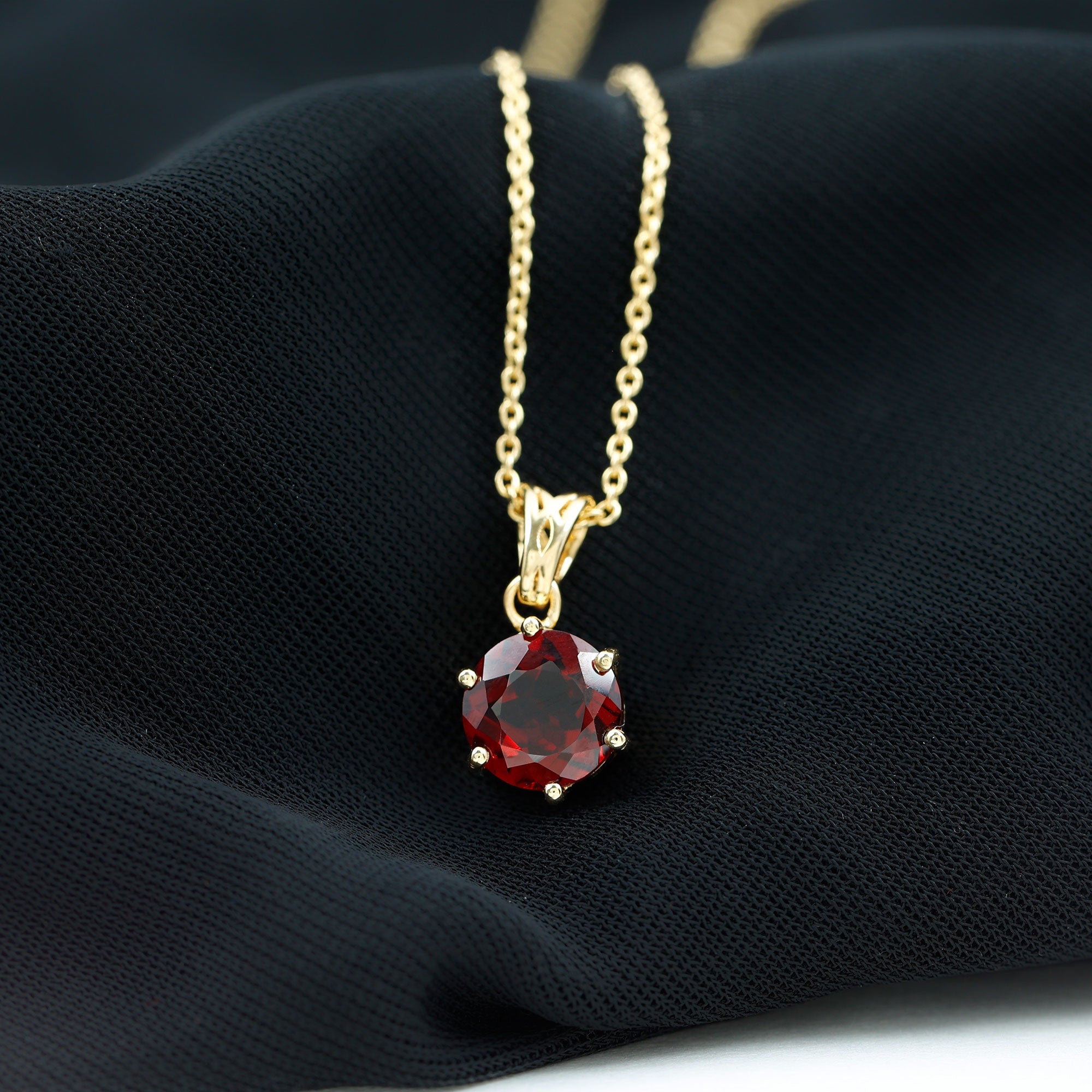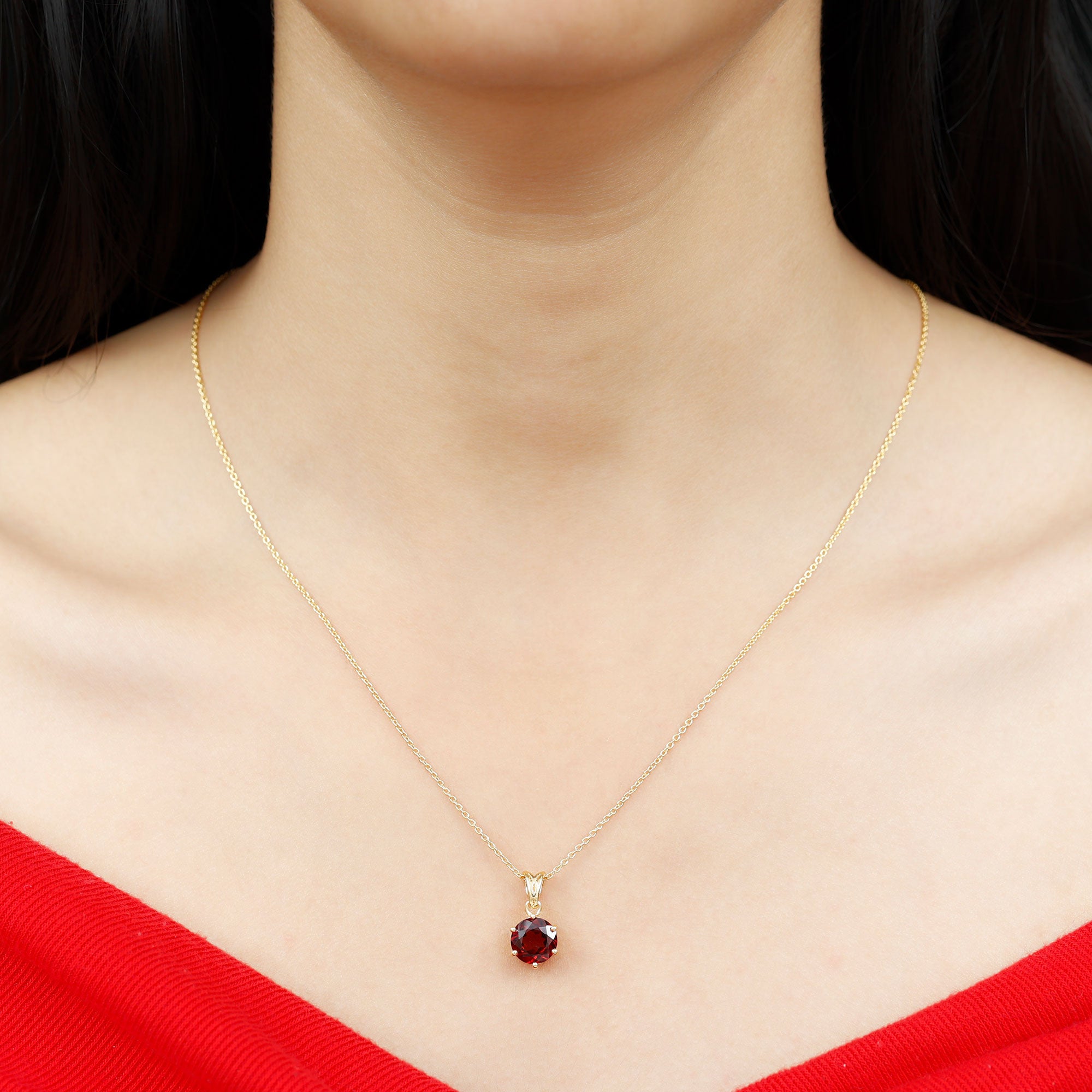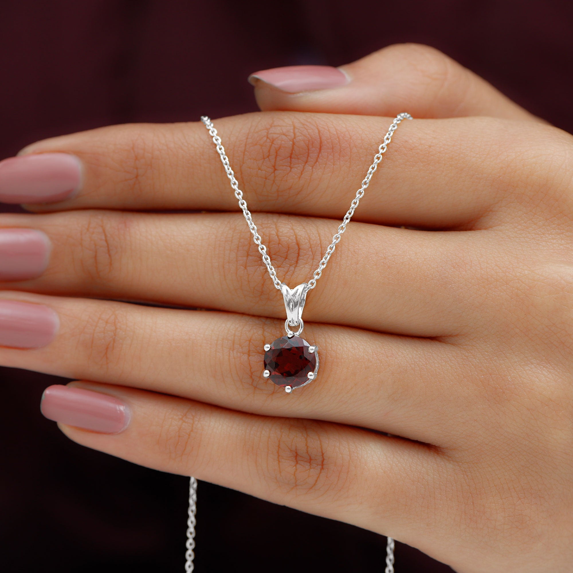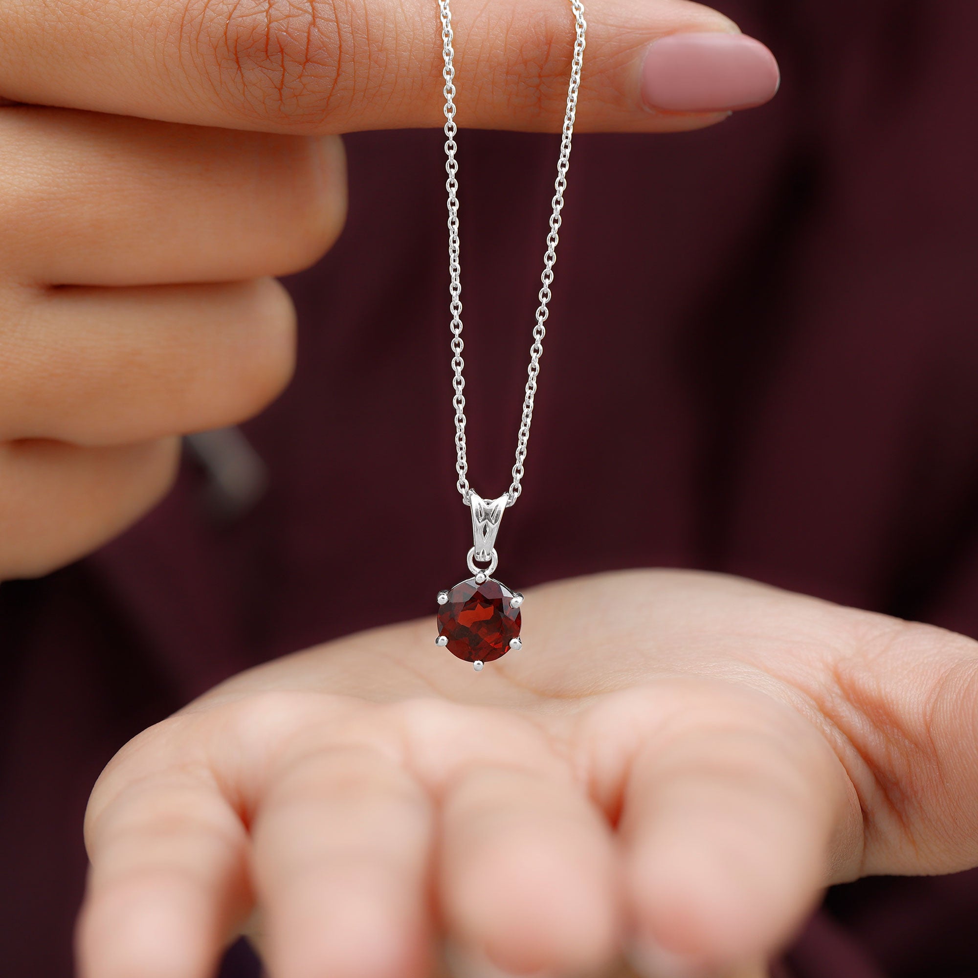 Chic and eye-catching, this Garnet Pendant Necklace features a stunning and elegant design that showcases a solitaire stone. The meaning behind this Garnet Locket revolves around love, passion, and protection. It is closely associated with feelings of romantic love, friendship, and loyalty. This Round Pendant Necklace displays authentic garnet, believed to ignite desire, amplify emotions, and nurture warmth and understanding in relationships. This January Birthstone Necklace is crafted from hallmarked metal and includes a 8 MM round cut garnet set in prong setting with a decorative bail. Suspended from a sturdy chain, this Garnet Solitaire Necklace is bound to mesmerize onlookers. Exuding sophistication and timeless elegance, this Real Garnet Necklace creates a striking contrast with the rich hue of AAA Quality Garnet and shiny polished metal. It provides a luxurious look, adding a subtle yet meaningful enhancement to your everyday attire. This piece also makes a lovely January birthstone gift or a way to commemorate a shared milestone. It channels your inner royalty and shines effortlessly.