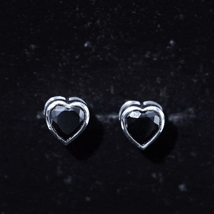 The Stunning Solitaire Stud Earrings are embellished with the 7 MM Heart Shape Black Onyx. Gemstone is studded as Single Stone and prime attraction in a Bezel Setting. Solid Gold encasing of Bezel Setting around Heart Shape Black Onyx make it perfect Jewelry for every occasion.