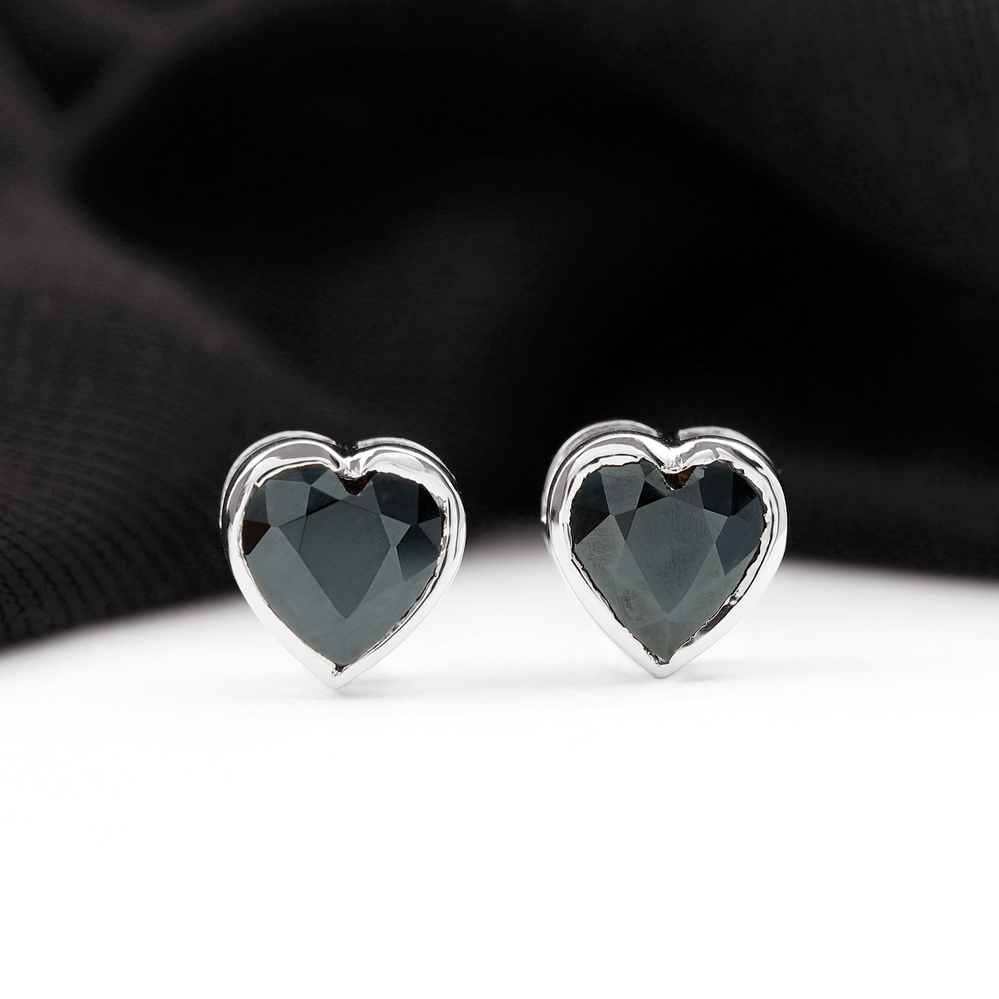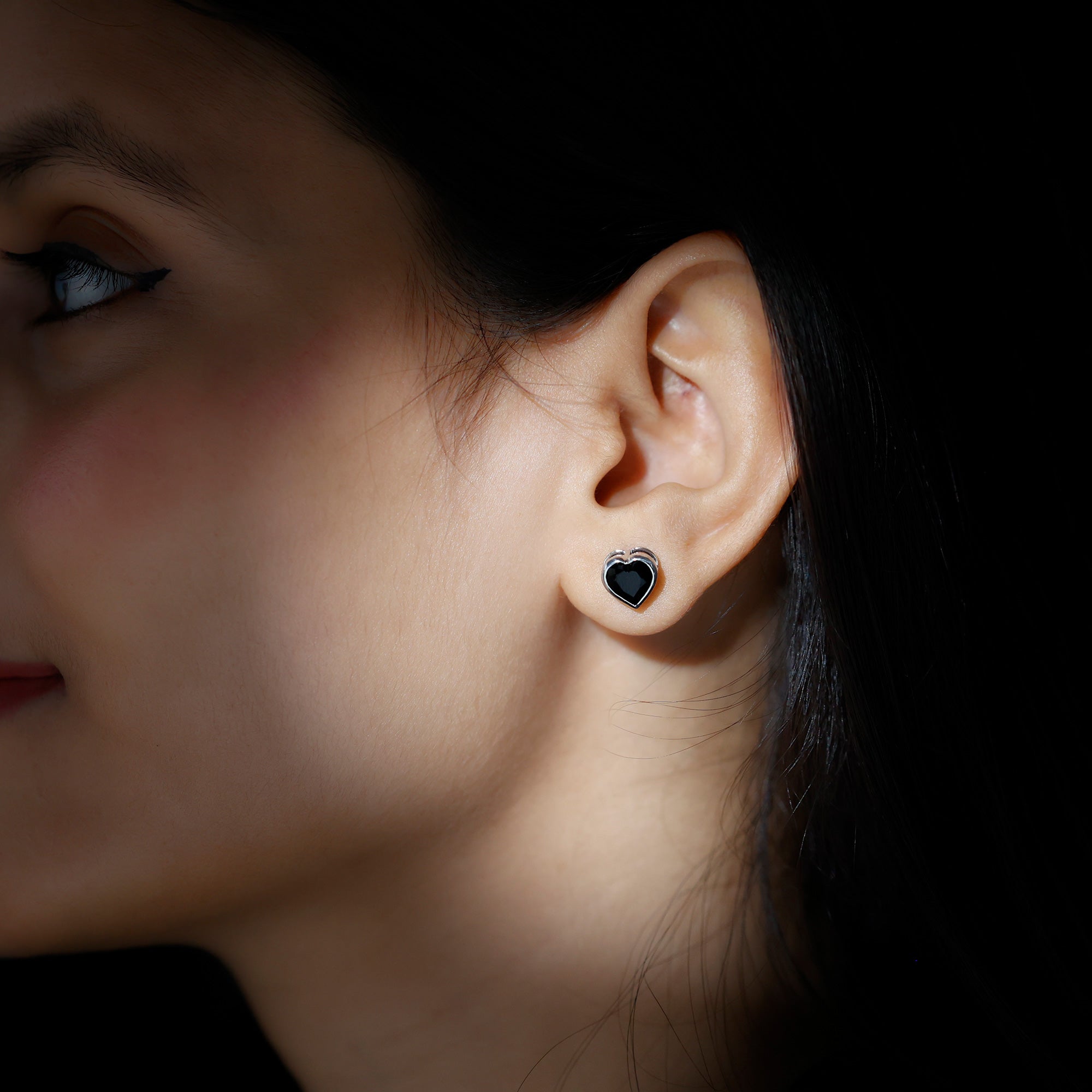 2.5 CT Bezel Set Heart Cut Black Onyx Solitaire Stud Earring