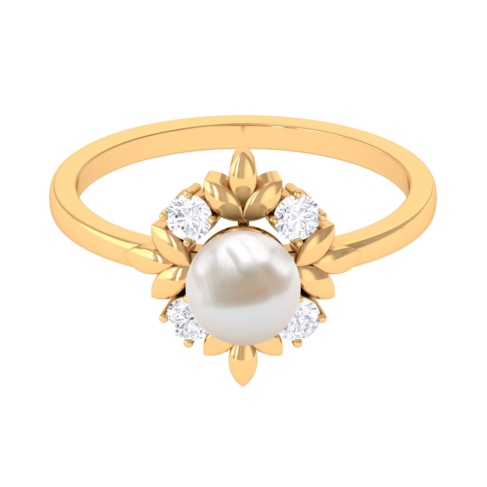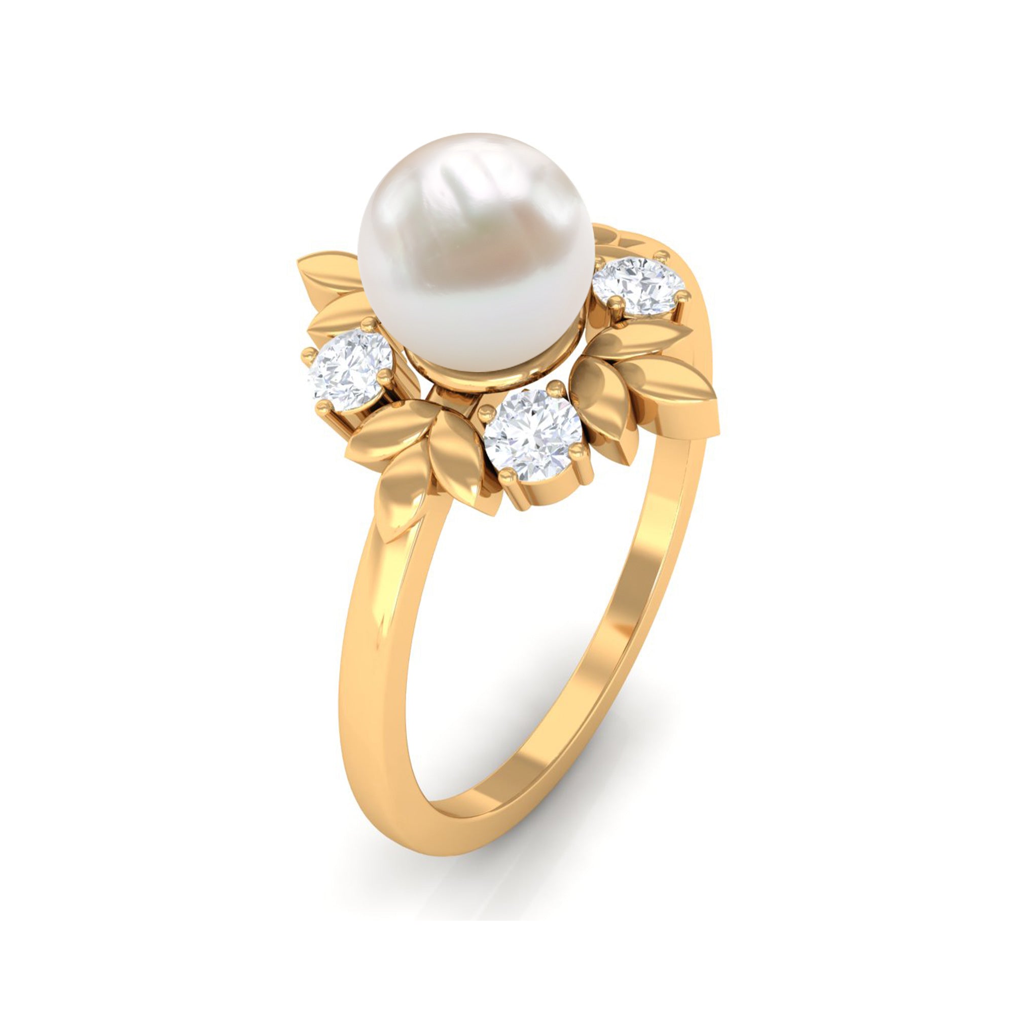 Light up her universe with this dazzling Freshwater Pearl Engagement Ring that sparkles like crazy. This absolutely stunning Freshwater Pearl Cocktail Engagement Ring will make her fall in love all over again. The Bliss features a gorgeous Round Shape Freshwater Pearl in an absolutely gorgeous Diamond accent with gold leaf detail in a minimalistic way.