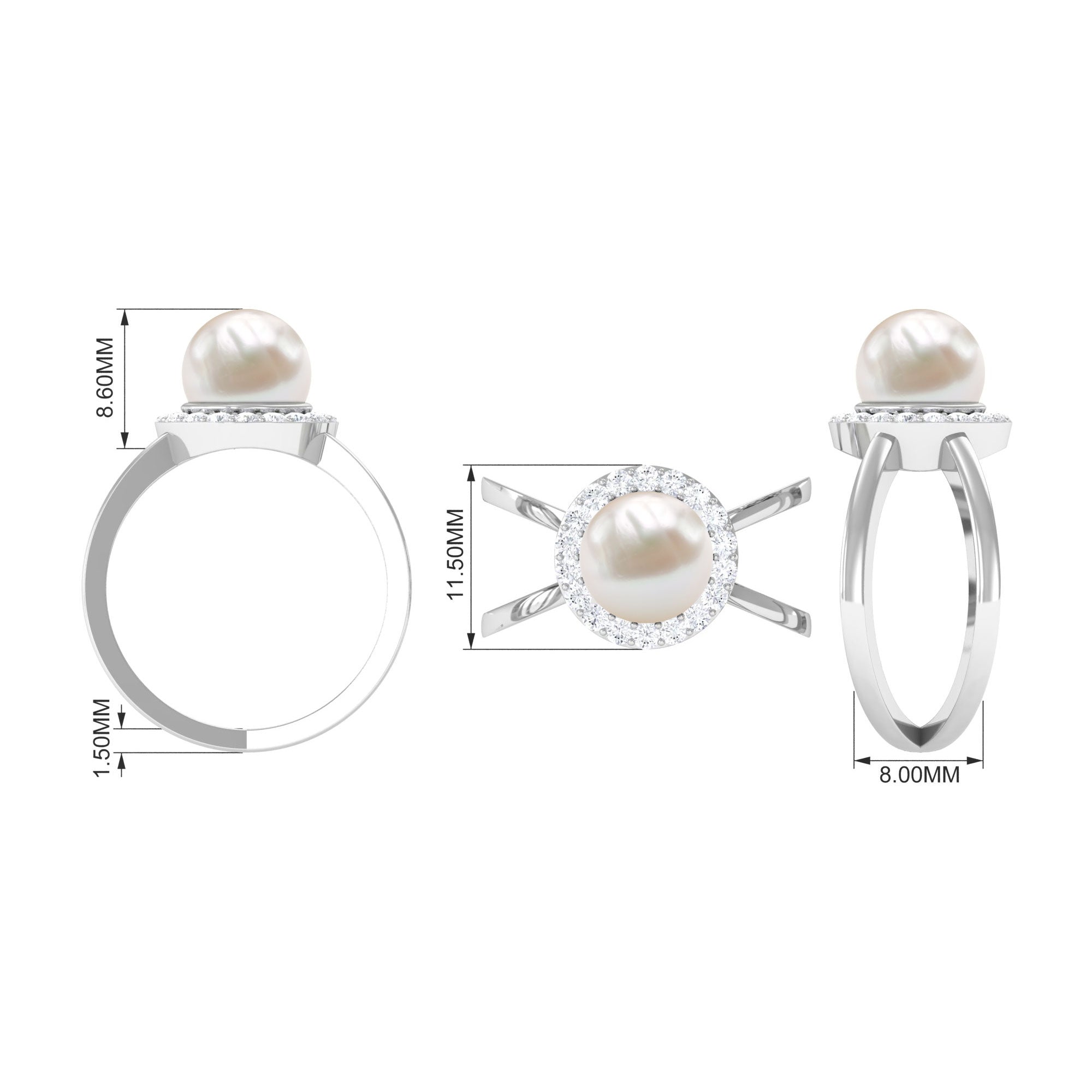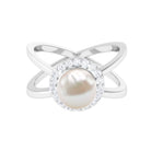 2.5 CT Freshwater Pearl Criss Cross Engagement Ring with Diamond Halo