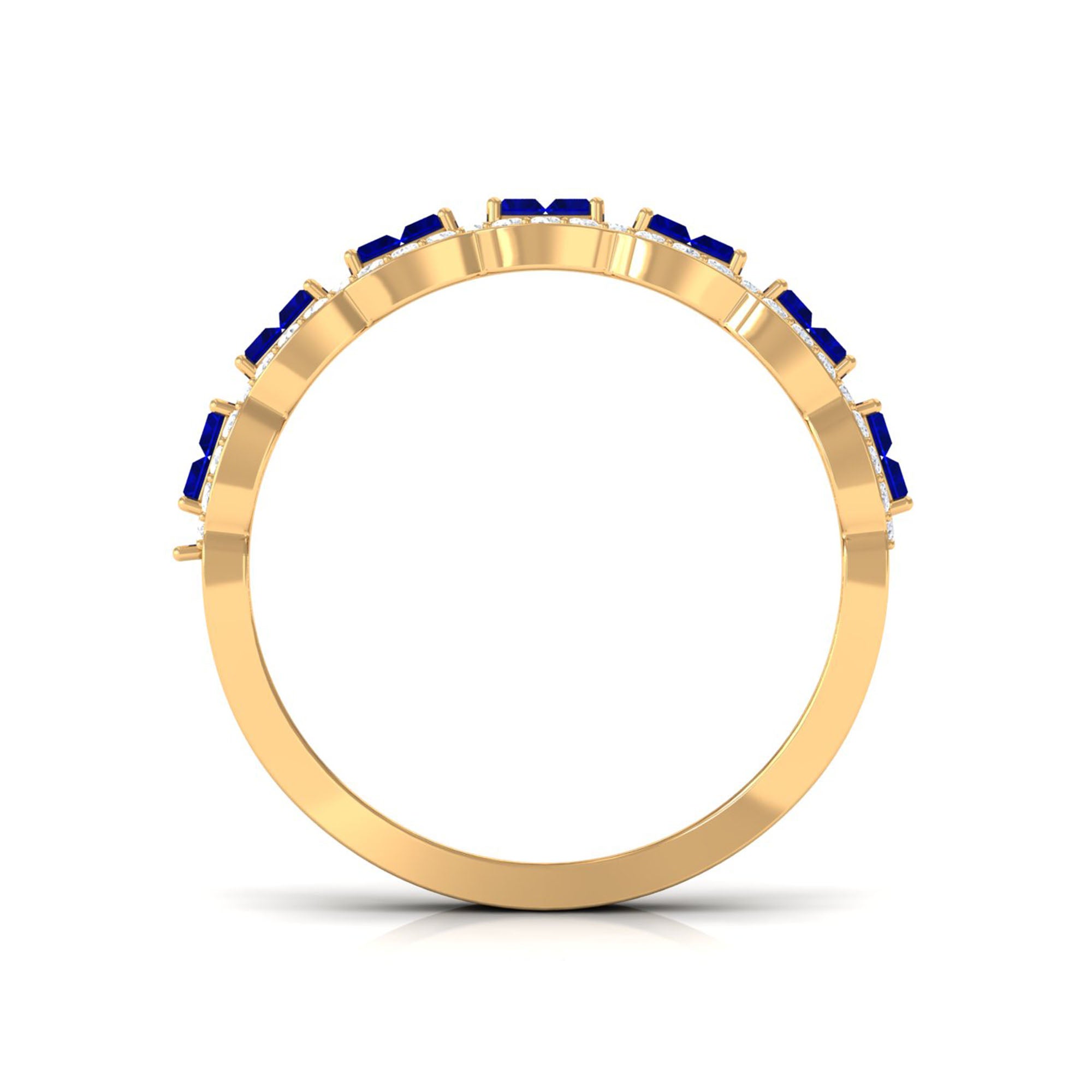 Lab Created Blue Sapphire Designer Half Eternity Ring with Moissanite