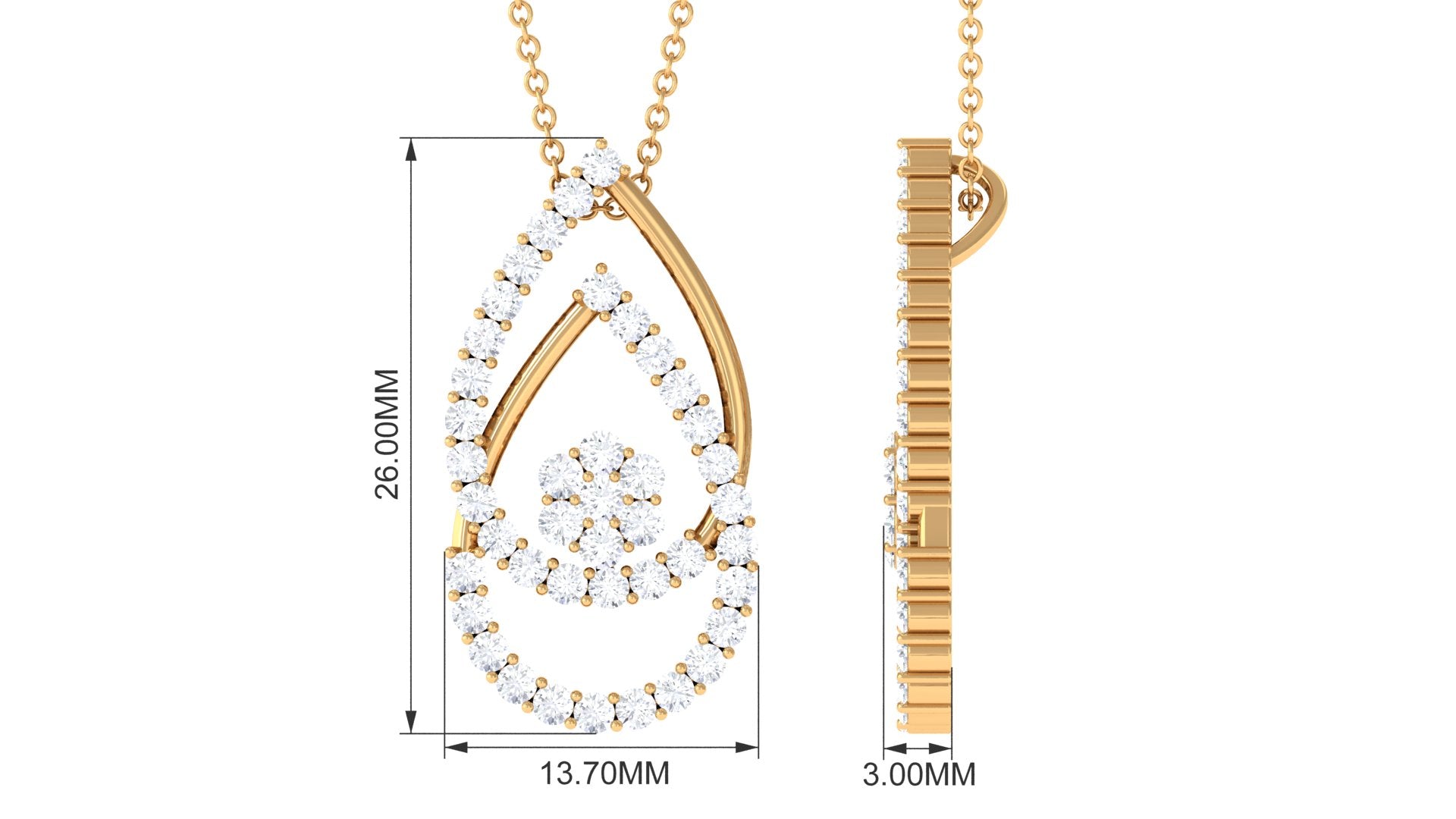 Achieve a stylish and sophisticated look with the Moissanite Teardrop Pendant Necklace. This exquisite piece features Twin Open Pear Shapes embellished with Moissanite accents and a floral design, all crafted from Solid Gold. With its alluring appearance, this Pendant Necklace is sure to capture attention.