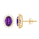 Classic Oval Amethyst Stud Earrings with Moissanite Halo