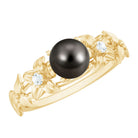 2.50 CT Black Tahitian Pearl Flower Engagement Ring with Diamond