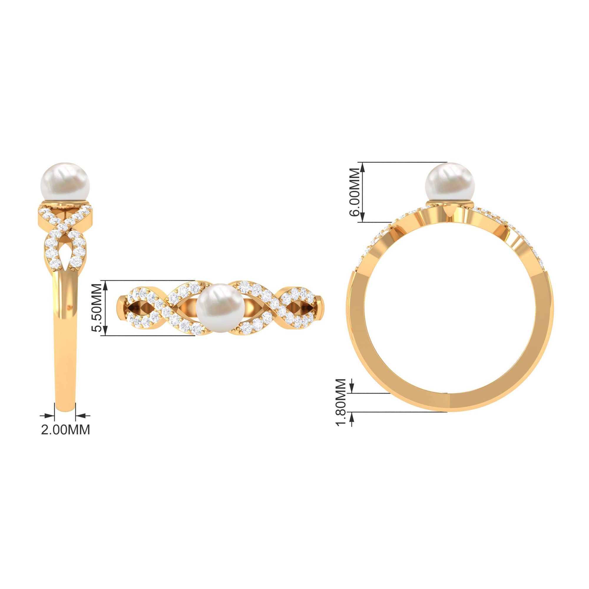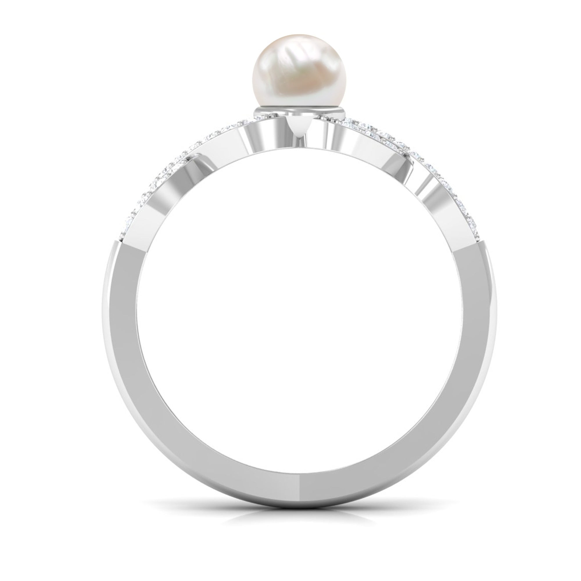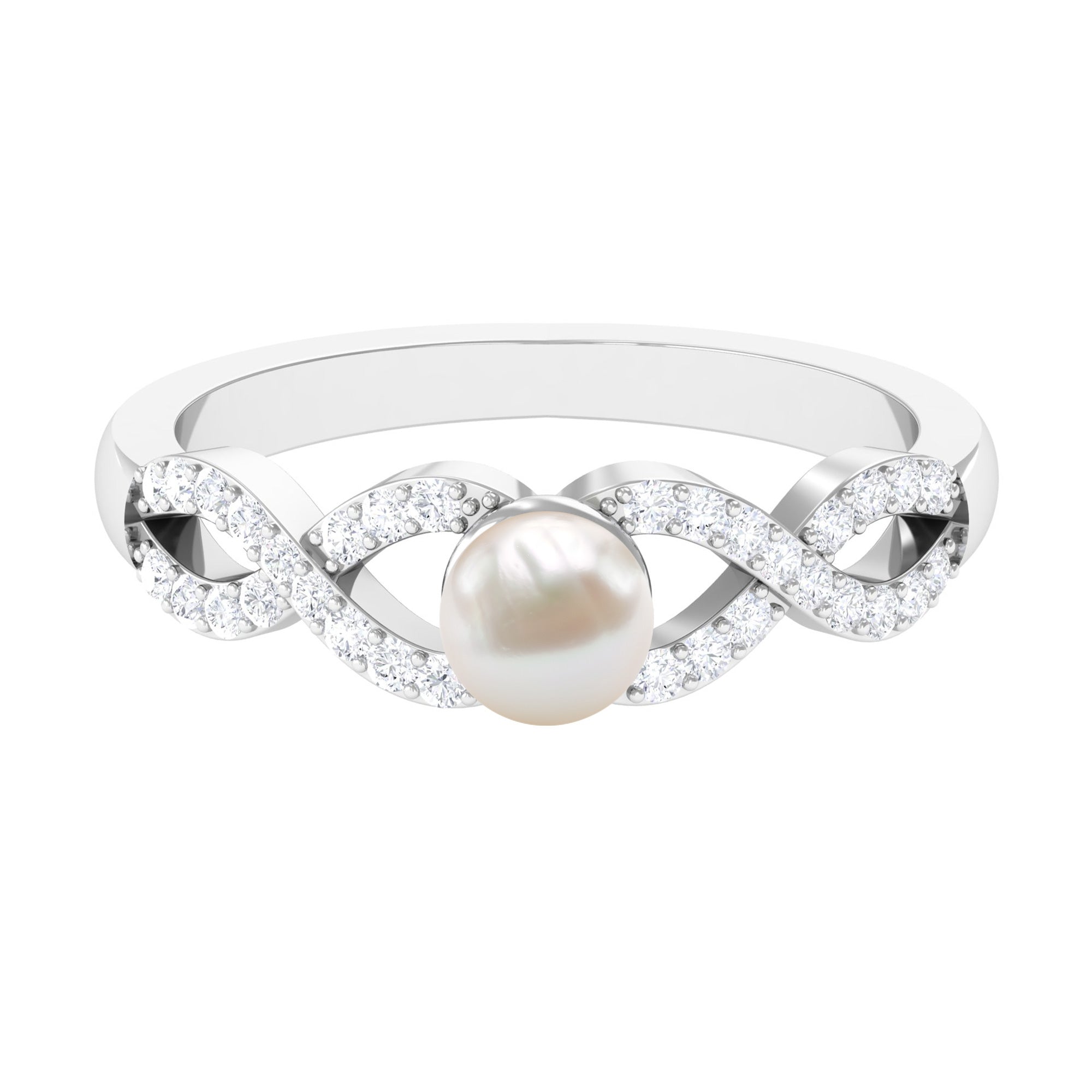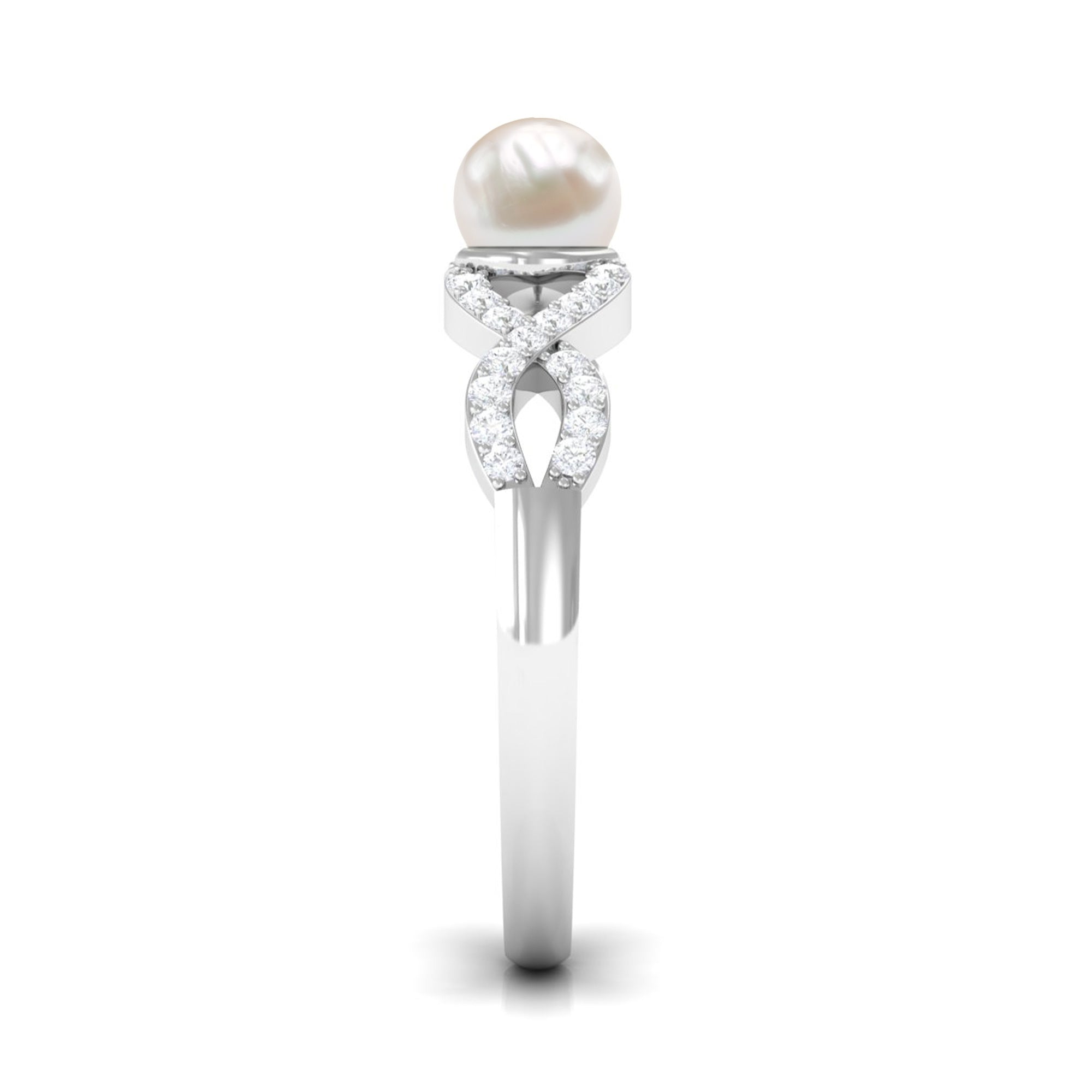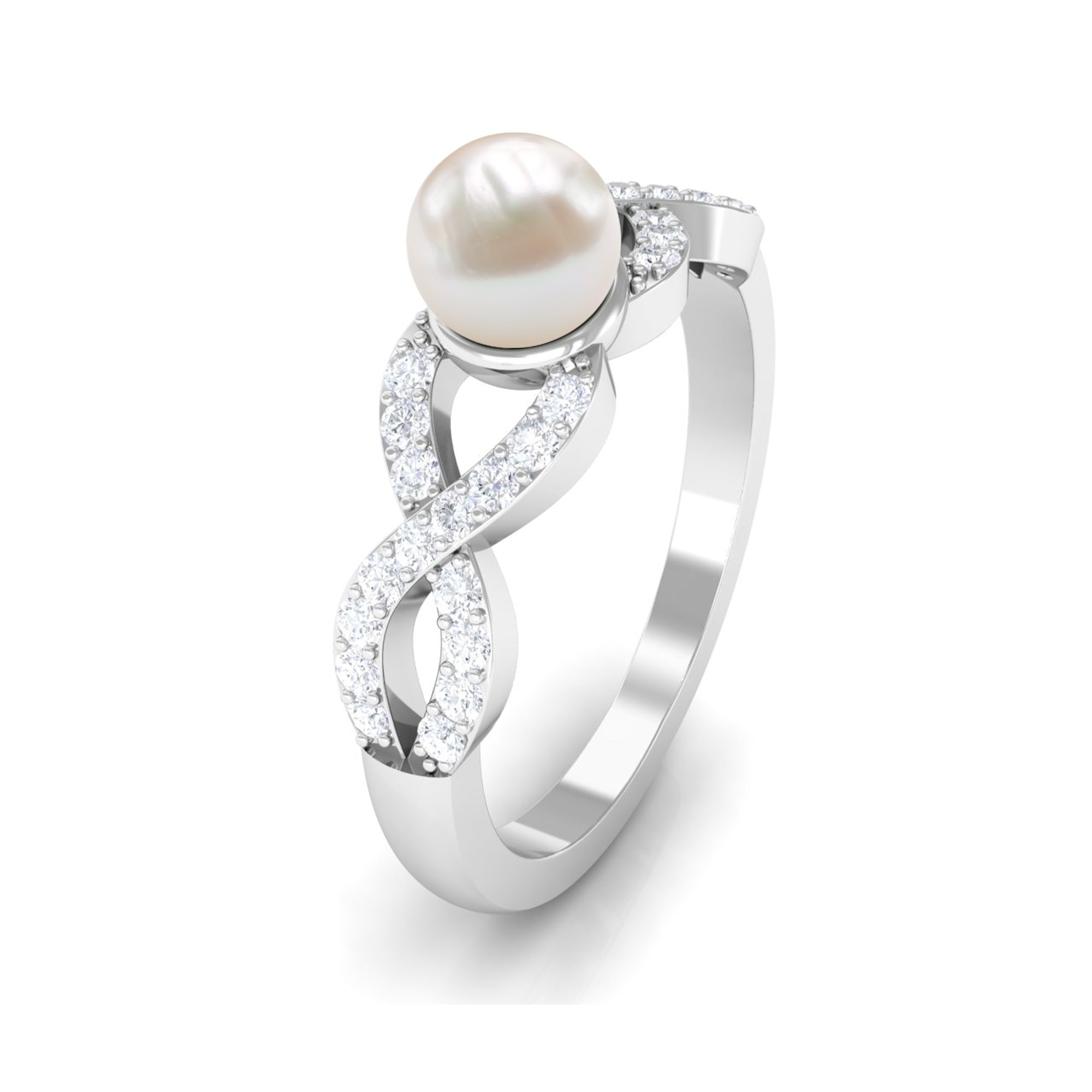 Sparkle effortlessly at every gathering with this Freshwater Pearl and Diamond Ring. It is a Gold Crossover Ring adorned with Round Shape White Freshwater Pearl as main Stone with Diamond set as side stones on the crossover shank. This Freshwater Pearl Engagement Ring with Diamond Accent is crafted in Gold.