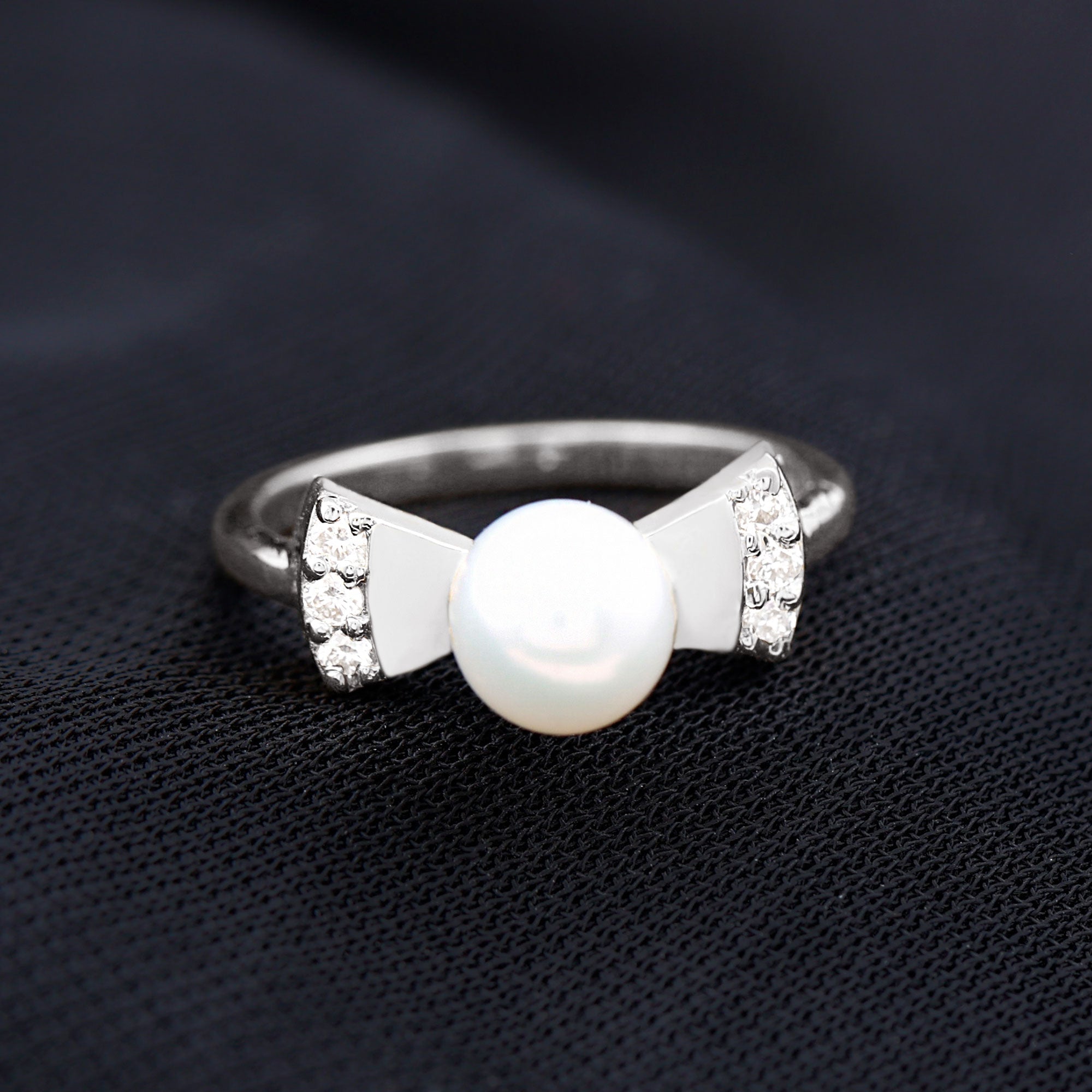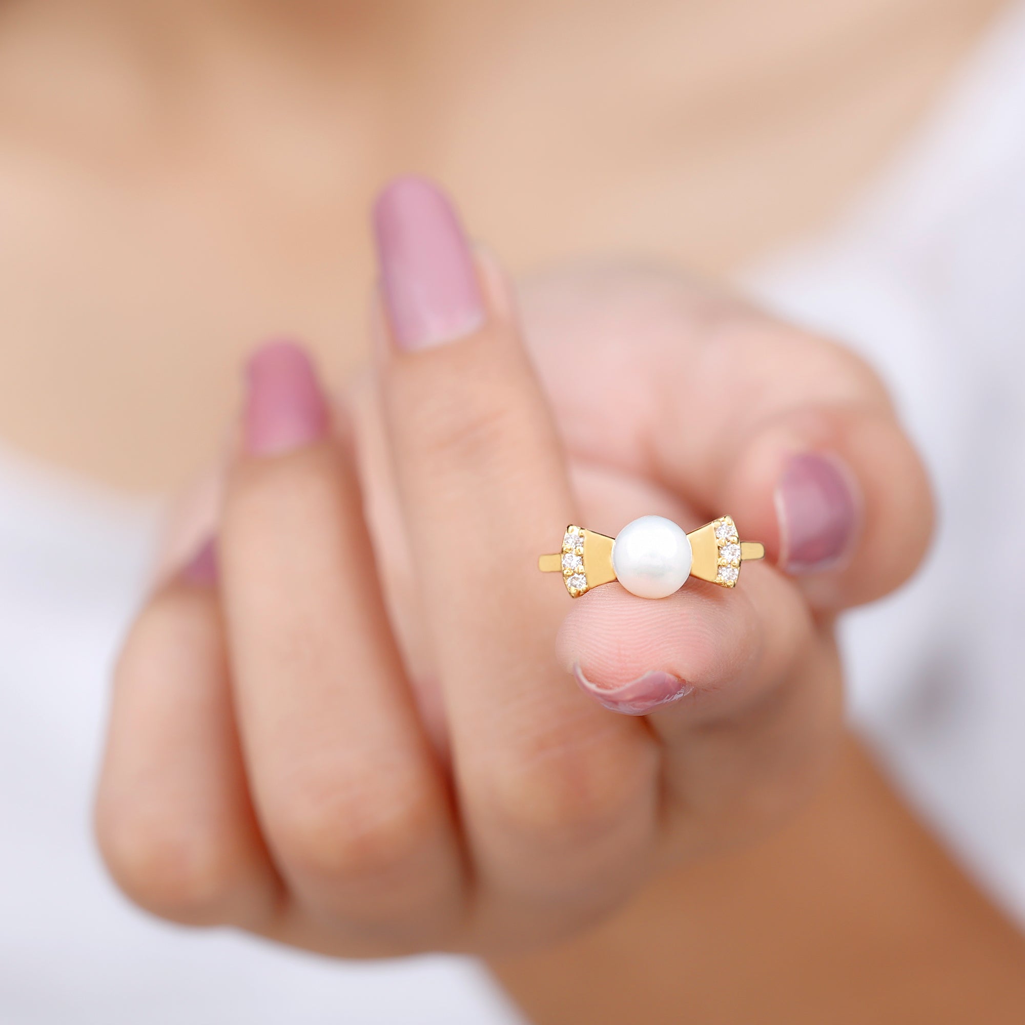 2.50 CT Freshwater Pearl Solitaire Bow Ring with Diamond