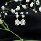 Imagine walking into the room and having every eye drawn to you - these Moissanite Drop Earrings are made for that moment. The 5X7MM pear shaped moissanite in the center sparkles with every movement, surrounded by a halo of smaller round stones that catch the light beautifully. Hanging from a 4 MM round cut moissanite stud, their gentle swing adds a playful sparkle that makes your look unforgettable. Comfort is just as important as style, and the secure screw back closure makes sure they stay in place while you dance, laugh, or celebrate all day long. Their classic teardrop design combined with modern sparkle makes these Wedding Earrings perfect for your bridal look, a special party, or even just when you want to feel extra glamorous. These Pear Moissanite Earrings are not just accessories, they are little confidence boosters. They highlight your outfit, complement your style, and make you feel radiant from the moment you put them on. Whether you are walking down the aisle or stepping into a special evening, these Teardrop Earrings help you shine effortlessly.