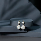 Imagine walking into the room and having every eye drawn to you - these Moissanite Drop Earrings are made for that moment. The 5X7MM pear shaped moissanite in the center sparkles with every movement, surrounded by a halo of smaller round stones that catch the light beautifully. Hanging from a 4 MM round cut moissanite stud, their gentle swing adds a playful sparkle that makes your look unforgettable. Comfort is just as important as style, and the secure screw back closure makes sure they stay in place while you dance, laugh, or celebrate all day long. Their classic teardrop design combined with modern sparkle makes these Wedding Earrings perfect for your bridal look, a special party, or even just when you want to feel extra glamorous. These Pear Moissanite Earrings are not just accessories, they are little confidence boosters. They highlight your outfit, complement your style, and make you feel radiant from the moment you put them on. Whether you are walking down the aisle or stepping into a special evening, these Teardrop Earrings help you shine effortlessly.