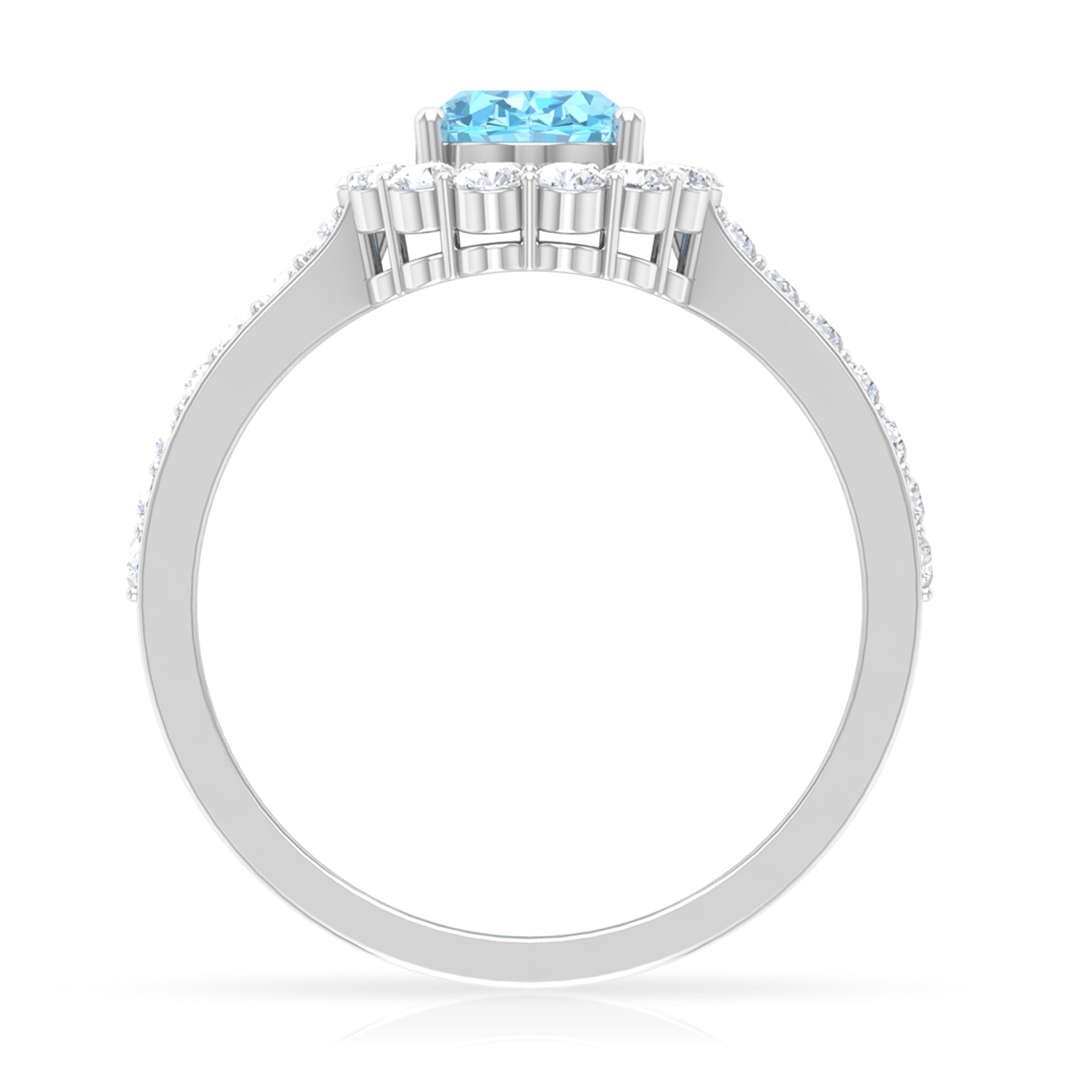 2.50 CT Oval Shape Solitaire Aquamarine and Moissanite Accent Engagement Ring
